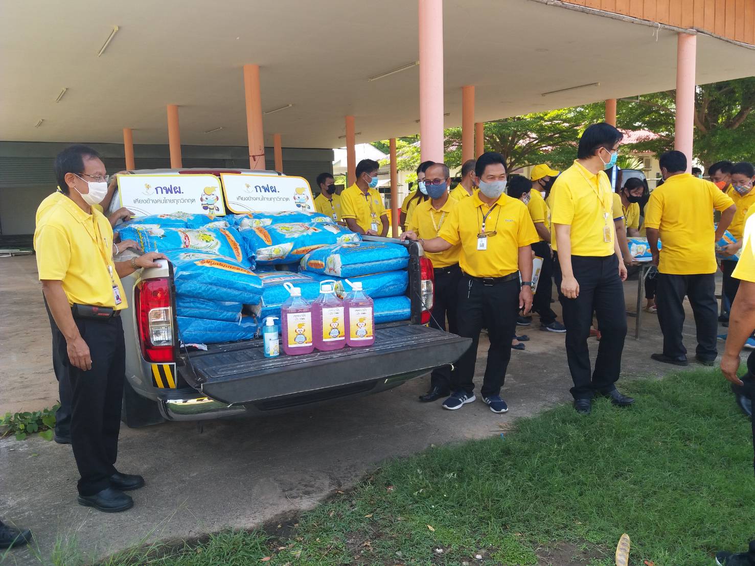วันที่ 6 พฤษภาคม 2563เวลา09.30.น.นายสุชีพ มีถม ผู้อำนวยการเขื่อนศรีนครินทร์ นายชวลิต กันคำ รองผู้อำนวยการเขื่อนศรีนครินทร์ 1 นายไพฑูรย์ สมบูรณ์ชัย รองผู้อำนวยการเขื่อนศรีนครินทร์ 2 นายสมชาย พรมสูงเนิน หัวหน้ากองโรงไฟฟ้าเขื่อนท่าทุ่งนา พร้อมด้วยผู้บริหารและผู้ปฏิบัติงาน เจ้าหน้าที่และพนักงานการไฟฟ้าฝ่ายผลิตเขื่อนศรันครินทร์ เขื่อนท่าทุ่งนา ร่วมนำข้าวสาร จำนวน 1ตัน (1.000)กิโลกรัม เจลอนามัยแอลกอฮอล์ ขนาด 6 ลิตร จำนวน 4 ขวด เจลแอลกอฮอล์น้ำใจกฟผ.แบบขวด จำนวน30 ขวด และน้ำดื่มจำนวน200 ขวด