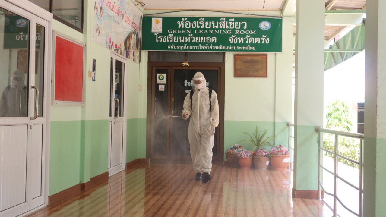 กองพันทหารราบที่ 4 กรมทหารราบที่ 15 ค่ายพระยารัษฎานุประดิษฐ์ อำเภอห้วยยอด จังหวัดตรัง ฉีดพ่นยาฆ่าเชื้อบริเวณโรงเรียน เพื่อป้องกันเชื้อไวรัสโคโรนา 2019 (โควิด-19) และเป็นการเตรียมความพร้อมในการเปิดการศึกษา อีกทั้งประชาสัมพันธ์ให้ประชาชนให้รับรู้และป้องกันตัวเอง ในการอยู่บ้าน เป็นการป้องกันการแพร่ระบาดของเชื้อ ในขณะนี้จังหวัดตรังปลอดกาติดเชื้อแล้ว 29 วัน