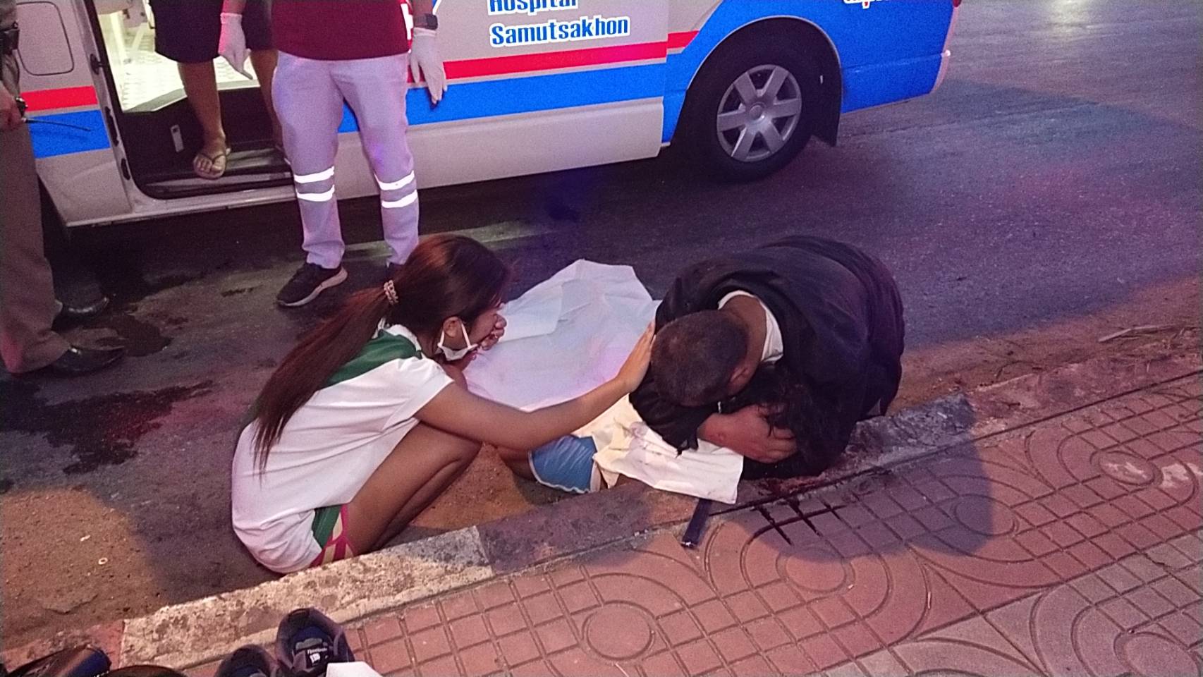 ขณะที่นายทิวา อายุ 45 ปี ประกอบอาชีพเป็น รปภ. ผู้เป็นพ่อของเด็กที่เสียชีวิตและบาดเจ็บ พยายามฝืนเล่าทั้งน้ำตาว่า วันนี้ตนเองได้หยุดงานจึงพาลูกทั้งสองคนมาเยี่ยมญาติแถววัดเกษตรพันธาราม ในอำเภอกระทุ่มแบน และก็กำลังจะพาลูกทั้ง 2 คน กลับที่พักอาศัยซึ่งอยู่แถวตำบลบางกระเจ้า อำเภอเมืองสมุทรสาคร ซึ่งตนก็ขับมาทางด้านซ้ายของถนน พอมาถึงที่เกิดเหตุรถบรรทุกมาชนด้านท้ายรถจักรยานยนต์ทำให้รถที่ตนขับอยู่ล้มลง ส่วนลูกสาวโชคร้ายล้มกลิ้งไปถูกล้อรถบรรทุกทับเสียชีวิต