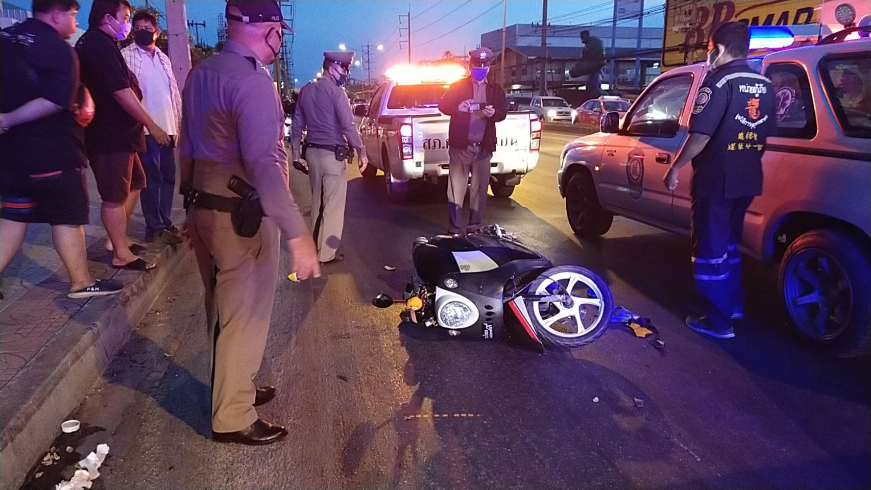 รถกรมชลฯ ชนท้ายรถจักรยานยนต์สามพ่อลูก ล้อรถทับร่างเด็ก 8 ขวบเสียชีวิตคาที่