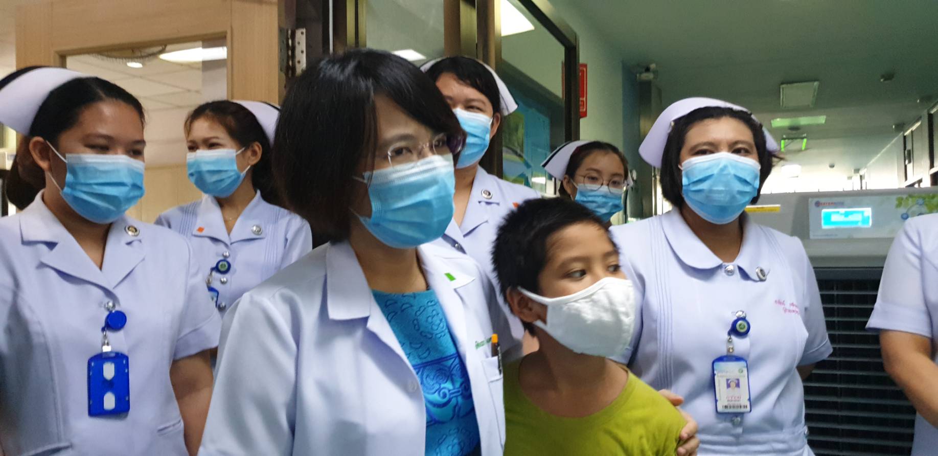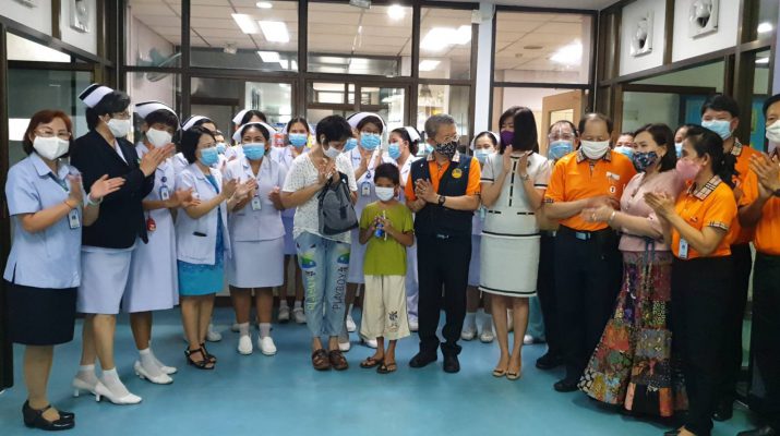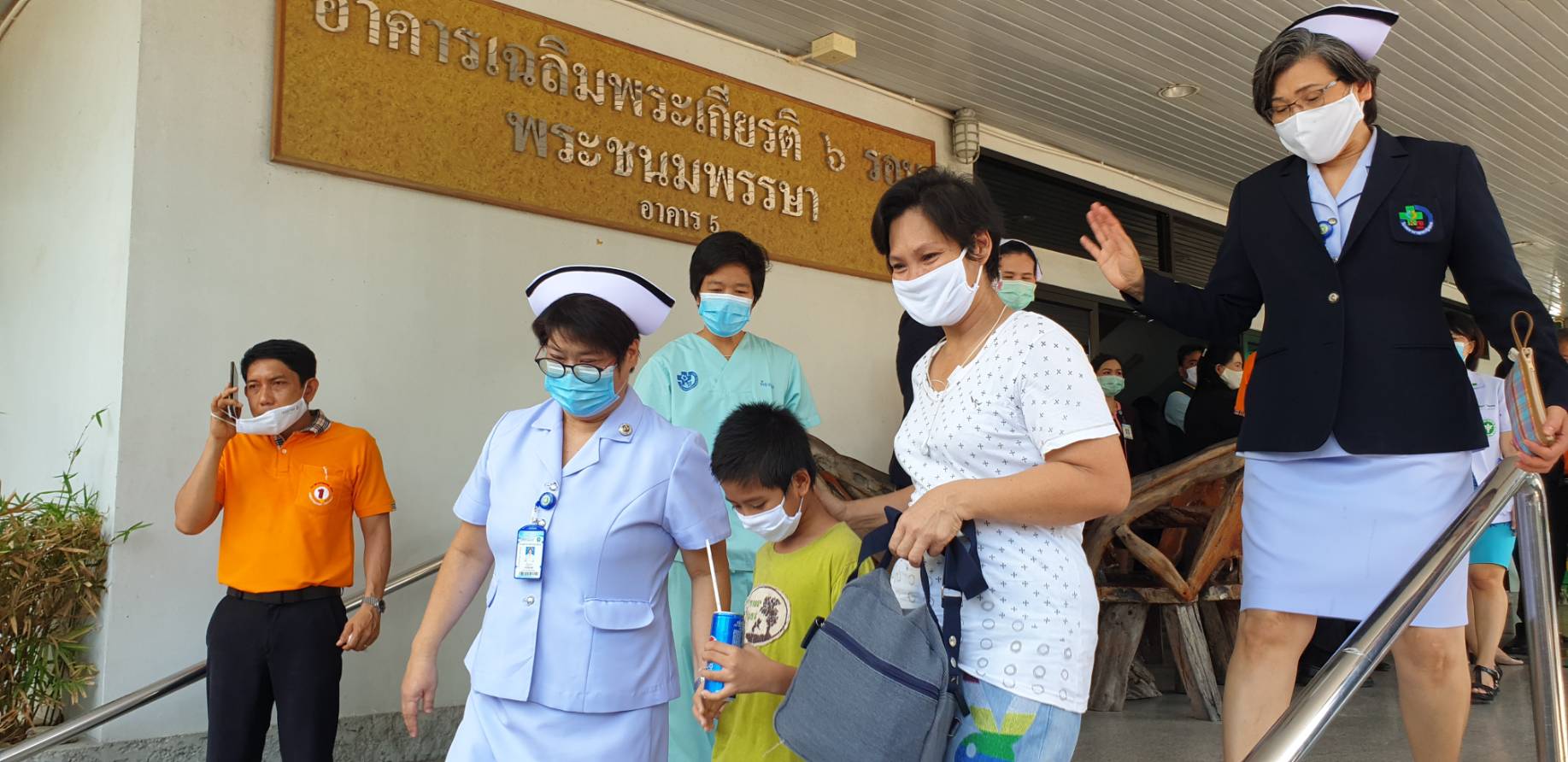 โดยก่อนที่สองแม่ลูกจะจากทีมแพทย์ พยาบาลและบุคลากรที่ดูแลกันมาอย่างยาวนานเกือบ 1 เดือนนั้น นอกจากนางบัว ผู้ติดเชื้อโควิด-19 จะกล่าวขอบคุณที่ทุกคนให้การดูแลรักษาอย่างดีจนหายเป็นปกติไม่มีเชื้อโควิดแล้ว ทางด้านของน้องบาสลูกชายวัย 10 ปี ก็ยังได้เดินกอดพี่หมอและพี่พยาบาลทุกคน ที่อยู่เป็นเพื่อนน้องบาส คอยดูแลน้องบาสแทนแม่ยามที่แม่ป่วยรักษาตัวอยู่ที่โรงพยาบาลกระทุ่มแบน แม้น้องบาสจะโชคดีไม่ได้ติดเชื้อโควิดฯ จากแม่ แต่ก็ต้องมานอนแยกห้องที่โรงพยาบาลด้วยฯ เพราะประการแรกน้องบาสต้องถูกกักตัว 14 วัน เฝ้าสังเกตอาการเนื่องจากอยู่ใกล้ชิดและสัมผัสกับผู้ติดเชื้อ และ ประการที่สองคือ น้องบาสมีเพียงแม่คนเดียวเท่านั้น จึงอยู่ด้วยกัน 2 คนมาตลอด ไม่มีเคยแยกจากกันและไม่มีญาติพี่น้องที่ไหน ดังนั้นเมื่อแม่เข้ารับการรักษาตัวตั้งแต่วันที่ 11 เมษายน ทางโรงพยาบาลจึงต้องรับน้องบาสมาเฝ้าดูอาการด้วย และแม้น้องบาสจะผ่านพ้น 14 วันปลอดภัยดีแล้ว แต่น้องบาสก็ยังคงต้องอยู่ที่โรงพยาบาลต่อไปจนกว่าแม่จะหายดีไม่พบเชื้ออีก น้องบาสจึงกลายเป็นที่รักของพี่หมอและพี่พยาบาลทุกคน จนกระทั่งวันที่รอคอยก็มาถึงคือวันนี้ วันที่ผลตรวจของแม่บัวออกมากลายเป็นลบ