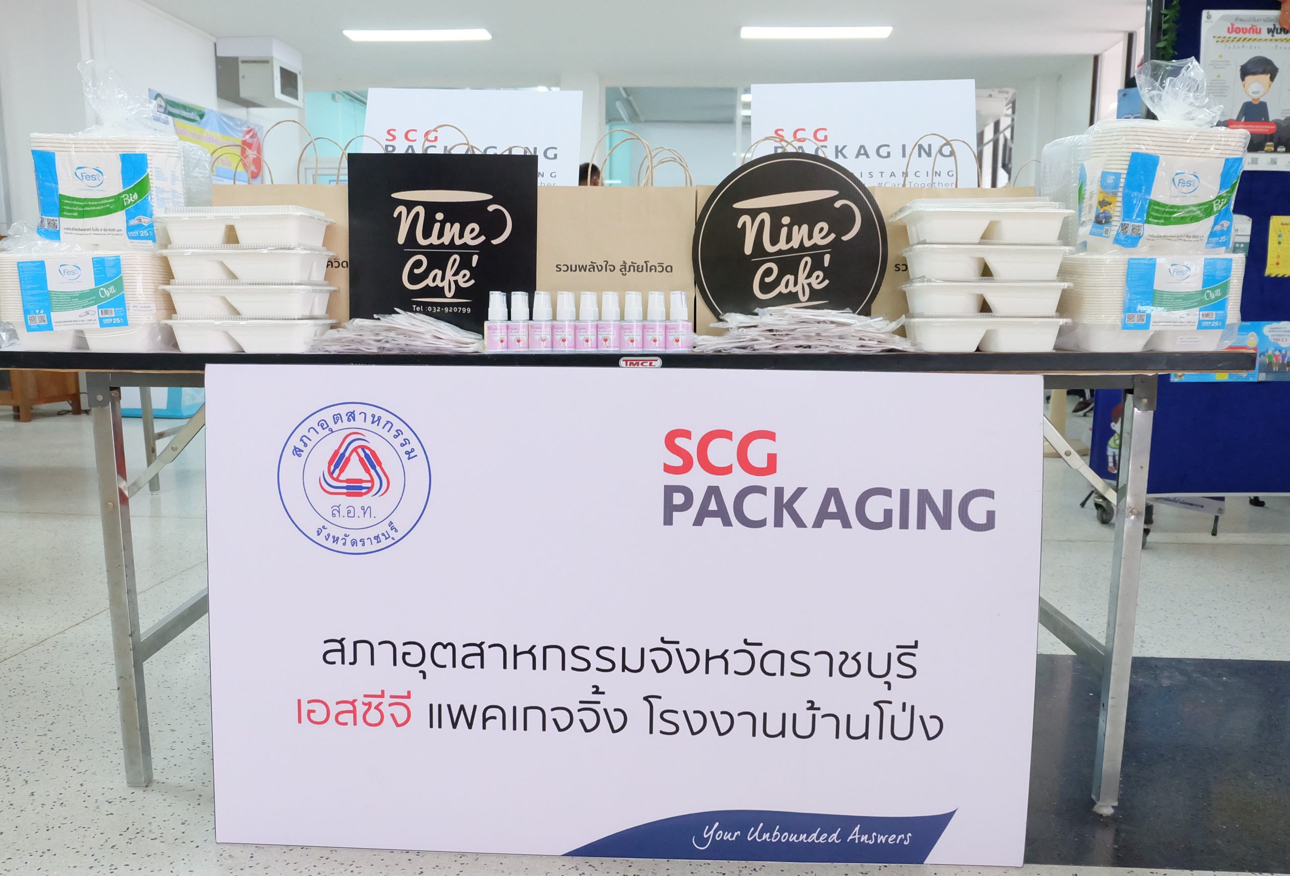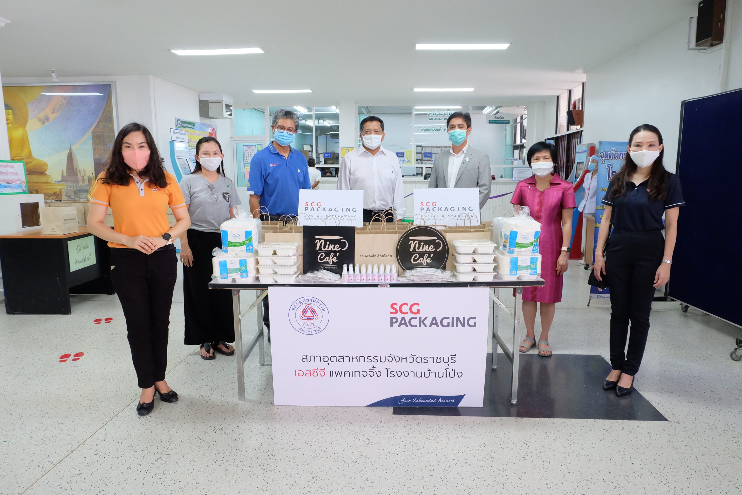 เมื่อวันที่ 7 พฤษภาคม 2563เอสซีจี แพคเกจจิ้ง นำโดย คุณเอกราช นิโรจน์ ผู้อำนวยการฝ่ายการตลาด บริษัทสยามคราฟท์อุตสาหกรรม จำกัด และคุณสหรัฐ พัฒนวิบูลย์ ผู้อำนวยการโรงงานบ้านโป่ง บริษัทสยามคราฟท์อุตสาหกรรม จำกัด ร่วมกับ คุณภาวนา ว่องอมรนิธิ ร้านไนน์ ค่าเฟ่ มอบอาหารกล่อง หน้ากากผ้า และแอลกอฮอล์เจล เพื่อร่วมสนับสนุนการทำงานของทีมแพทย์และบุคคลากรของโรงพยาบาลบ้านโป่ง จังหวัดราชบุรี ที่ปฏิบัติภารกิจในช่วงการแพร่ระบาดของโควิด-19 โดยมี นายแพทย์ธิติ แสวงธรรม ผู้อำนวยการโรงพยาบาลบ้านโป่ง และผู้บริหารโรงพยาบาลเป็นผู้แทนรับมอบ