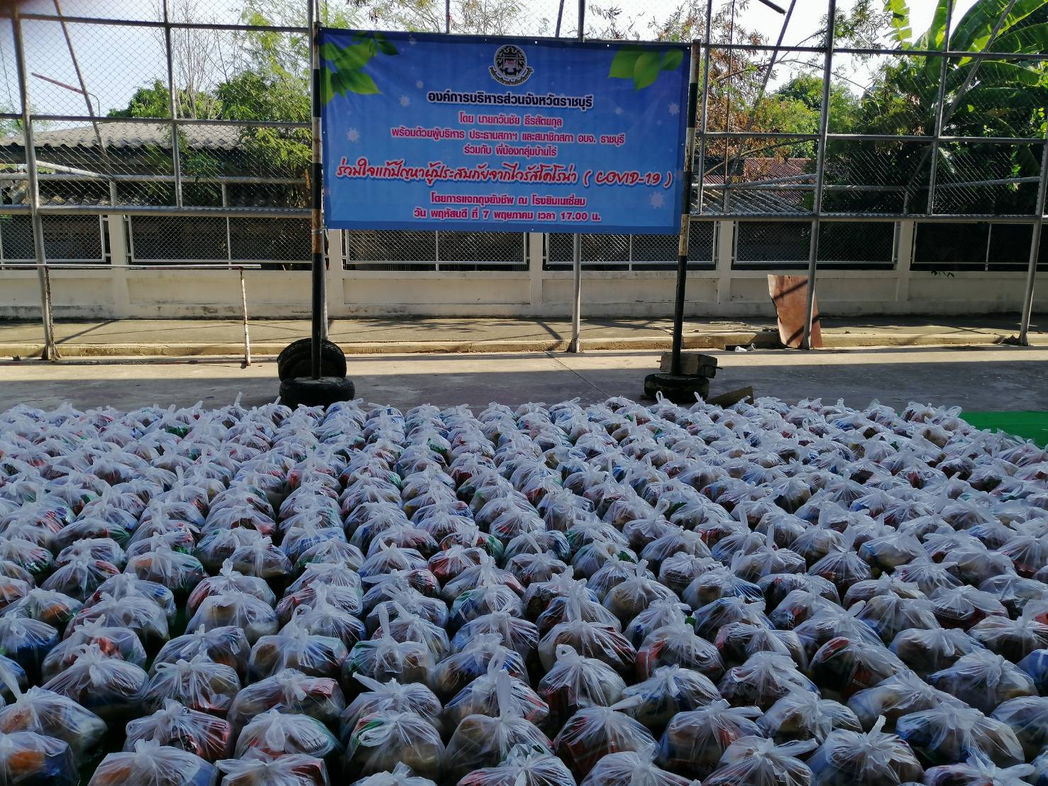 ราชบุรี อบจ.ราชบุรี ร่วมกับตลาดศรีเมือง แจกถุงยังชีพ 700 ชุด แก่ประชาชน ต.บ้านไร่ อ.เมืองราชบุรี