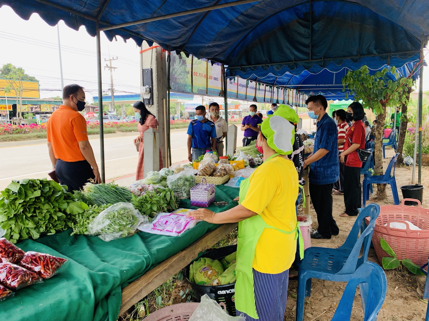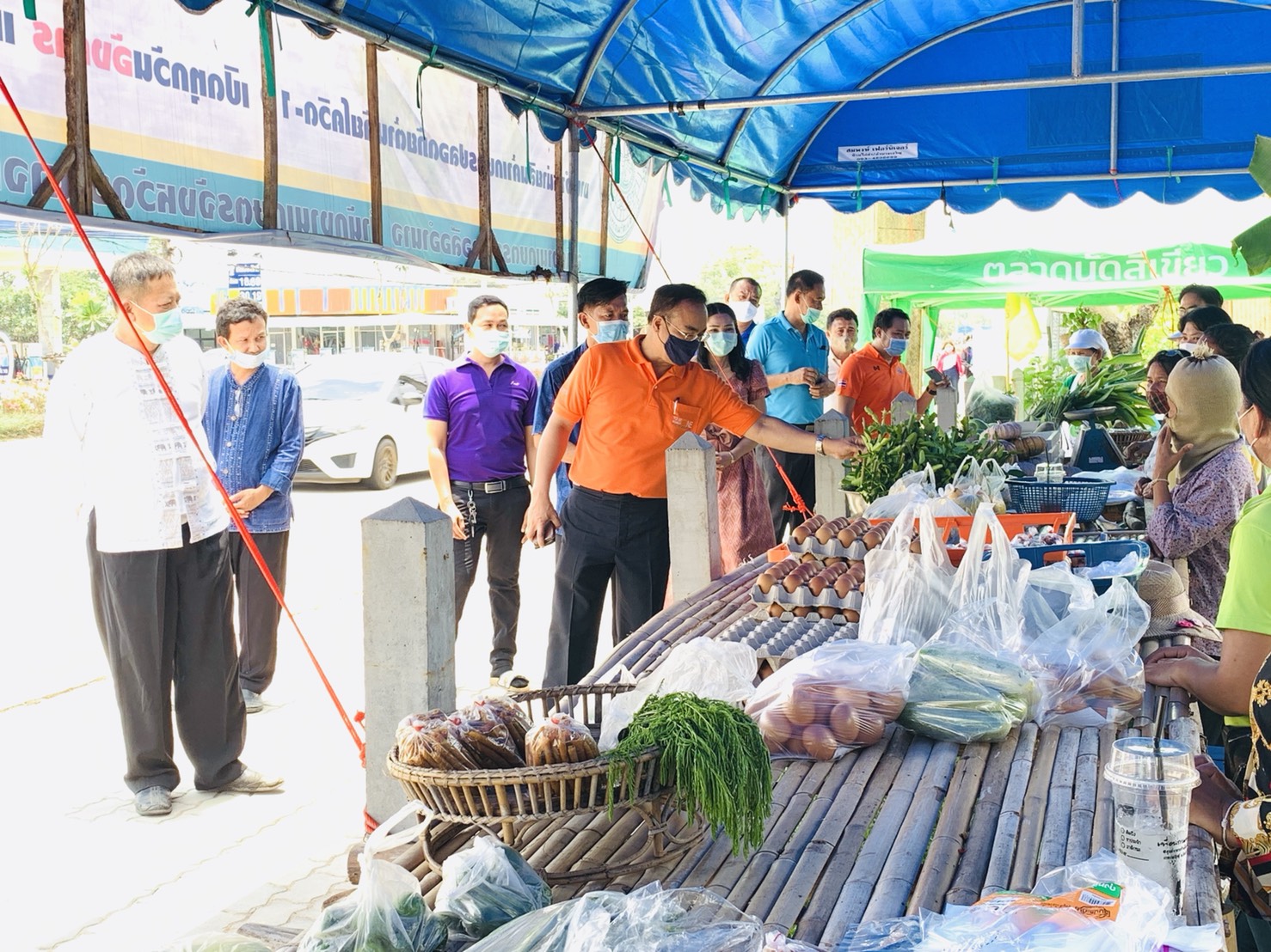 พ่อเมืองอำนาจเจริญเยี่ยมม การจำหน่ายสินค้าเกษตรปลอดภัย ที่ ด้านหน้าสำนักงานเกษตรอำเภอลืออำนาจ ต้านภัย COVID-19