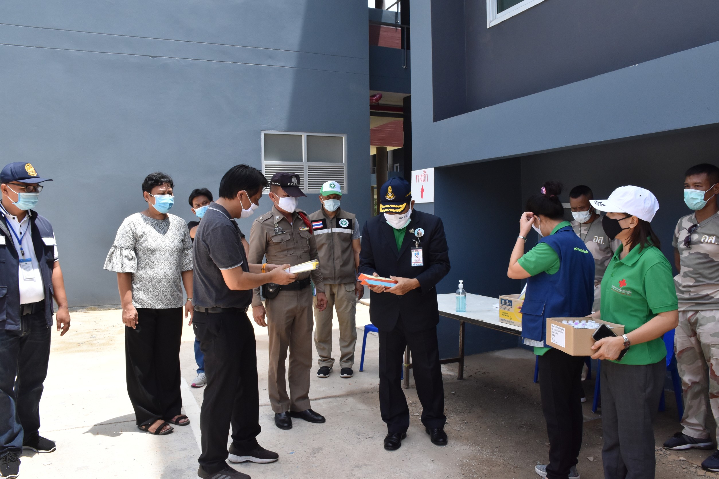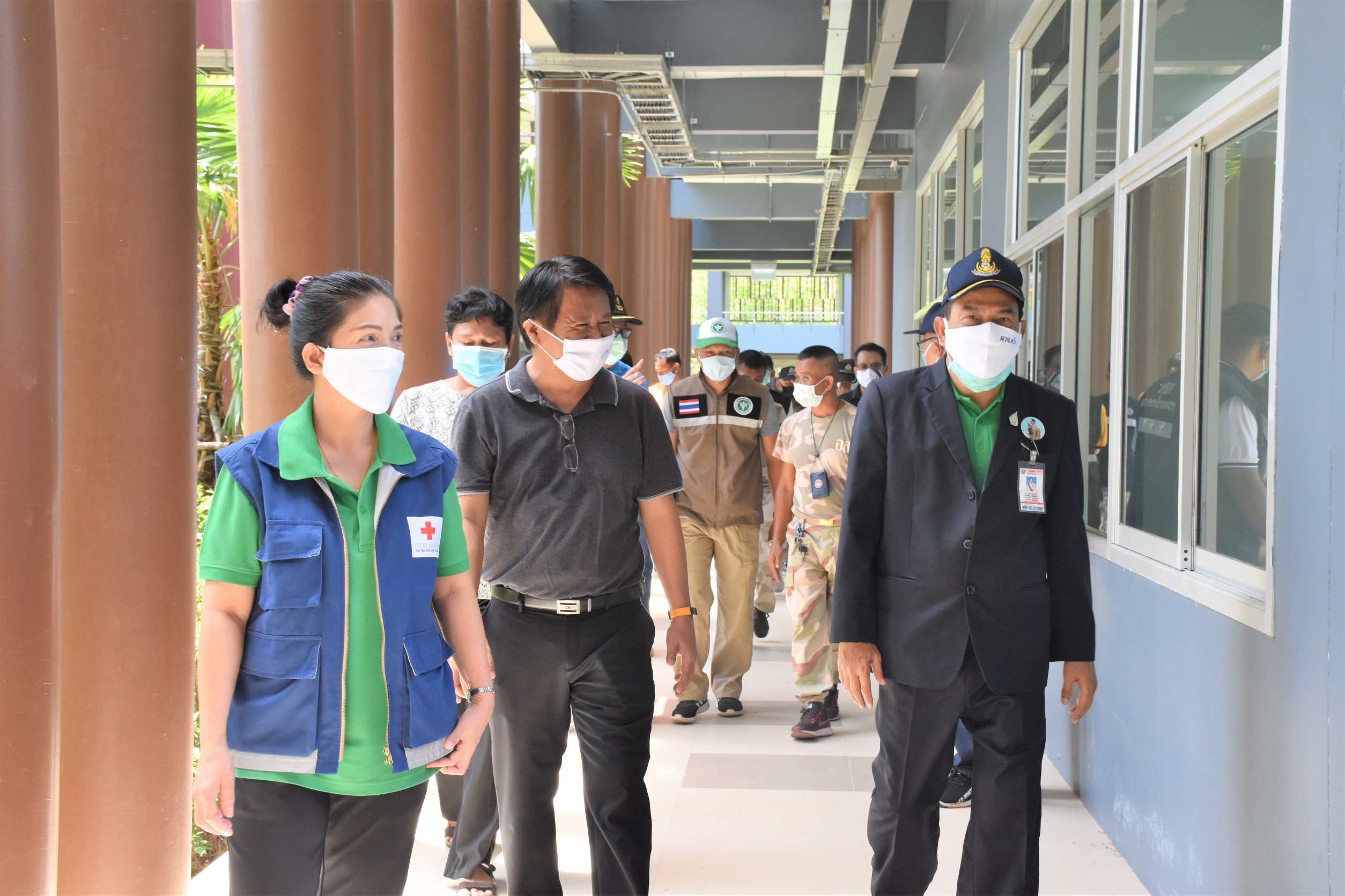 ผู้ว่าราชการจังหวัดตรัง เยี่ยมผู้ที่เดินทางกลับจากประเทศมาเลเซีย และให้กำลังใจเจ้าหน้าที่ ที่ สถานที่เก็บตัวเพื่อสังเกตอาการทางสุขภาพ (Local quarantine)
