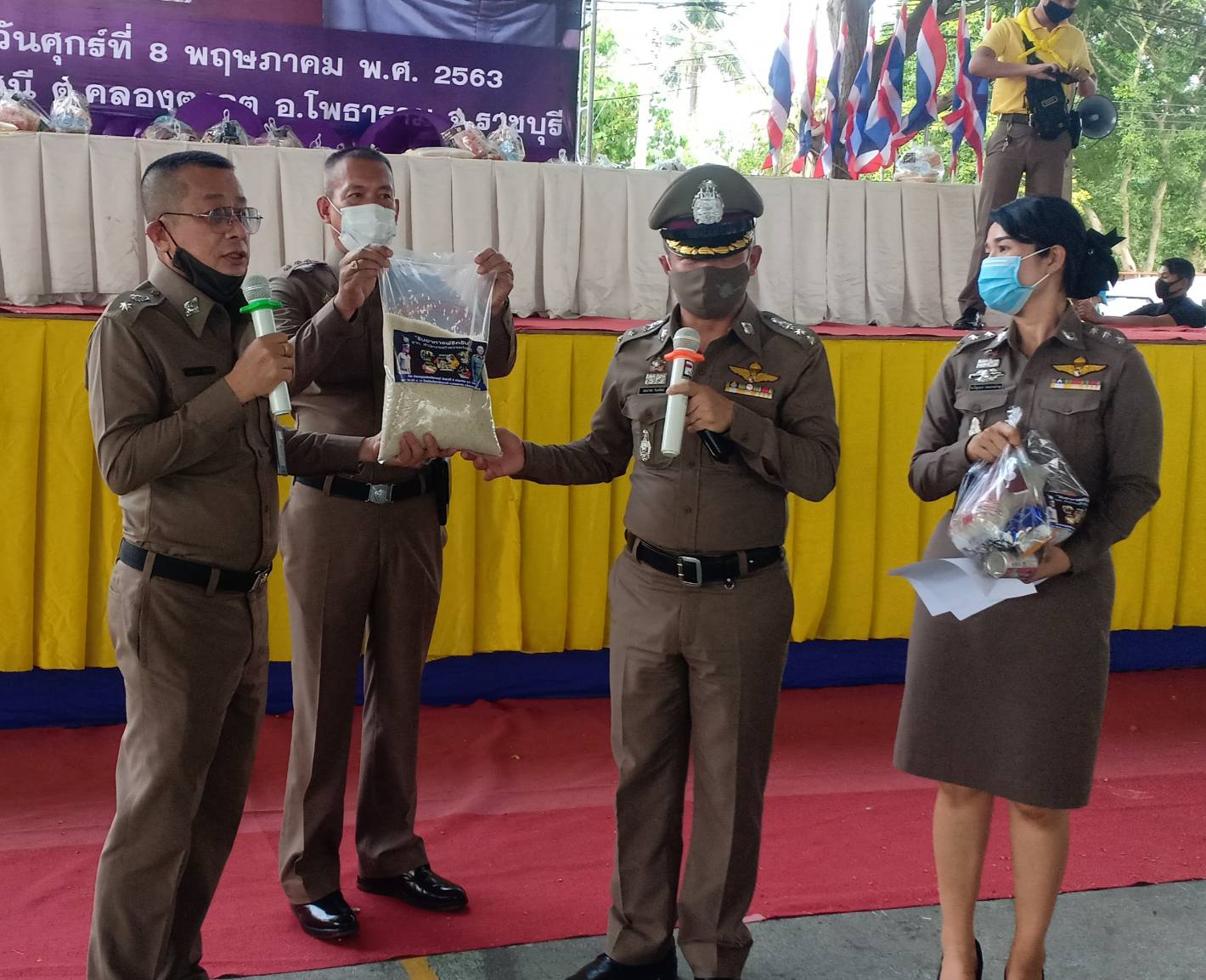 เมื่อวันที่8พฤษภาคม 2563 เวลา 16.30น. ณ.บริเวณโดมโรงเรียนโพธาวัฒนาเสนี หมู่ที่ 8 ต.คลองตาคต อ.โพธาราม จ.ราชบุรีโดยมีคณะข้าราชการตำรวจภูธร โดยการนำของ พล.ต.ต.อาทิชา เปาอินทร์ รอง ผบช.ภ.7 พล.ต.ต. อนุภาพ ศรีนวล ผบก.ภ.จ.ว.ราชบุรีพ.ต.อ.วชิรพงษ์ อมราพิทักษ์ รอง ผบก.ภ.จ.ว.ราชบุรี พ.ต.อ.ธนรัชน์ สอนกล้า รอง ผบก.ภ.จ.ว.ราชบุรีพ.ต.อ.โชติช่วง ภาณุทัต ผกก.สส. ภ.จ.ว.ราชบุรีพ.ต.อ.ศักดิ์ชัย อินทรปรีชา ผกก.ฝอ.ภ.จว.ราชบุรีพ.ต.อ.สมมาตร จันทรัตน์ผกก.สภ.โพธารามและกลุ่มบริหารงานต่างๆในเขตพื้นที่รับผิดชอบของ ส.ภ.อ.โพธาราม โดยมีนายสยาม มุกดากำนั้นตำบลบ้านฆ้องประธานคณะกรรมการตรวจสอบ และบริหารงานข้าราชการตำรวจ สถานีตำรวจภูธรโพธาราม และ คณะกรรมการตรวจสอบบริหารงานข้าราชการตำรวจ สถานีตำรวจภูธรโพธาราม พร้อมกำนัน ประสงค์ ตินพกำนัน ตำบลท่าชุมพลและ หน่วยกู้ภัยศุนย์สว่างราชบุรี มูลนิธิการกุศลเม่งจินเซี่ยงตั๊วโพธาราม