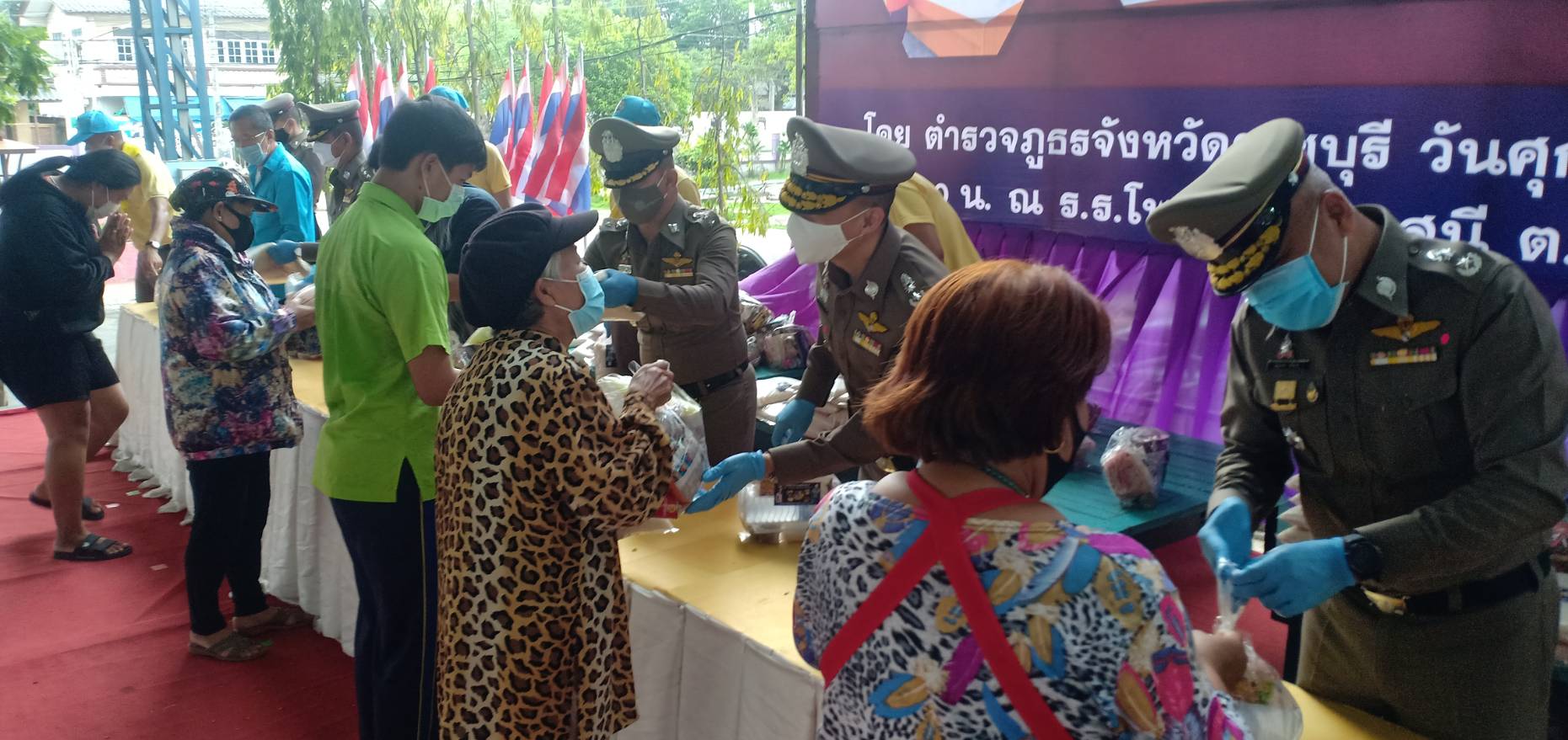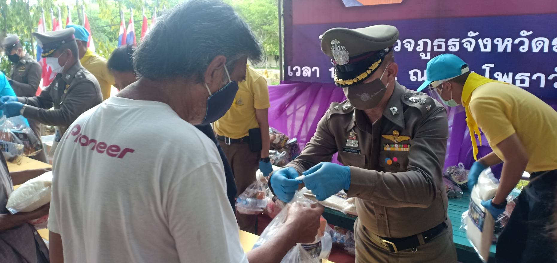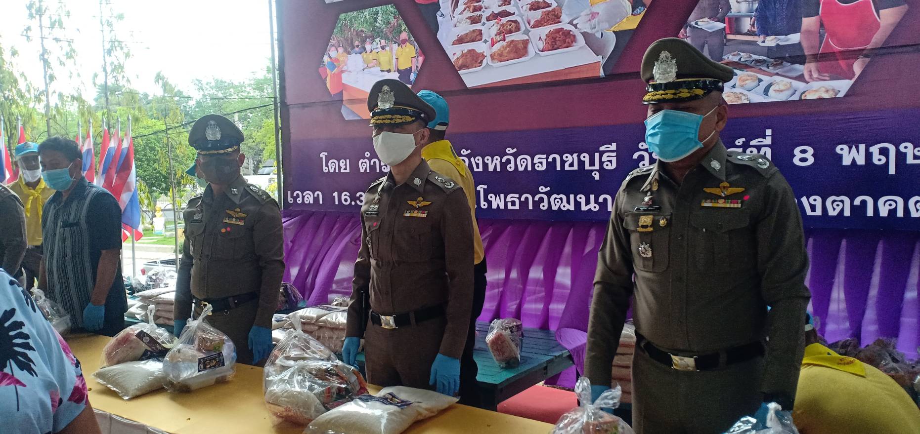 ส.ภ.โพธาราม จ.ราชบุรี ดำเนินกิจกรรมตาม นโยบาย ผบ.ตร แจกอาหารกล่อง พร้อมอาหารแห้ง และน้ำดื่ม จำ