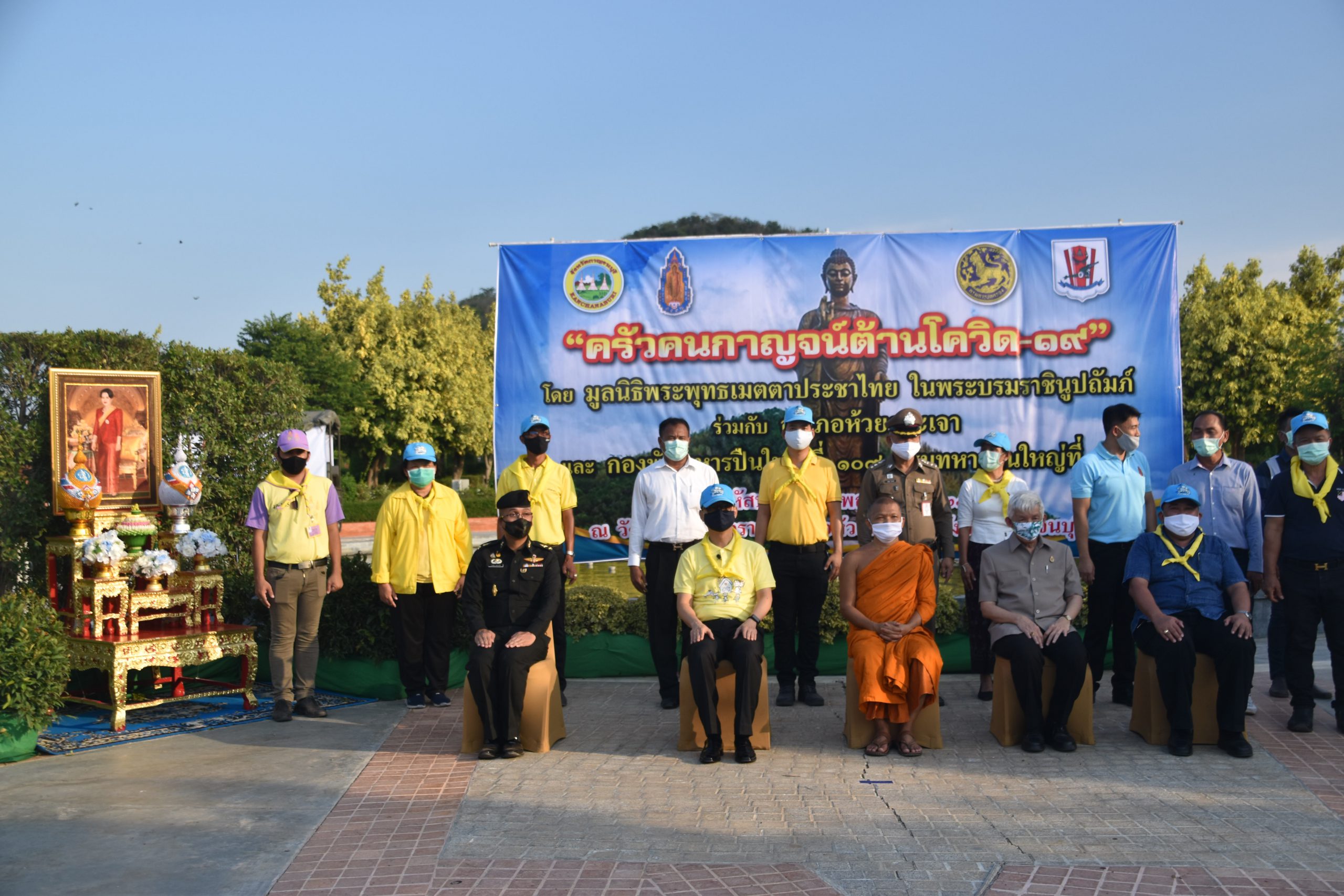 ที่วัดทิพย์สุคนธาราม ตำบลห้วยกระเจา อำเภอห้วยกระเจา จังหวัดกาญจนบุรี ดร.วีระชัย ณ นคร เลขาธิการมูลนิธิพระพุทธเมตตาประชาไทย ในพระบรมราชินูปถัมภ์ เป็นประธานเปิดโครงการ “ครัวคนกาญจน์ต้านโควิด-19 อำเภอห้วยกระเจา พร้อมด้วย พระมหาชะโลมปญฺญาวชิโร ร้อยโท ทศพล ไชยโกมินทร์ รองผู้ว่าราชการจังหวัดกาญจนบุรี และกรรมการมูลนิธิพระพุทธเมตตาประชาไทย ในพระบรมราชินูปถัมภ์ ว่าที่ร้อยตรีศุภมงคล บูชาถ่ายเทศ นายอำเภอห้วยกระเจา พันโทราชพล ทองอารีย์ ผู้บังคับกองพันทหารปืนใหญ่ที่ 109 กรมทหารปืนใหญ่ที่ 9 กองพลทหารราบที่ 9 นำครัวเคลื่นที่ประกอบอหาร จำนวน 800 กล่อง ให้กับประชาชนที่ประสบภัยโรคโควิด สำหรับครัวชุมชนของอำเภอห้วยกระเจาทางมูลนิธิพระพุทธเมตตาประชาไทย ในพระบรมราชินูปถัมภ์ ได้สนับสนุนเงินจำนวน 200,000 บาท เจ้าหน้าที่ทหารจากกองพันทหารปืนใหญ่ที่ 109 กรมทหารปืนใหญ่ที่ 9 กองพลทหารราบที่ 9 ได้ประกอบอาหารแจกให้กับประชาชน ซึ่งในวันนี้ได้ทำแจกจำนวน 800 กล่อง