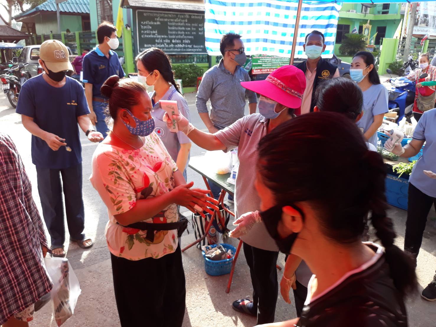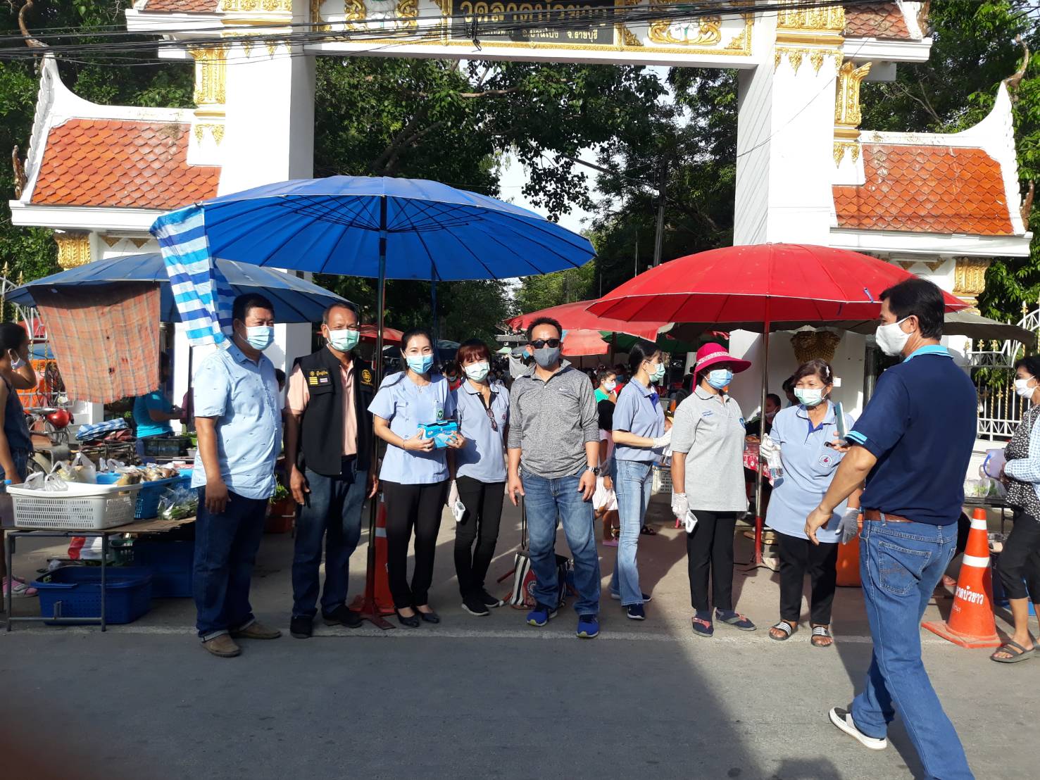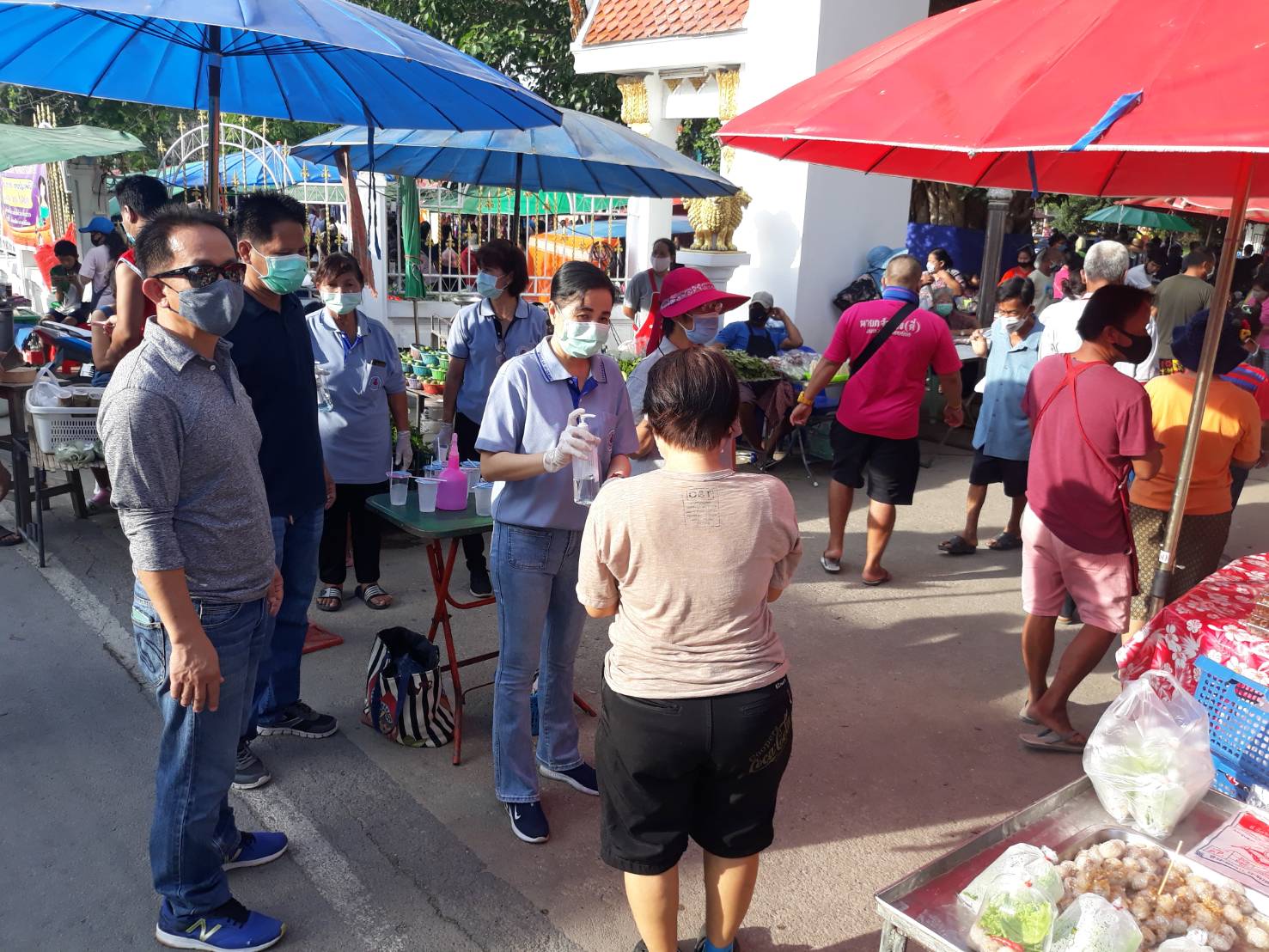 นายเฉลียว เก็งวิเชียรไชย นายก อบต. ลาดบัวขาวมอบหมายให้นายนฐพล ลิ้มไพบูลย์ปลัด อบต.ลาดบัวขาวนำ หน่วยงาน ราชสีห์ ขององค์การบริหารงานส่วนตำบล ลาดบัวขาว ทีมฝ่ายปกครอง ได้รับความสนับสนุน จากกำนันผู้ใหญ่บ้าน ทั้ง7หมู่บ้าน และกลุ่มของ อสม.ตำบล ลาดบัวขาว จำนวน35คน โดยมีนายพิศิษฐ์ สวนนาค ผอ.รพ.สต.ลาดบัวขาว นำทีมมาร่วม พร้อมนางบังอร ฤทธิรงค์ ประธาน อสม ตำบลลาดบัวขาว คอยอำนวยประสานงานให้ตลอดในการทำงาน การคัดกรองตรวจสอบประชาชนที่จะเข้ามาซื้อสินค้าในตลาดนัดวัดลาดบัวขาว โดยการตรวจวัด อุณหภูมิ และแจก CTC เจลล้างมือ พร้อมผ้าแม็กปิดปากให้กับประชาชนที่ไม่ได้มีผ้าอนามัยติดตัวมาที่จะเข้าไปซื้อของในตลาดแห่งนี้