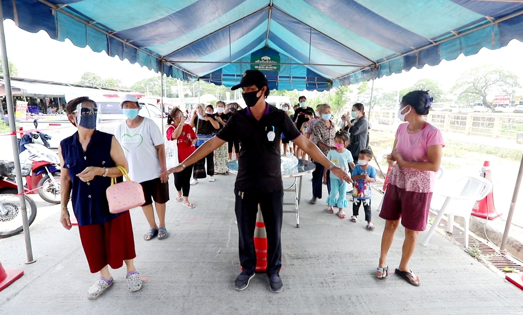 ทั้งนี้ก่อนที่ประชาชนจะเข้ารับการแจกจ่ายอาหาร มีการจัดระเบียบประชาชนโดยให้มีการยืนต่อแถวเว้นระยะห่าง มีการตรวจวัดอุณหภูมิร่างกาย ล้างมือด้วยแอลกอฮอล์ และจะต้องสวมใส่หน้ากากอนามัยทุกคน เพื่อให้เป็นไปตามมาตรการในการป้องกันการแพร่ระบาดของเชื้อไวรัสโควิด-19 หลังจากรับข้าวกล่องน้ำดื่มแล้วให้รีบเดินทางกลับบ้านทันที ห้ามมารับประทานบริเวณโดยรอบที่แจกโดยเด็ดขาด