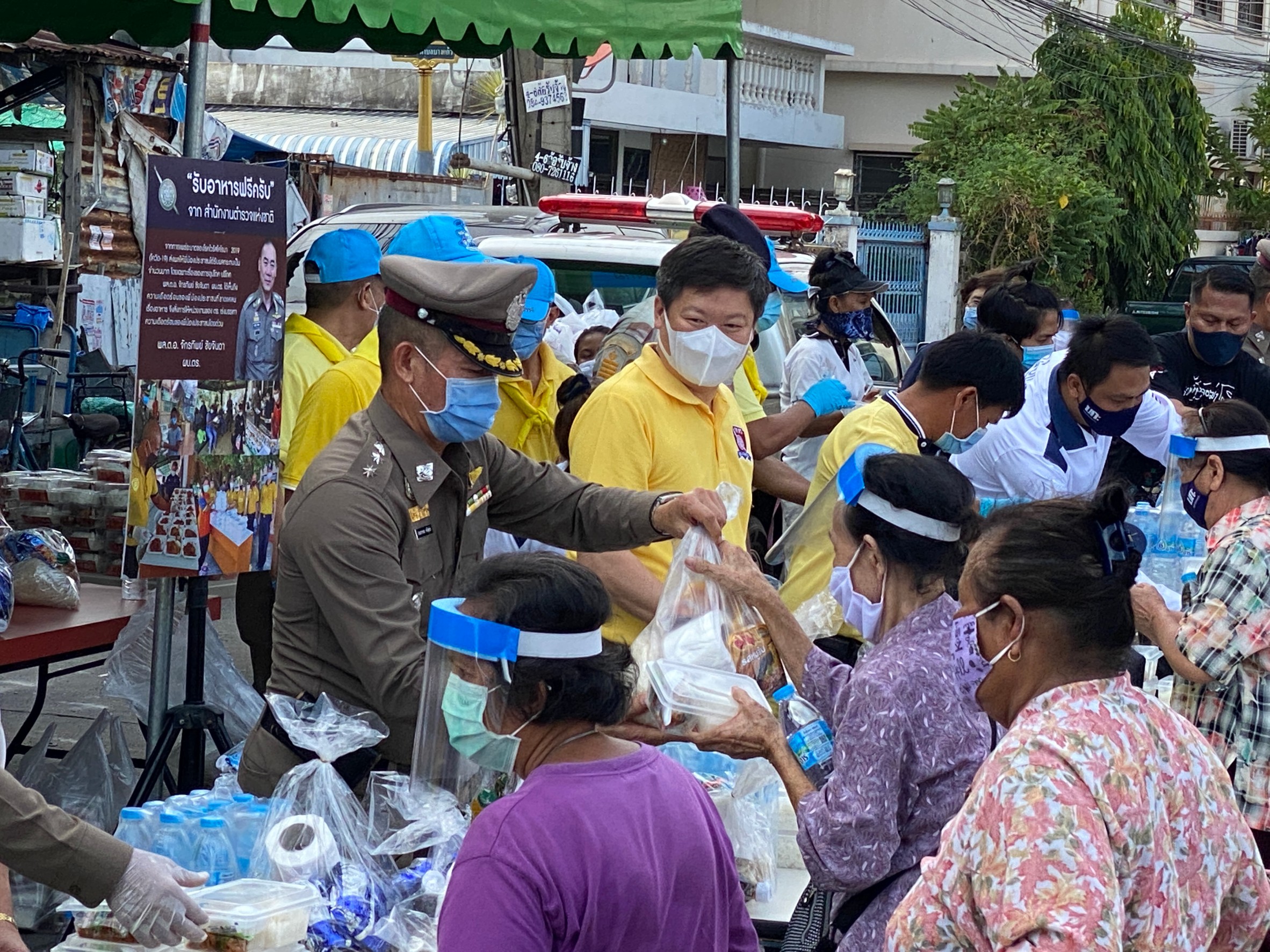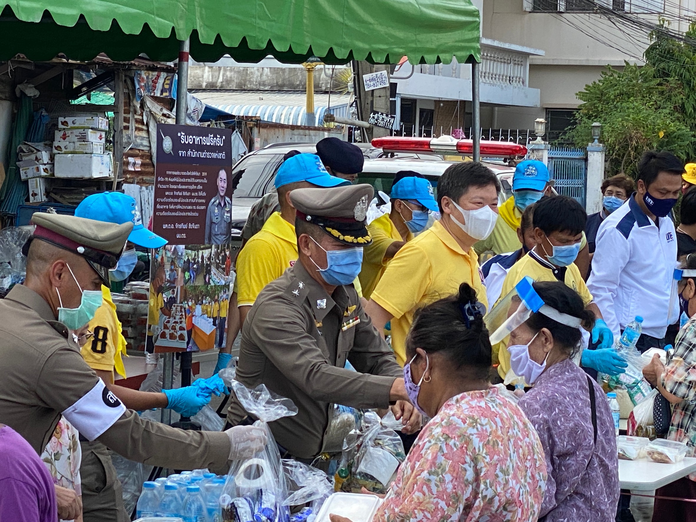 เพื่อบรรเทาความเดือดร้อน ในสถานการณ์แพร่ระบาดของโควิด 19 ตามนโยบาย “รับอาหารฟรีครับ” จากสำนักงานตำรวจแห่งชาติ ของ พล.ต.อ.จักรทิพย์ ชัยจินดา ผู้บัญชาการตำรวจแห่งชาติ