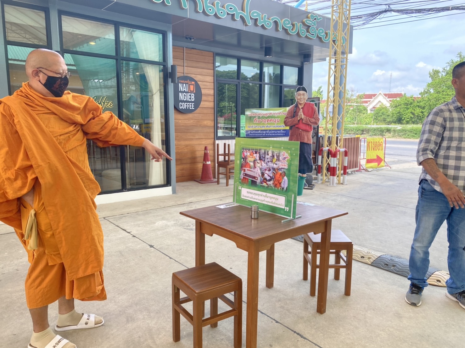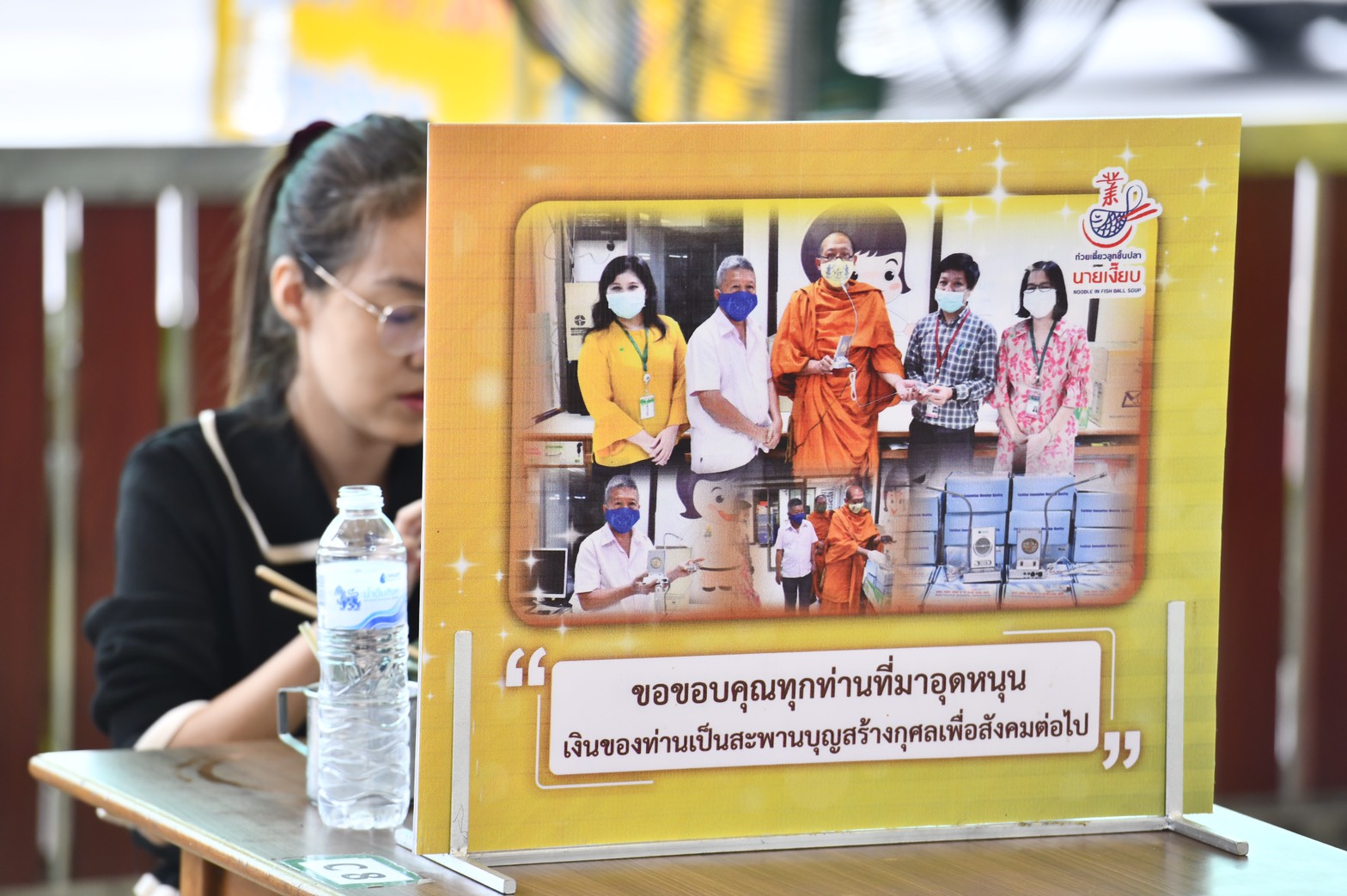 นายสมชาติ สาลีพัฒนา (เฮียเงี้ยบ)เจ้าของร้านลูกชิ้นปลานายเงี๊ยบ ไอเดียเก๋ทำป้ายกั้นเว้นระยะห่างตามนโยบายสาธารณสุข ป้องกันการแพร่ระบาดของไวรัสโควิด-19 ด้วยการมีฉากกั้นให้แก่ลูกค้าที่มานั่งรับประทานในร้าน หลังจากมีการผ่อนปรน ตามมาตรการควบคุมโรค ด้วยการติดตั้งป้ายขนาด50X60เซนติเมตร ที่มีภาพกิจกรรมการที่ทางร้านลูกชิ้นปลานายเงี๊ยบ ได้ไปบริจาคเงิน หนึ่งล้านบาท ให้โรงพยาบาลศิริราชสู้โควิด รวมถึงการมอบเครื่องมือแพทย์ต่างๆ เช่น เตียงคนไข้ไฟฟ้า เครื่องช่วยหายใจ ฯลฯ อีกมากมายให้กับ โรงพยาบาลหลายแห่ง หลายจังหวัด รวมทั้งการไปมอบอุปกรณ์การศึกษาให้กับโรงเรียนในที่ต่างๆหลายจังหวัด เช่นกัน โดยมี ข้อความในป้ายด้านล่างภาพกิจกรรมการมอบสิ่งของต่างๆว่า “ขอบคุณลูกค้าทุกท่านที่มาอุดหนุน เงินของท่านเป็นสะพานบุญสร้างกุศลเพื่อสังคมต่อไป” ตั้งบนโต๊ะป้องกัน เว้นระยะห่างให้ลูกค้านั่งทานก๋วยเตี๋ยว ที่ทางร้านลูกชิ้นปลานายเงี๊ยบ ทำจริงดังภาพที่ปรากฏตามโต๊ะ โดยได้ร่วมกับกองทุนหลวงพ่อพูลวัดไผ่ล้อม โดยพระครูปลัดสิทธิวัฒน์(หลวงพี่น้ำฝน)เจ้าอาวาสวัดไผ่ล้อม ต.พระปฐมเจดีย์ อ.เมือง จ.นครปฐม ดำเนินการด้านสาธารณสงเคราะห์ การบริจาคเครื่องมือแพทย์ต่างๆและอุปกรณ์การศึกษา
