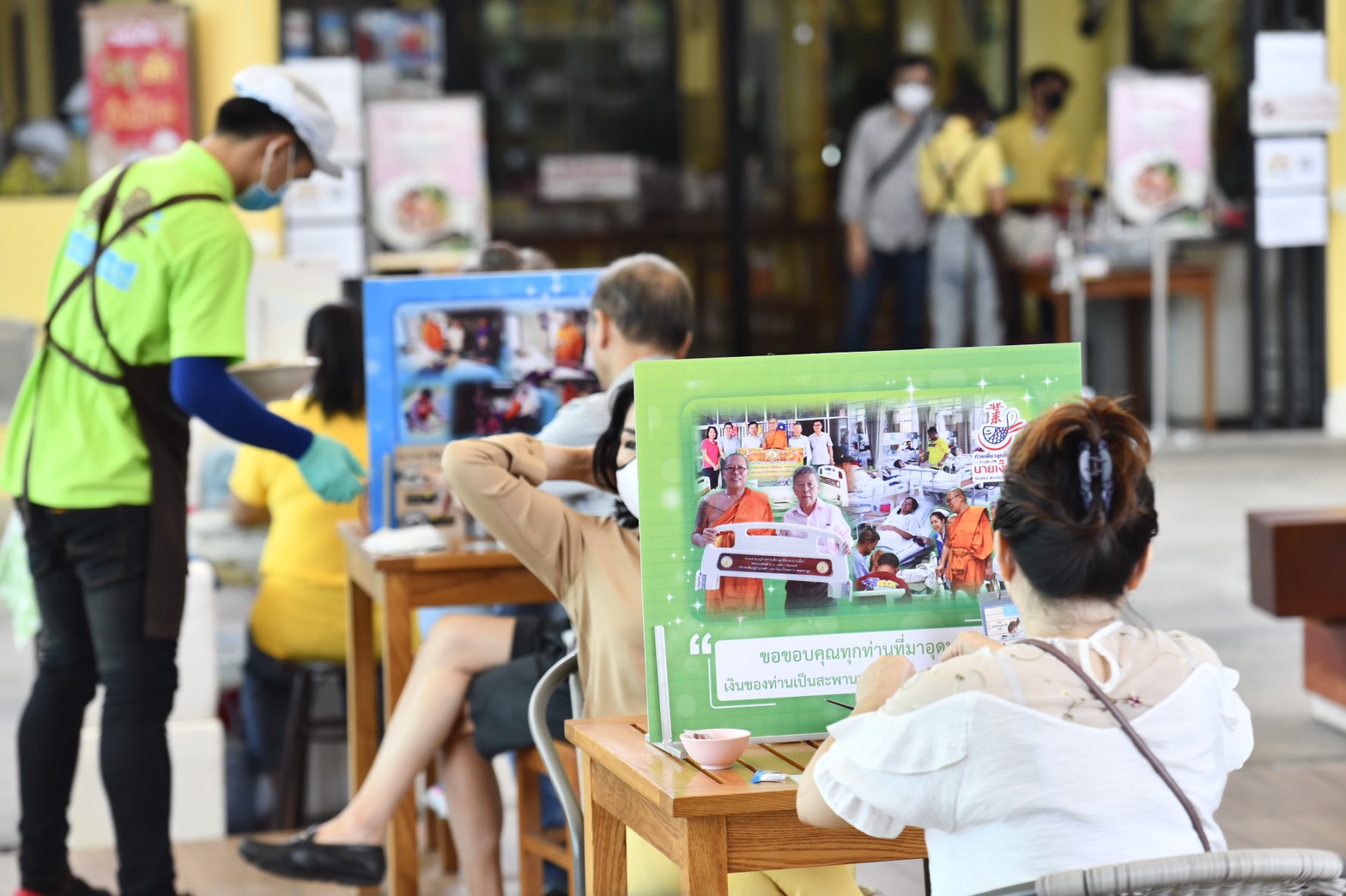 ทางด้านนายสมชาติ สาลีพัฒนา (เฮียเงี้ยบ)เจ้าของร้านลูกชิ้นปลานายเงี๊ยบ กล่าวว่า ในช่วงที่ทางการให้ห่อกลับบ้านอย่างเดียวยอดก็ตกลงไปมากถึง50%เลยทีเดียว และตอนนี้ทางการผ่อนผันให้เราเปิดให้ลูกค้านั่งทานได้ เราก็มีฉากกั้นให้นั่งที่ละ2คน แม้แต่เครี่องปรุง พริก น้ำตาล และพริกน้ำส้มของทางร้านเราก็เป็นใส่ห่อทานเฉพาะคน ให้ลูกค้า ไม่มีกล่องเครื่องปรุงที่เมื่อก่อนตักรวมกัน หลังจากทางการผ่อนผันแล้วยอดก็เริ่มจะดีขึ้นหน่อยไม่เหมือนที่ผ่านมา ซึ่งในช่วงก่อนลำบากมากรายจ่ายเพิ่มมากขึ้นรายได้น้อยลง ต้องดูแลลูกน้อง สองร้านกว่า70คน ทางร้านให้เงินเดือนและอยู่กันปกติไม่มีให้ออก ทางร้านได้เปิดให้บริการและปฎิบัติตาม ภายใต้มาตรการควบคุมโรค ตั้งแต่การให้ซื้อกลับทานที่บ้าน จนถึงการผ่อนปรนให้ลูกค้าสามารถนั่งทานที่ร้านได้ เริ่มตั้งแต่การวัดอุณภูมิตรวจไข้ ไม่ให้เกินที่มาตรการควบคุมโรคกำหนด และ มีเจลแอลกอฮอล์ล้างมือ ก่อนเข้าร้าน รวมทั้งการต้องเว้นระยะห่างหรือมีฉากกั้นการแพร่กระจายเชื้อโรค ที่โต๊ะนั่งทาน และมีการพ่นน้ำยาฆ่าเชื้อโรคทั่วร้านเป็นประจำทุกวันอาทิตย์ และโครงการของร้านเราจะร่วมกับกองทุนหลวงพ่อพูลวัดไผ่ล้อม ต.พระปฐมเจดีย์ อ.เมือง จ.นครปฐม ก๋วยเตี๋ยว1ชาม = 1บุญ เวลากองทุนหลวงพ่อพูล จะไปทำบุญที่ไหนแจกเตียง แจกเครื่องมือแพทย์ อุปกรณ์การศึกษาเราก็ร่วมไปกับกองทุนหลวงพ่อพูล ที่ผ่านมาเมื่อไม่นานก็บริจาคเงินให้โรงพยาบาลศิริราช สู้โควิด จำนวนเงิน1,000,000 บาท กองทุนนี้ก็เกิดจากลูกค้าที่มานั่งทานทั้งนั้นแล้วเรารวบรวมเอาไว้ ซึ่งถือว่ามากินที่ร้านแล้วได้อิ่มท้องได้อิ่มบุญกลับไปด้วย ในส่วนป้ายที่ติดตั้งตามโต๊ะนี้หลวงพี่น้ำฝนท่านทำมาให้ เพราะเห็นว่าถ้าทำเป็นพลาสติกเมื่อลมพัดหล่นลงมาจะแตกเสียหายจึงคิดทำเป็นฟิวเจอร์บอร์ดใส่ภาพการมอบสิ่งต่างไว้ตามโต๊ะให้ลูกค้าเห็นการมีส่วนร่วมทำบุญในครั้งนี้ด้วย
