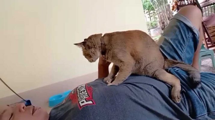 ที่บ้านเลขที่ 62/9 ถนนเวียนกะพังซอย 12 ต.ทับเที่ยง อ.เมือง จ.ตรัง ซึ่งเป็นบ้านของนายปกครอง พรอนุวงศ์ อายุ 38 ปี ได้เลี้ยงแมวไว้ทั้งหมด 4 ตัวแต่มีอยู่ 1 ตัวชื่อเจ้าน้ำมัน เป็นแมวเพศเมีย อายุ 1 ปี ได้มาบีบนวดให้กับเจ้าของเป็นประจำหลังเลิกงาน หลังโดนคำขู่ว่าในยุคโควิด-19 มีงานน้อยลง ความเป็นอยู่ลำบากมากขึ้น เป็นแมวก็ต้องช่วยบีบนวดเพื่อแลกอาหาร ไม่ได้ให้อยู่ฟรีหากินเองไม่ได้แล้วก็ต้องช่วยทำงาน ต้องทำให้เจ้านายหายปวดเมื่อยและสบายใจ หลังจากนั้นจากที่นานๆทีจะนวดให้เจ้าของ กลับกลายเป็นว่าตอนนี้เจ้าน้ำมันได้ขยันบีบนวดเจ้าของอยู่เป็นประจำ ทั้งที่นิสัยของมันไม่ชอบการอยู่นิ่ง และบังคับไม่ได้ แต่ระยะหลังเหมือนจะเข้าใจเจ้าของจึงเริ่มบีบนวดหลังไหล่และลำตัวบ่อยขึ้น เพื่อแลกกับอาหารที่เจ้าของให้เป็นรางวัลหลังนวดเสร็จ