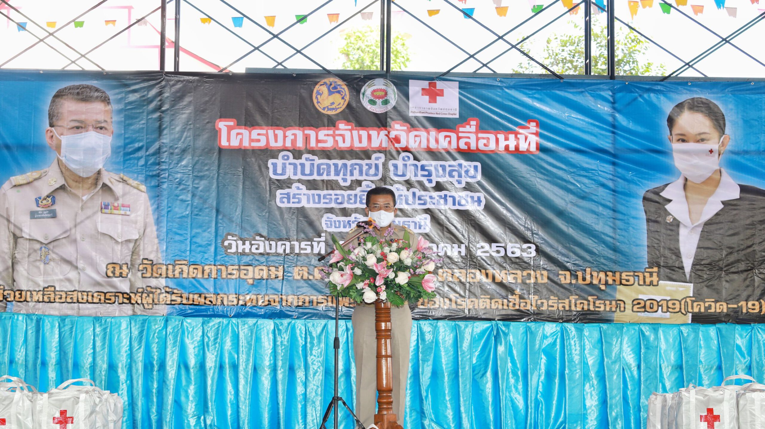 ตามโครงการจัดหน่วยบริการจังหวัดเคลื่อนที่ บำบัดทุกข์ บำรุงสุข สร้างรอยยิ้มให้ประชาชน (การช่วยเหลือสงเคราะห์ผู้ได้รับผลกระทบจากการแพร่ระบาดของโรคติดเชื้อไวรัสโคโรนา 2019 ) โดยมีหน่วยงานภาครัฐในจังหวัดและในพื้นที่ออกให้บริการประชาชนถึงตำบล เพื่อเป็นการช่วยเหลือ บรรเทา และแบ่งเบาภาระของประชาชนและ ผู้ว่าราชการจังหวัดปทุมธานี นายกเหล่ากาชาดจังหวัดปทุมธานี หัวหน้าส่วนราชการประจำจังหวัด มอบเงินช่วยเหลือครอบครัวที่ประสบปัญหาความเดือดร้อน พร้อมมอบเครื่องอุปโภคบริโภคให้แก่ประชาชนในพื้นที่อำเภอคลองหลวง จังหวัดปทุมธานี