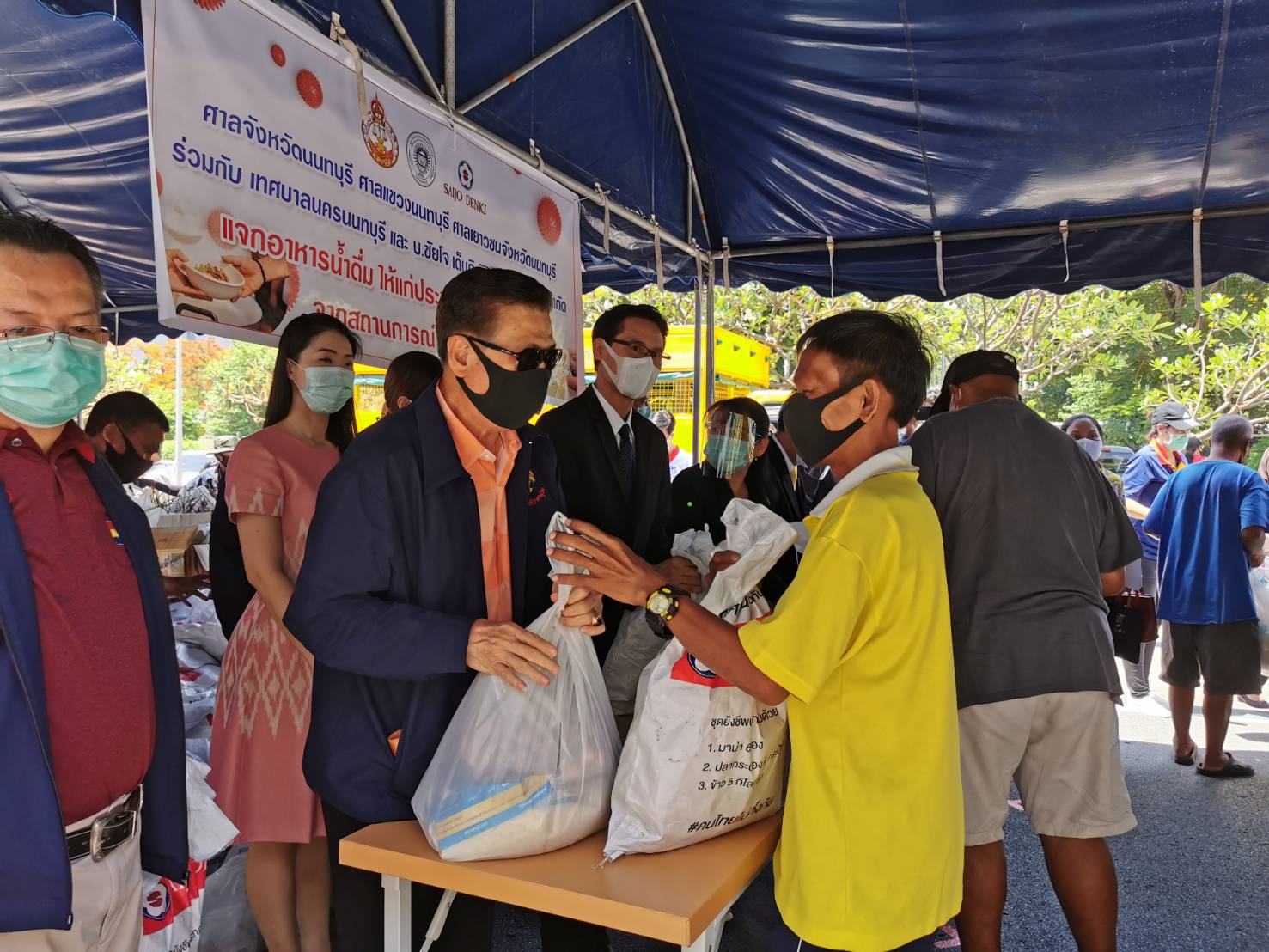 นายสิทธิศักดิ์ วนะชกิจ อธิบดีผู้พิพากษาศาลเยาวชนและครอบครัวกลาง กล่าวว่า ด้วยศาลยุติธรรมได้รับทราบถึงปัญหาและความเดือดร้อนของประชาชนซึ่งได้รับผลกระทบจากการแพร่ระบาดของโรคติดเชื้อไวรัสโคโรน่า 2019 ขาดแคลนอาหาร และสิ่งป้องกันโรคที่จำเป็นทั่วประเทศรวมถึงจังหวัดนนทบุรีด้วย โดยดำริของท่านประธานศาลฎีกา ได้ตระหนักถึงปัญหาดังกล่าวเป็นสำคัญ ศาลยุติธรรมในพื้นที่จังหวัดนนทบุรี จึงได้จัดมอบข้าวกล่อง ข้าวสารอาหารแห้ง และอาหารสำเร็จรูปที่มีคุณภาพ สะอาดถูกสุขลักษณะและปลอดภัย รวมถึงเจลล้างมือ และหน้ากากผ้า แก่ประชาชนในพื้นที่จังหวัดนนทบุรี จำนวน 1,000 ชุด รวมทั้งจัดตั้งตู้แบ่งปันน้ำใจเพื่อให้ประชาชนทั่วไป หยิบอาหารและสิ่งของจำเป็นในตู้ เพื่อบรรเทาการขาดแคลนทั้งอาหารและเสื้อผ้าเครื่องใช้ที่จำเป็น อีกด้วย