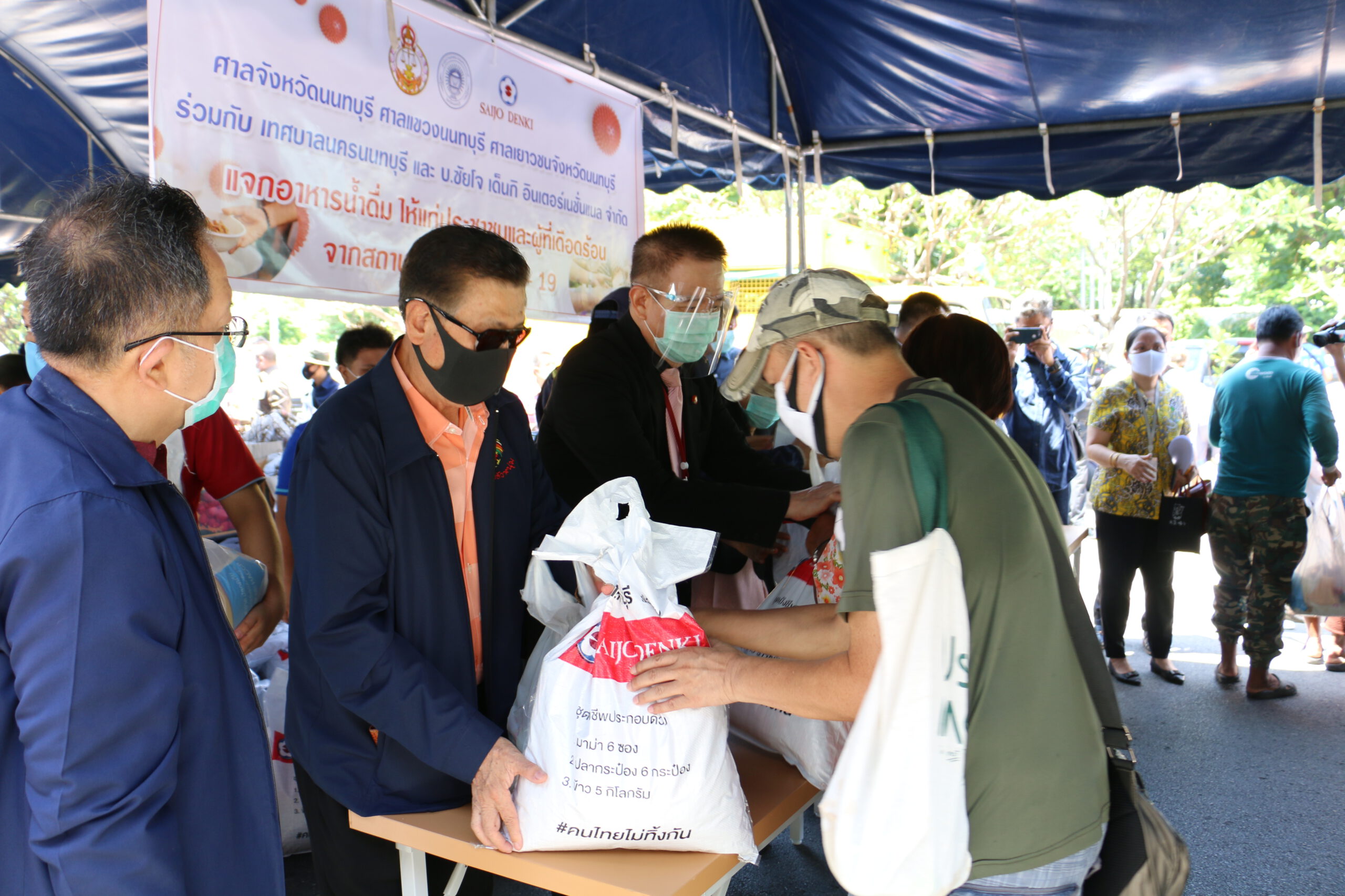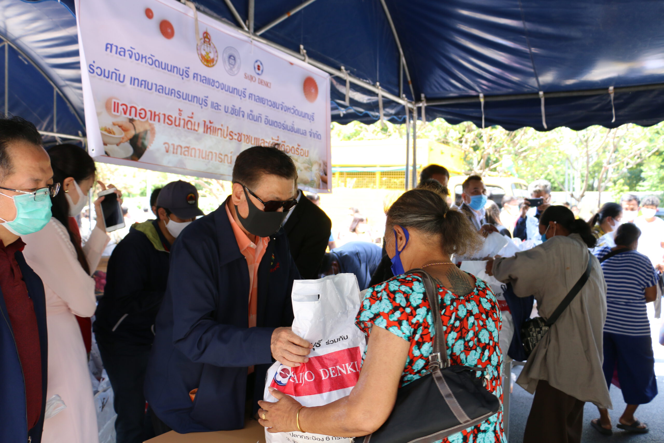 เมื่อเวลา 11.00 น. วันที่ 12 พฤษภาคม 2563 ที่ศาลจังหวัดนนทบุรี นายสิทธิศักดิ์ วนะชกิจ อธิบดีผู้พิพากษาศาลเยาวชนและครอบครัวกลาง นายสันต์ชัย ล้อมณีนพรัตน์ อธิบดีผู้พิพากษาภาค 1 นายกฤษณพล ณ ถลาง ผู้พิพากษาหัวหน้าศาลจังหวัดนนทบุรี ร่วมกับเทศบาลนครนนทบุรี โดยนายสมนึก ธนเดชากุล นายกเทศมนตรีนครนนทบุรี และบริษัท ซัยโจ เดนกิ อินเตอเนชั่นแนล จำกัด ได้จัดโครงการศาลยุติธรรมปันน้ำใจ