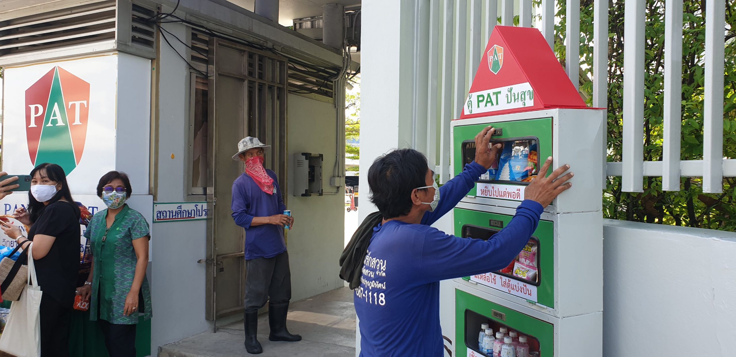 โดยนำสิ่งของอุปโภค บริโภคที่จำเป็น เช่น ข้าวสาร อาหารแห้ง น้ำ บะหมี่สำเร็จรูป ปลากระป๋อง บรรจุใส่ตู้PATปันสุข เพื่อให้ประชาชนทั่วไปที่ได้รับผลกระทบจากการประกอบอาชีพได้มาหยิบเอาไปบริโภคกัน โดยนายณรงค์ศักดิ์ ภูมิศรีสอาด กล่าวว่า ขณะนี้โครงการตู้ปันสุขได้ขยายไปอย่างรวดเร็วในพื้นที่หลายจังหวัด นับเป็นโครงการที่ช่วยเหลือสังคมสร้างความสุขใจทั้งผู้ให้ ดีใจทั้งผู้รับ เป็นการร่วมแบ่งปันน้ำใจต่อกัน ทั้งนี้ขอให้รับเอาสิ่งของไปพอประมาณ ไม่หยิบเอาของมากเกินไป แบ่งเหลือให้คนอื่น เป็นลักษณะหยิบและเติมเพื่อปันใจ สู้ภัยโควิด-19 ร่วมกัน