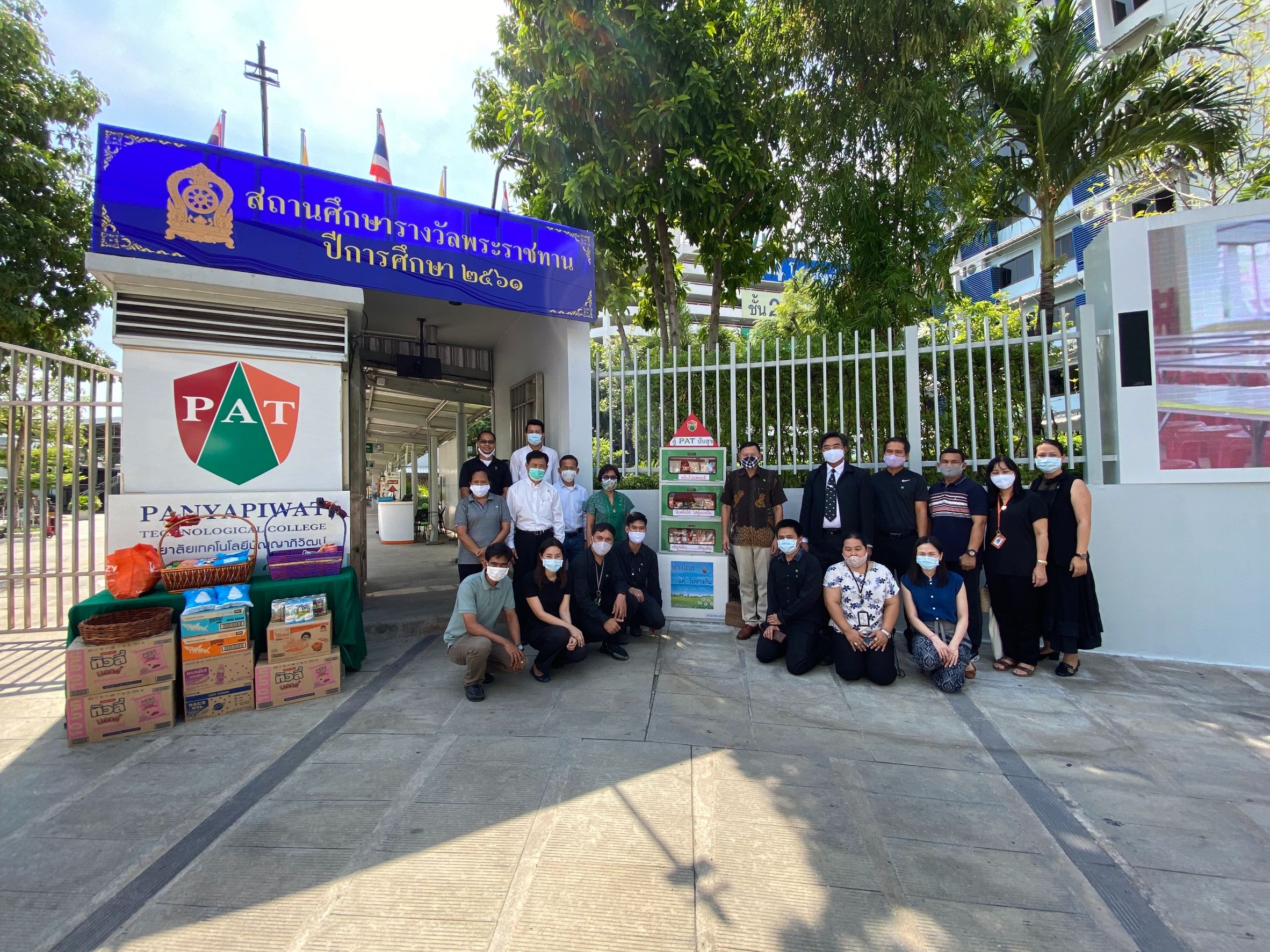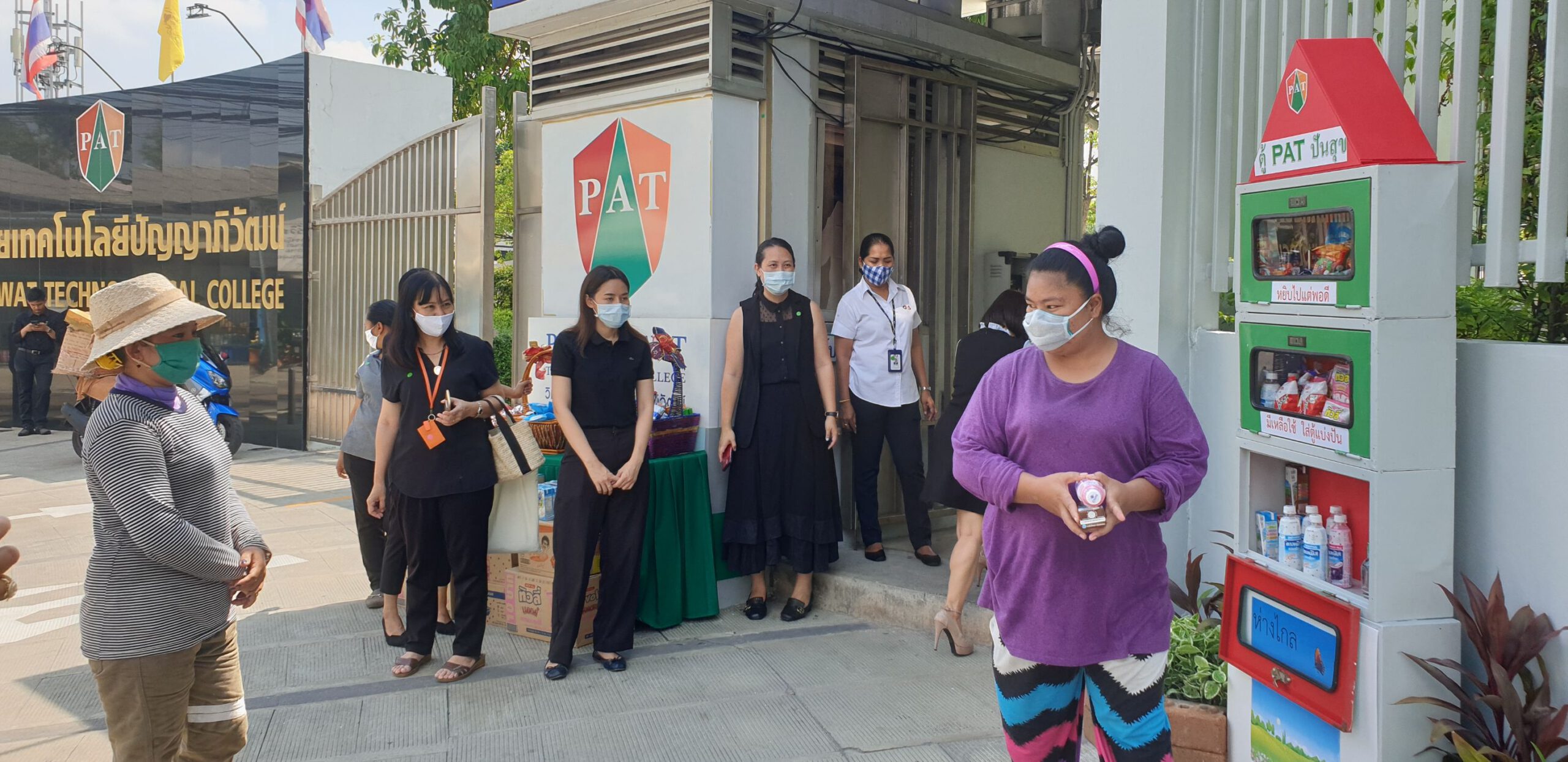ที่วิทยาลัยเทคโนโลยีปัญญาวิวัฒน์ อ.เมือง จ.นนทบุรี นายณรงค์ศักดิ์ ภูมิศรีสอาด ผู้แทนผู้รับใบอนุญาตวิทยาลัยเทคโนโลยีปัญญาภิวัฒน์ พร้อมด้วยนายวิเชียร เนียมน้อม ผู้อำนวยการวิทยาลัยเทคโนโลยีปัญญาภิวัฒน์ และคณะผู้บริหาร บุคลากรของวิทยาลัยฯ ร่วมกันเปิด “ตู้ PAT ปันสุข”