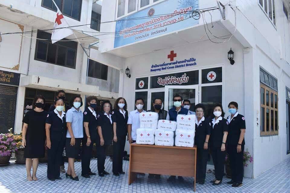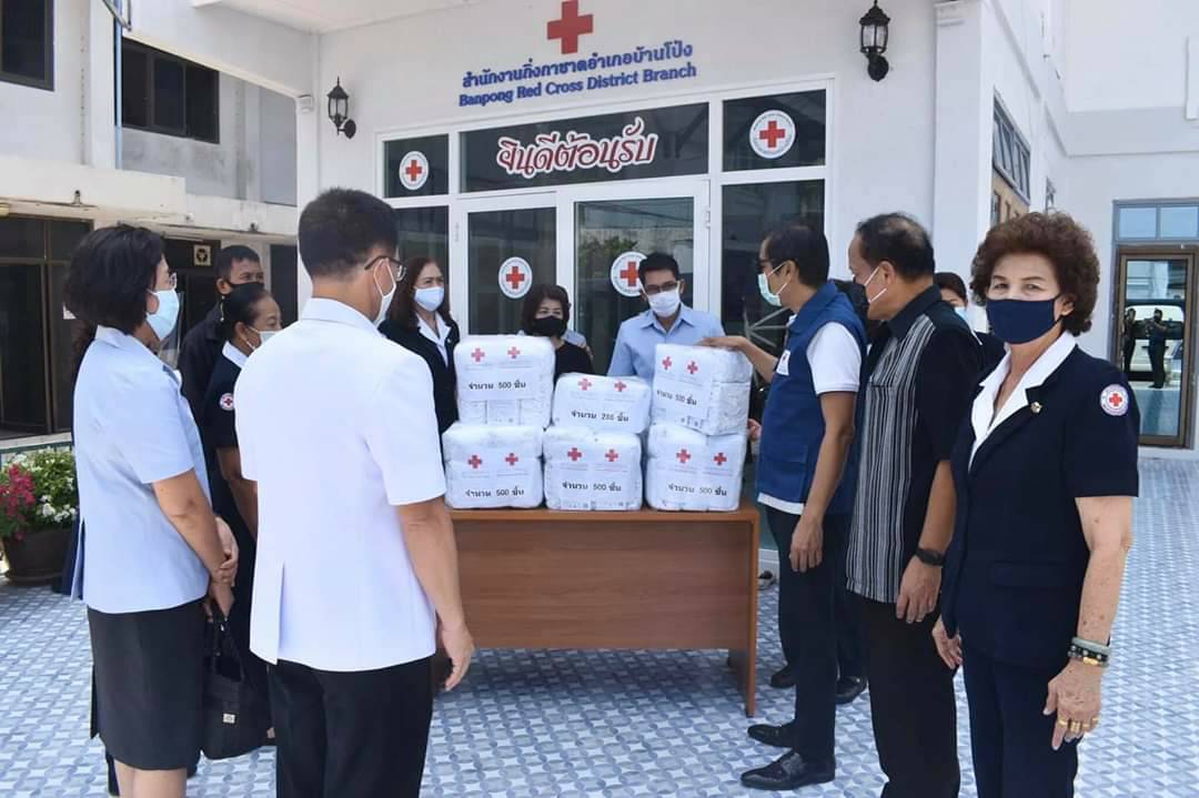 ราชบุรี เหล่ากาชาดจังหวัดราชบุรี จัดโครงการจัดหา ผ้าฝ้ายมัสลินที่มีตราสัญลักษณ์ สภากาชาดไทย แจกจ่ายให้กลุ่ม อสม.อำเภอบ้านโป่ง กับอำเภอโพธาราม