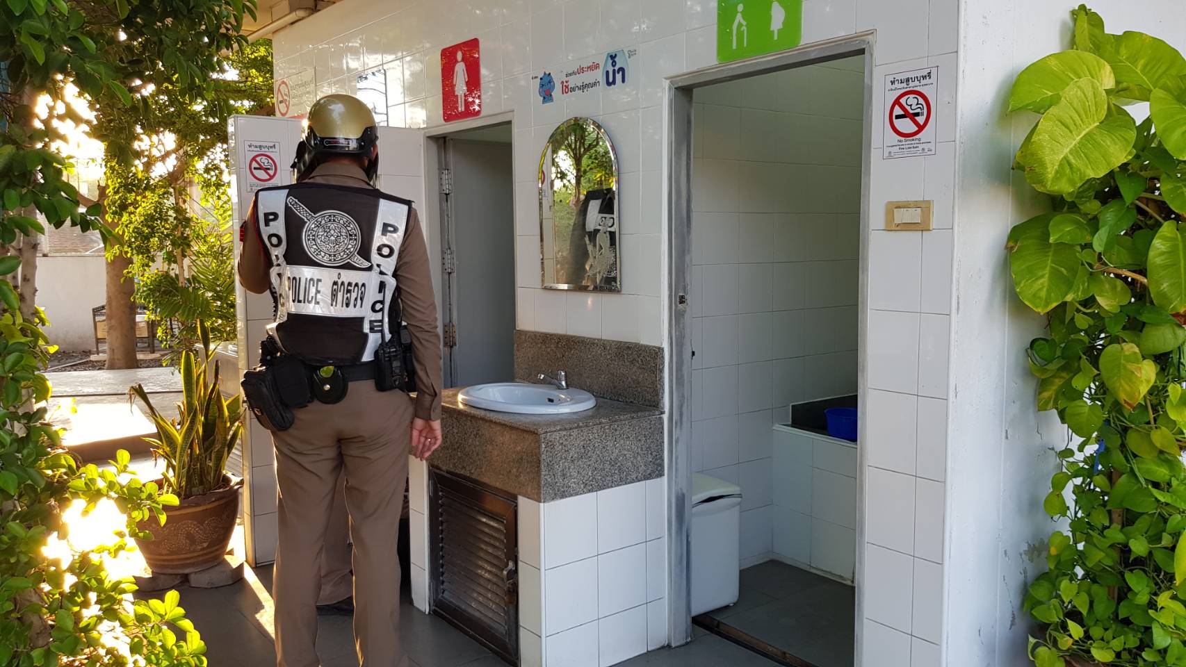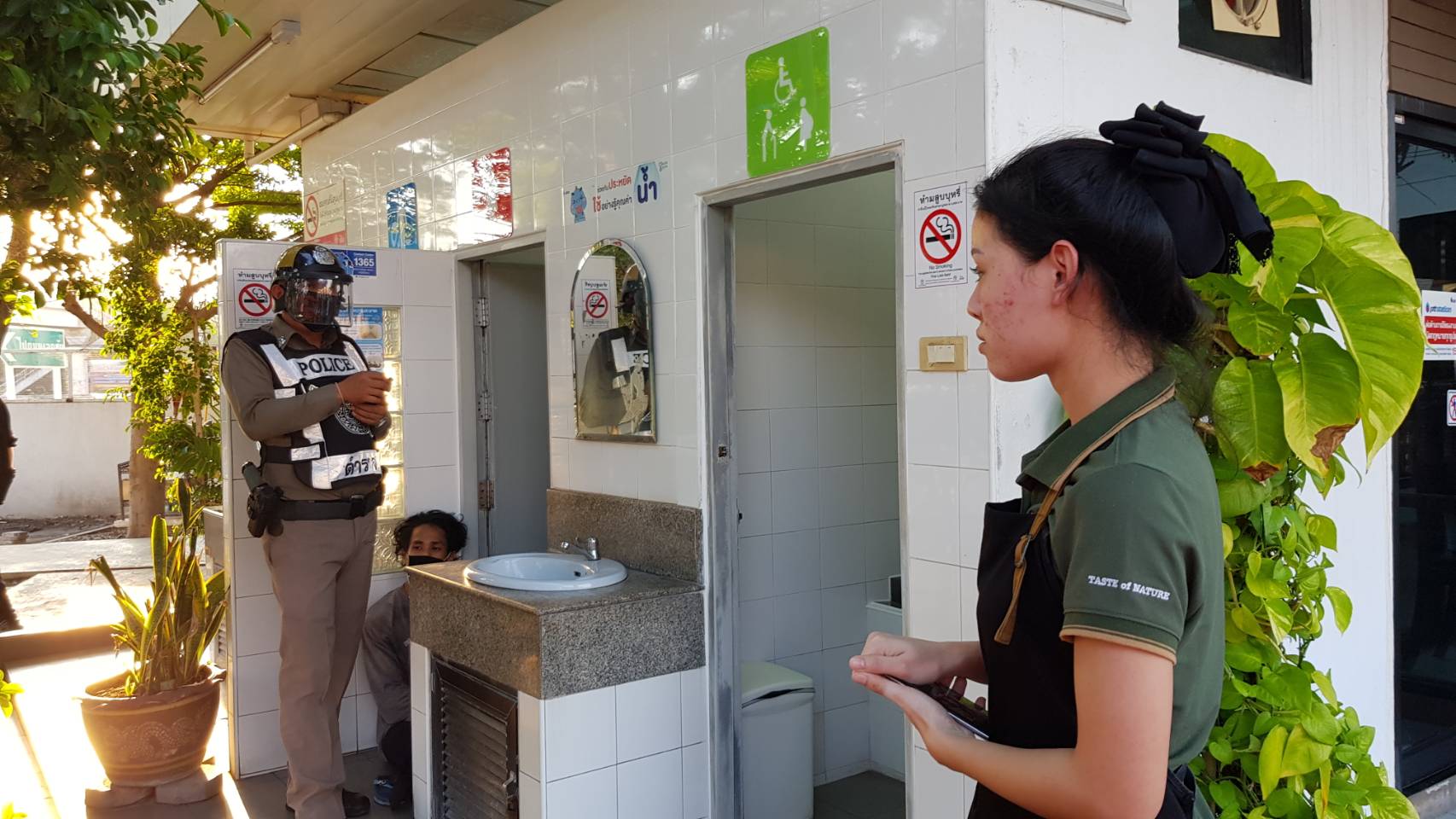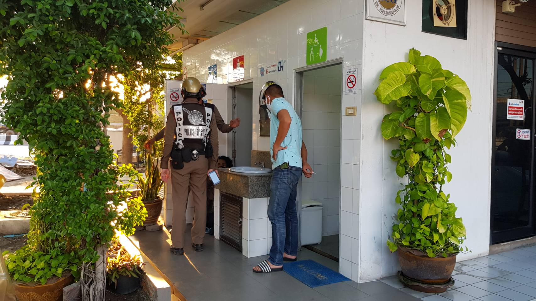 ตำรวจมหาชัย รวบหนุ่มรปภ.แอบในห้องน้ำหญิง