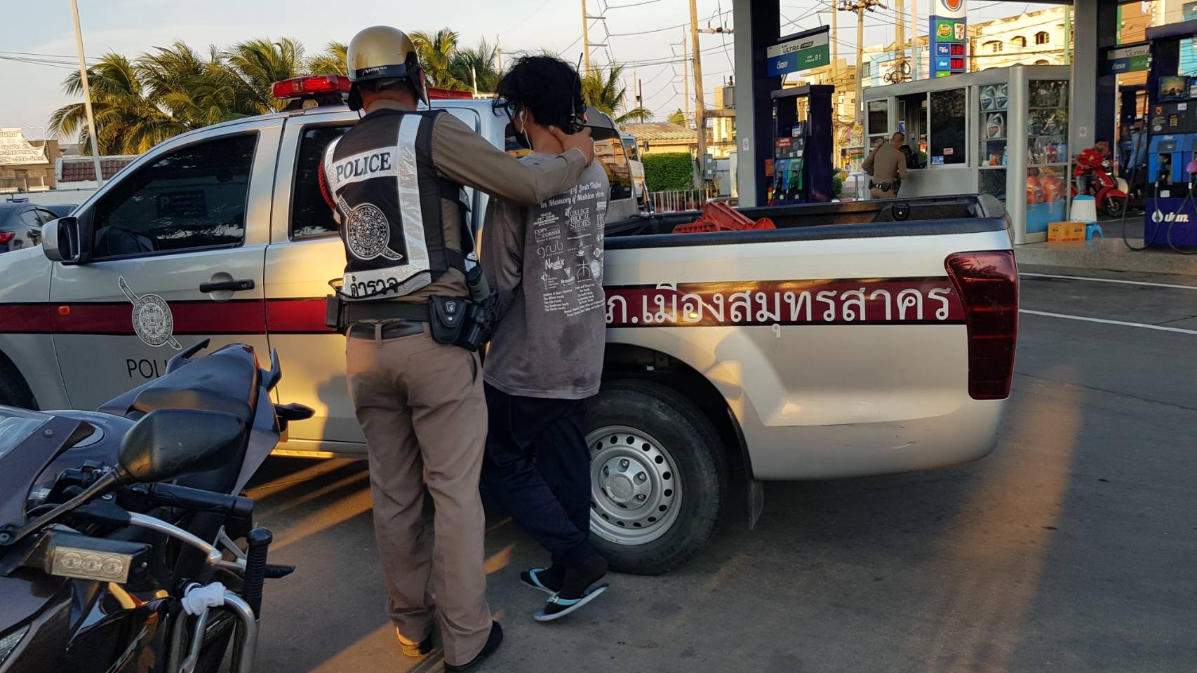 เมื่อเวลา 18:00 นของวันที่ 13 พฤษภาคม 2563 ร.ต.อ.วิวัฒน์ชัย ยุทธธนชัย รองสวป.สภ.เมืองสมุทรสาคร รับแจ้งมีชายแอบอยู่ในห้องน้ำหญิง ที่ภายในปั๊มน้ำมันปตท. ตั้งอยู่ริมถนนเอกชัย ต.มหาชัย อ.เมือง จ.สมุทรสาคร จึงนำกำลังเจ้าหน้าที่ตำรวจสายตรวจสภเมืองสมุทรสาคร ไปตรวจสอบพบว่า ที่ห้องน้ำหญิงห้อง 1 ปิดประตู คาดว่ามีบุคคลต้องสงสัยอยู่ ข้างใน เจ้าหน้าที่ตำรวจจึงเรียกตัว อยู่พักหนึ่ง ก่อนจะ ยอมเปิดประตู ออกมา ปรากฏว่าเป็นผู้ชายวัยรุ่นทราบชื่อคือนายชาญชัย ช่างสินค้า อายุ 27 ปี อยู่ม.4 ต.บางหญ้าแพรก อ.เมือง จ.สมุทรสาคร เจ้าหน้าที่จึงควบคุมตัวไปสอบสวน