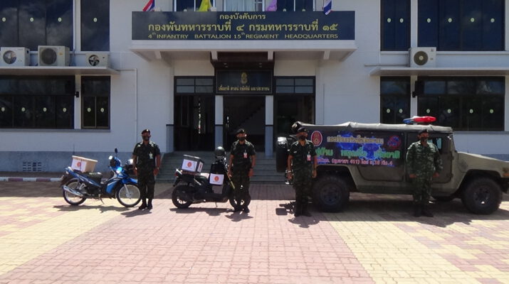กองพันทหารราบที่ 4 กรมทหารราบที่ 15 ค่ายพระยารัษฎานุประดิษฐ์ อำเภอห้วยยอด จังหวัดตรัง จัดรถจักรยานยนต์ Army Delivery ขนส่งและแจกจ่ายเครื่องบริโภค เพื่อช่วยเหลือผู้ยากไร้ผู้สูงอายุ ซึ่งมีความลำบากในการดำเนินชีวิตในสถานการณ์แพร่ระบาดของโรคติดเชื้อไวรัสโควิด – 19 ตามนโยบายของกองทัพบกและกองทัพภาคที่ 4