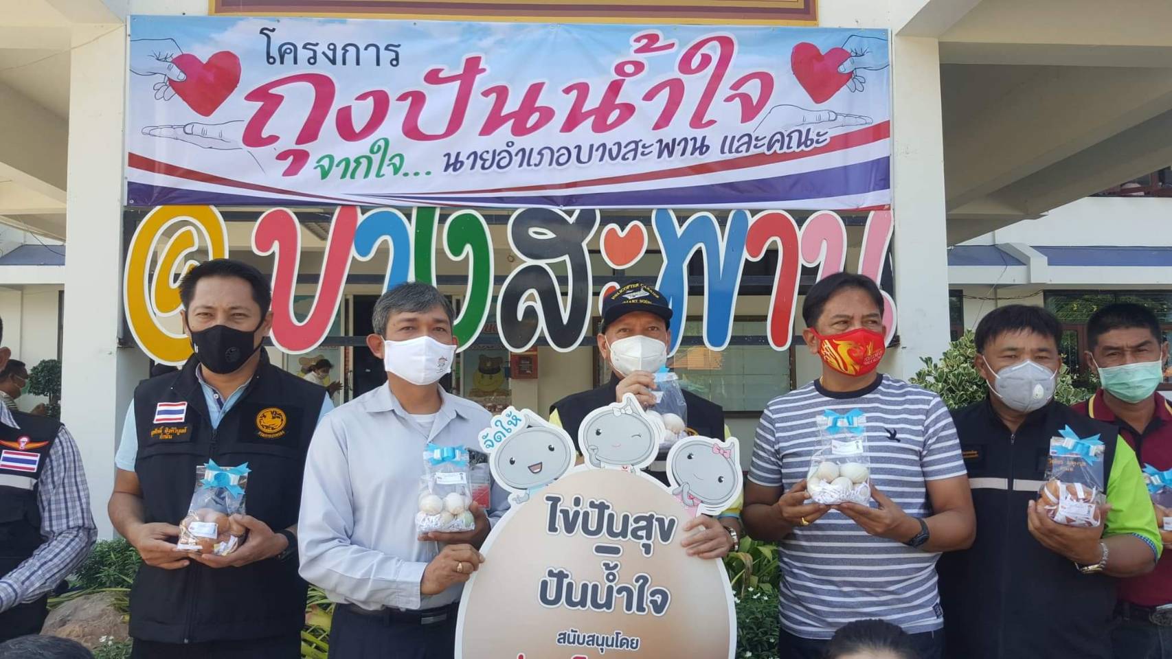 วันที่ 14 พ.ค.63 นายเลิศยศ แย้มพราย นายอำเภอบางสะพาน ได้ร่วมกับ นายสมหมาย ปานทอง ประธานชมรมกำนันผู้ใหญ่บ้านจังหวัดประจวบคีรีขันธ์ กำนันวิเชียร เกตุงาม รองประธานชมรมและคณะกาชาดฯ และกลุ่มเหล็ก SSI ร่วมกันสนับสนุนไข่ไก่ไข่เป็ดเพื่อส่วนรวม ช่วยประชาชนในยามเกิดวิกฤตปัญหาการแพร่ระบาดของใวรัสโควิด19 โดยอำเภอบางสะพาน ได้นำไข่ไก่มาแจกให้ประชาชนที่มาติดต่อทำธุระกับทางอำเภอ หรือผู้ที่เดือดร้อน เริ่มตั้งแต่วันพฤหัสบดีที่14พฤษภาคม2563เป็นต้นไป