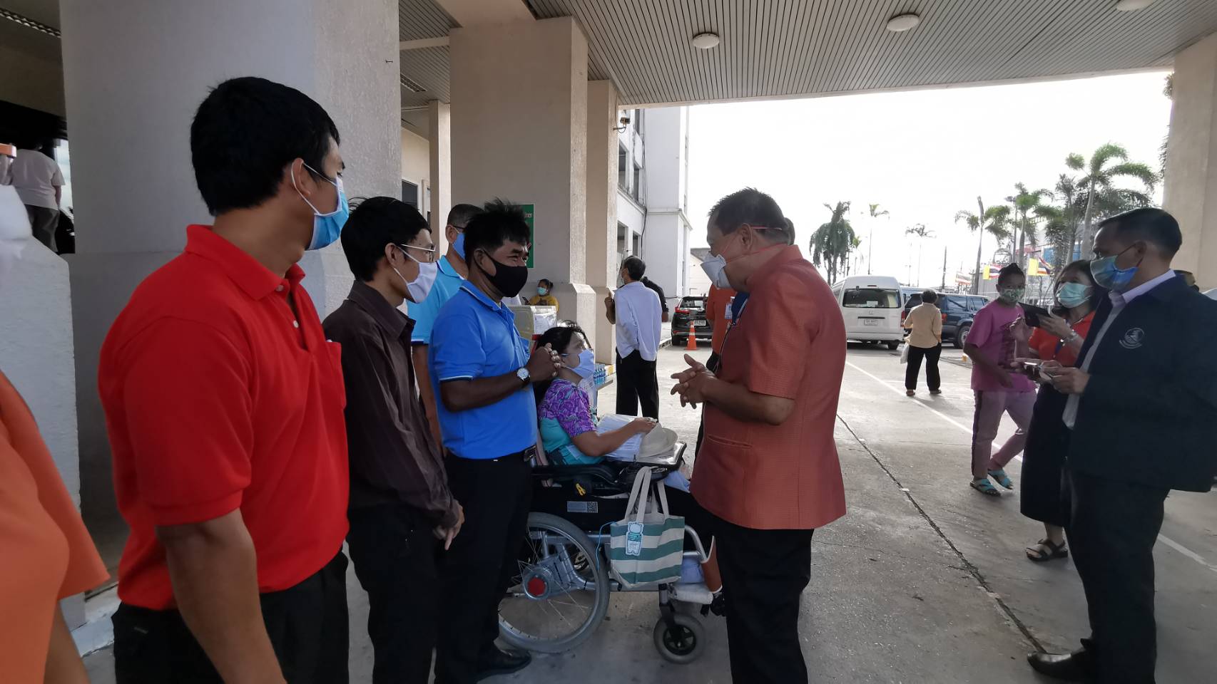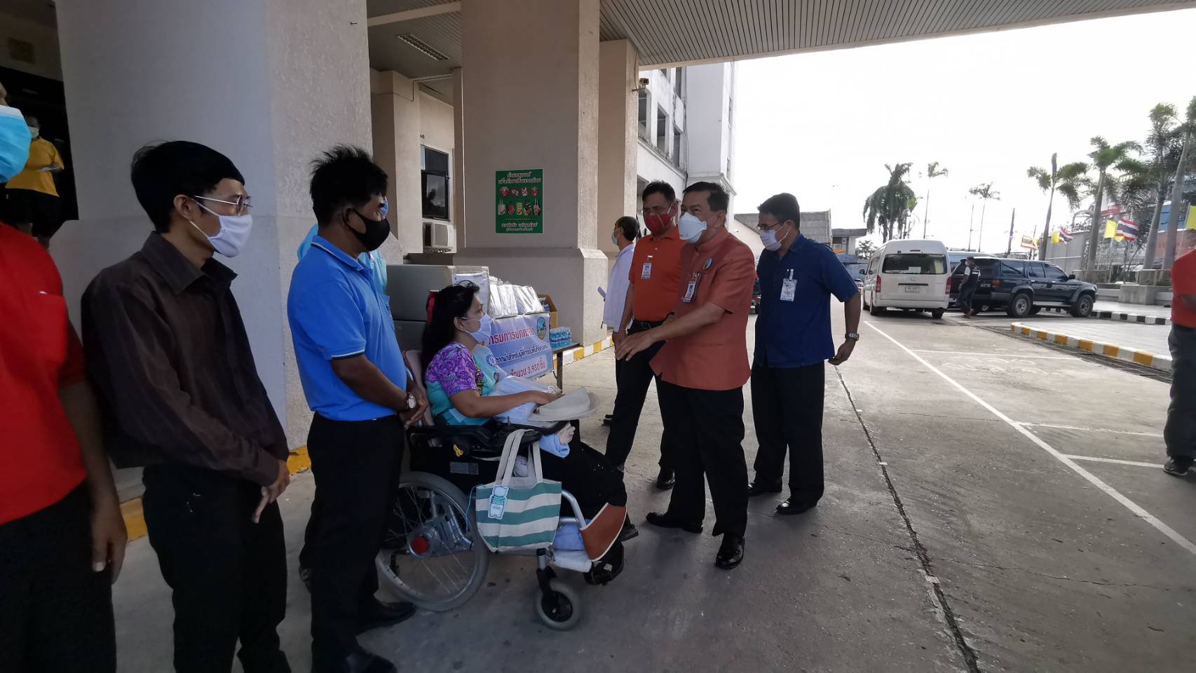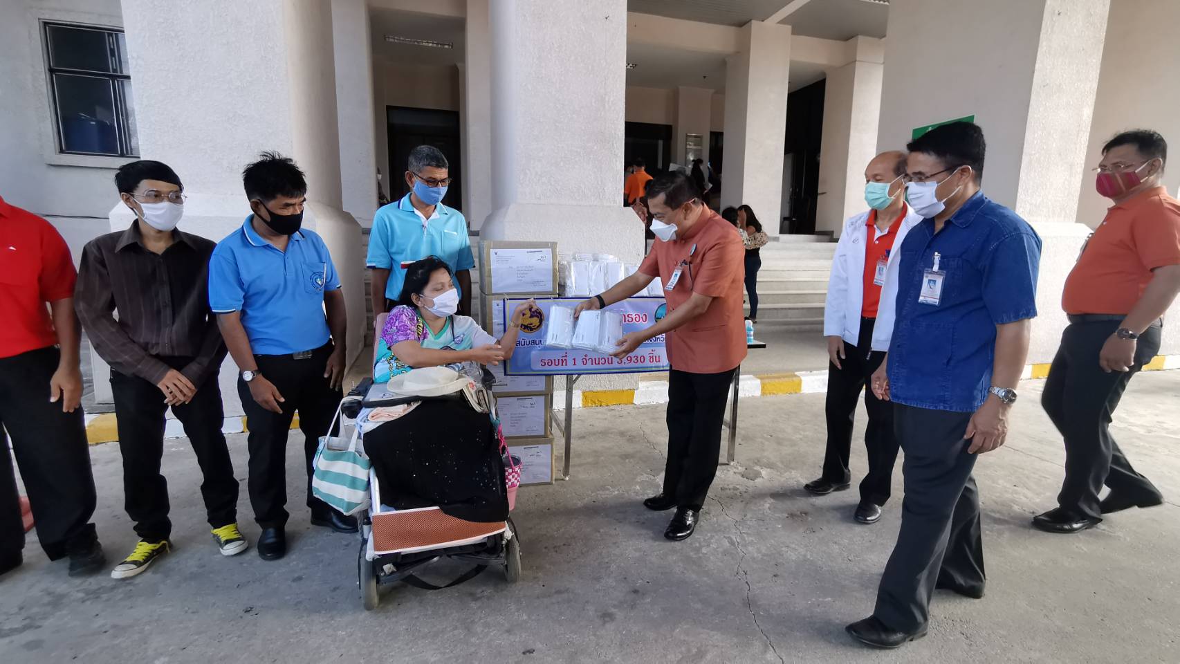นายลือชัย เจริญทรัพย์ ผู้ว่าราชการจังหวัดตรัง เป็นประธานในพิธีมอบหน้ากากผ้าสำหรับผู้พิการในพื้นที่จังหวัดตรัง ณ หน้าศาลากลางจังหวัดตรัง