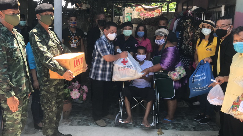 ทางคณะจึงได้ร่วมกันมอบสิ่งของเพื่อเป็นการช่วยเหลือและบรรเทาทุกข์ในเบื้องต้น โดยได้มอบรถวีลแชร์คันใหม่สำหรับผู้พิการทางการเคลื่อนไหวจากสโมสรไลออนส์หัวหิน พร้อมข้าวสารอาหารแห้งจาก สนง.พัฒนาสังคมและความมั่นคงของมนุษย์จังหวัดประจวบฯ (พมจ.ปข.) ถุงยังชีพจากกาชาดจังหวัดประจวบคีรีขันธ์ ถุุงยังชีพจาก ”มูลนิธิ พระราหู โครงการใจถึงใจ คนไทยไม่ทิ้งกัน“น้ำดื่มจาก นายณภัทร จันทร์เที่ยง ผู้จัดการบริษัท อึ้งง่วนไต๋อีซูซุเซลล์ จำกัด สาขาปราณบุรี ไข่ไก่ และน้ำดื่มจากกอ.รมน.จังหวัดประจวบ