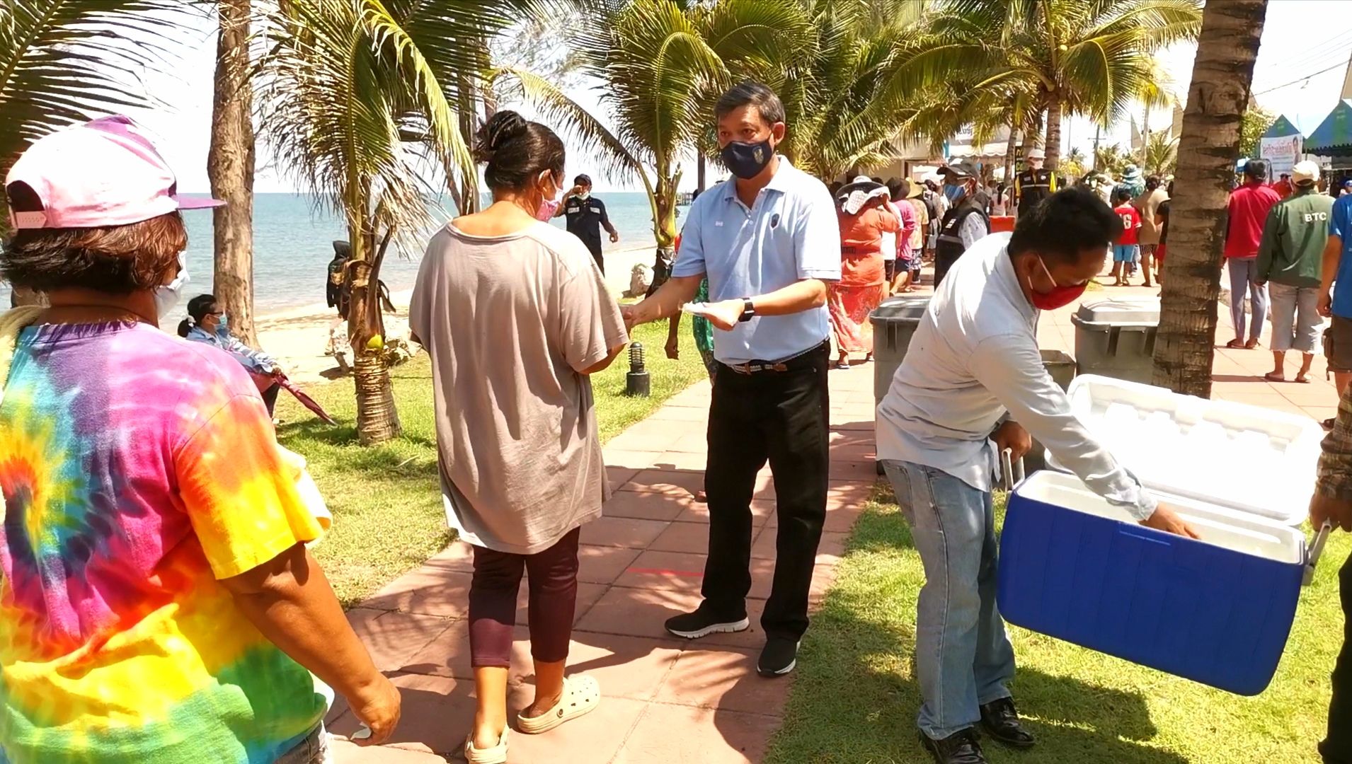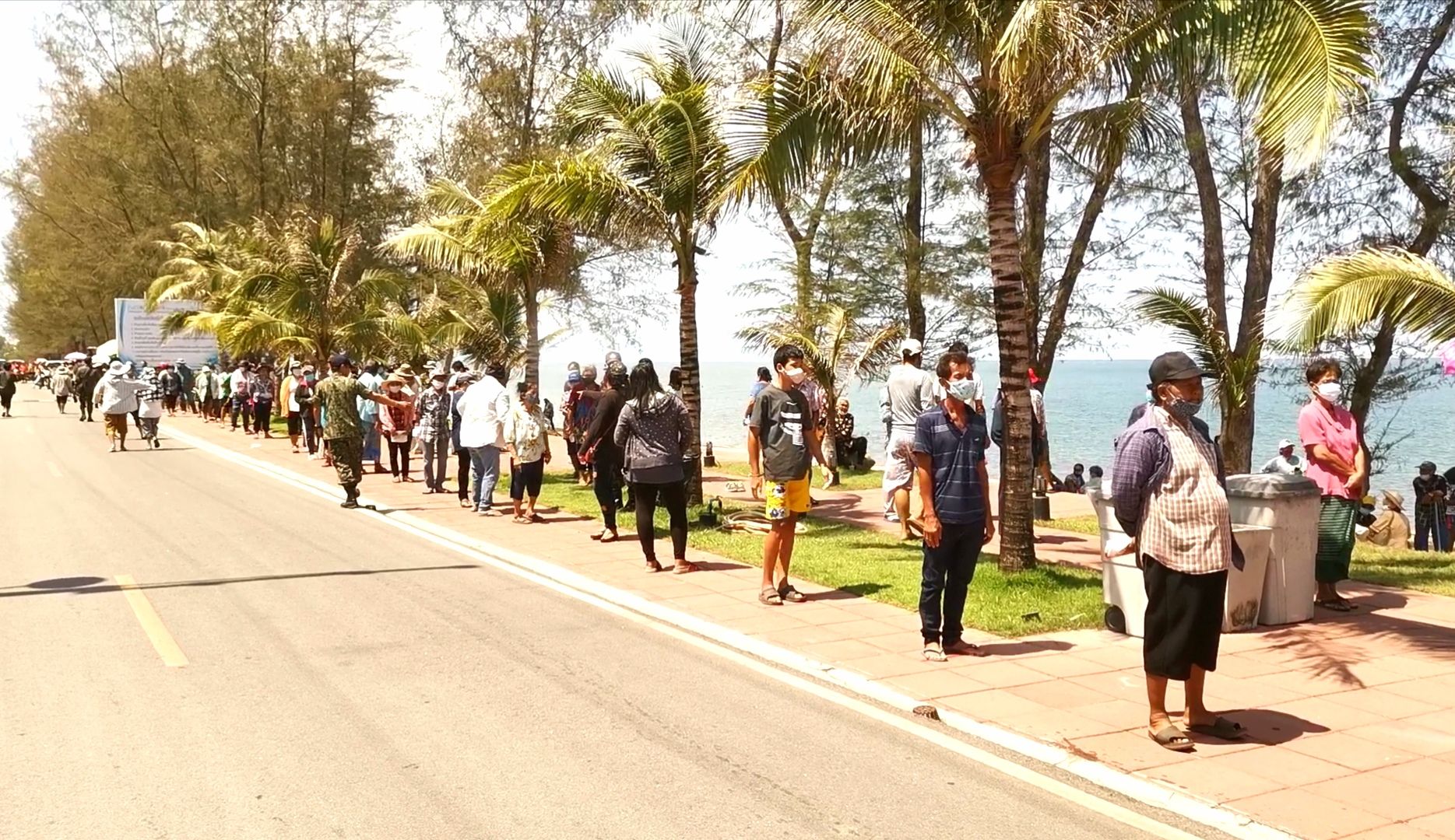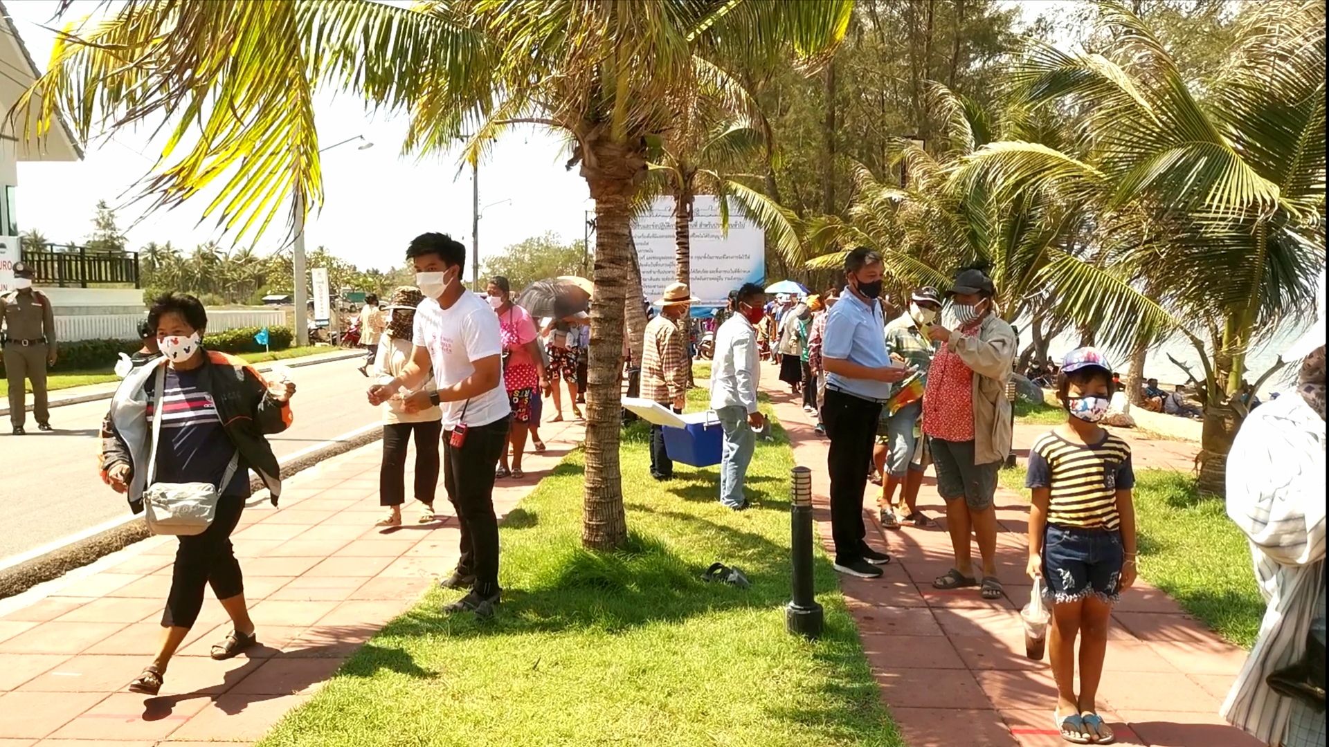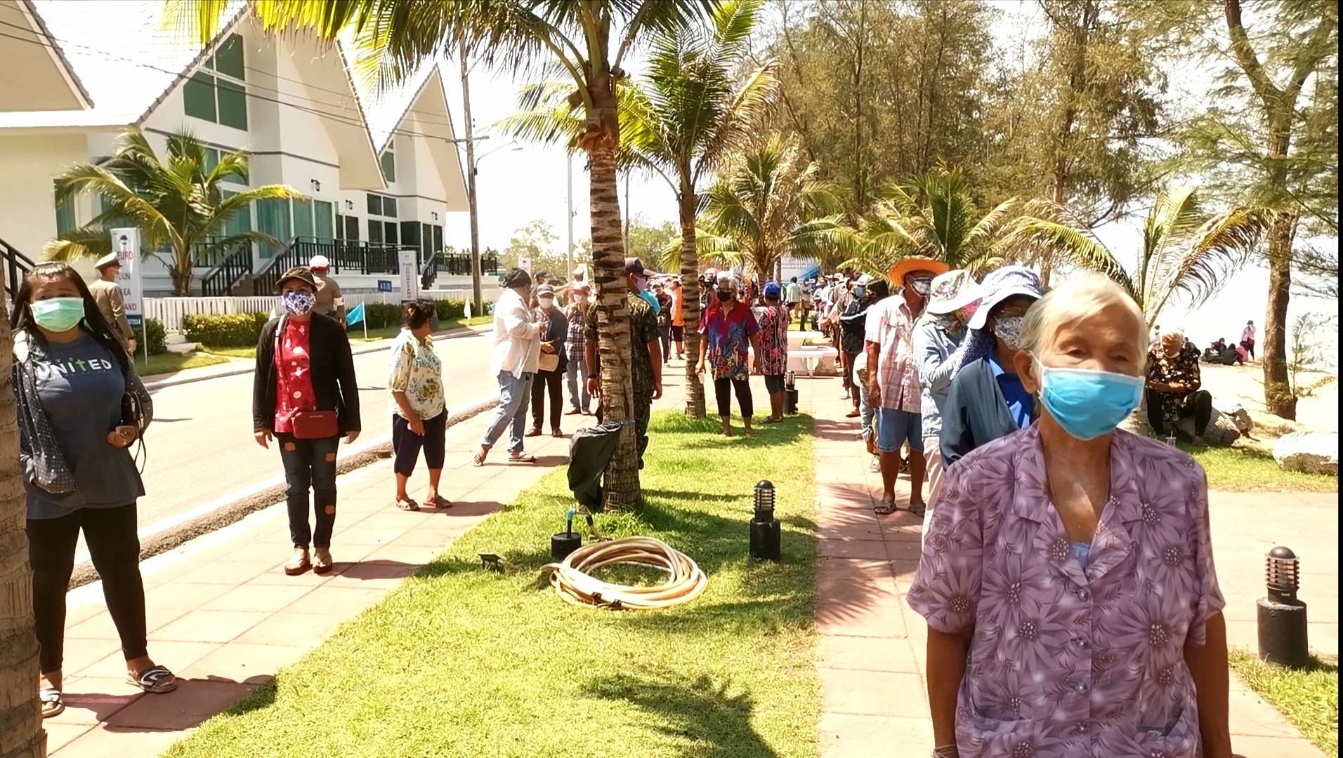 โดยมี พ.ต.อ.นพดล ธุวังควัฒน์ ผกก.สภ.ทับสะแก นายเชิดชาย สุธรรมารักษ์ สาธารณสุขอำเภอทับสะแก นำกำลังเจ้าหน้าที่ตำรวจ เจ้าหน้าที่ฝ่ายปกครอง สาธารณสุข อส. อสม. อาสามูลนิธิสว่างรุ่งเรืองธรรมสถาน อาสากู้ภัยทางหลวง มาจัดระเบียบระยะห่างตามที่กฎหมายกำหนด เพื่อเข้าตรวจบัตรคิว ในการเข้าสิ่งของอุปโภค บริโภค