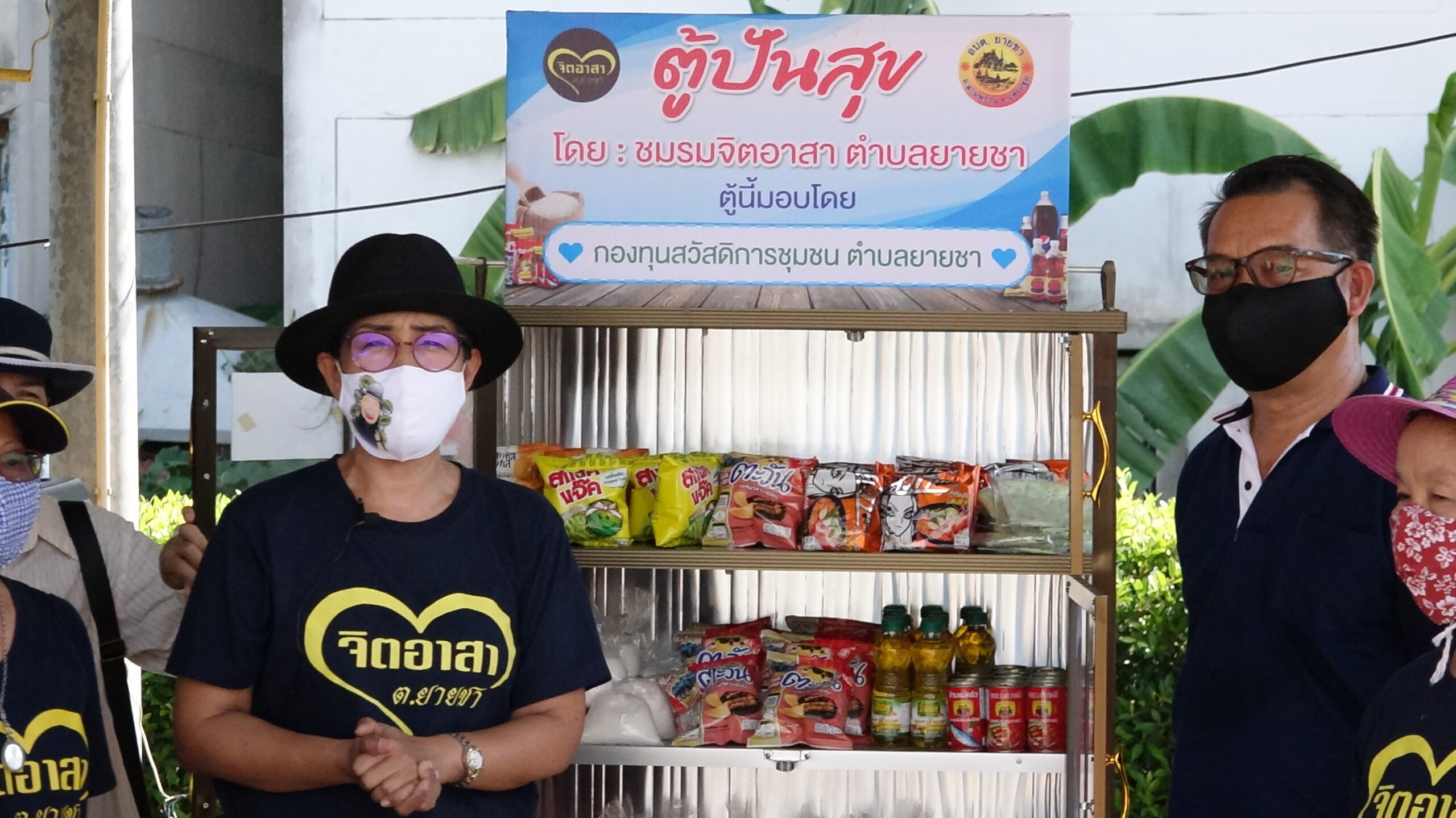 ชมรมจิตอาสาตำบลยายชานำโดยนางวาสนา กลิ่นพยอม ประธานชมรมจิตอาสาตำบลยายชา ร่วมกับอบต.ยายชา พร้อมทั้งสมาชิกและชาวชุมชน จัดตั้ง “ตู้ปันสุข” โดยชมรมจิตอาสาตำบลยายชา ซึ่งมีกลัยาณมิตร ผู้มีจิตศรัทธา ร่วมกันบริจาค “ตู้ปันสุข” ทั้งหมด6ตู้ 6หมู่บ้าน ตู้ที่1.ตั้งอยู่ที่หน้า สำนักงานอบต.ยายชา ซึ่งเป็นตู้ที่แบ่งปันที่ฝึกวินัยในการหยิบของ ได้คนละสองอย่าง เพื่อสร้างวินัยและจิตสำนึก ภายในตู้จะมี ข้าวสาร อาหารแห่ง น้ำดื่ม. ปลากระป๋อง น้ำมันพืช ไข่ไก่ น้ำตาลทราย เกลือ และขนมสำหรับเด็กๆ โดยมีผู้บริจาคร่วมมากับชมรมฯ ซึ่งตู้ที่เหลือ 2.ปากทางเข้าวัดสรรเพชร ต.ยายชา 3.หน้าร้านฉัตรชัยยางยนต์ ริมถนนเพชรเกษม เลยปากทางเข้าวัดไร่ขิง 4. จะอยู่ที่ถนนข้างคลองบางกระออม หมู่1 ต.ยายชา 5.ในหมู่บ้านสวนทิพย์ ถนนเพชรเกษม ต.ยายชา