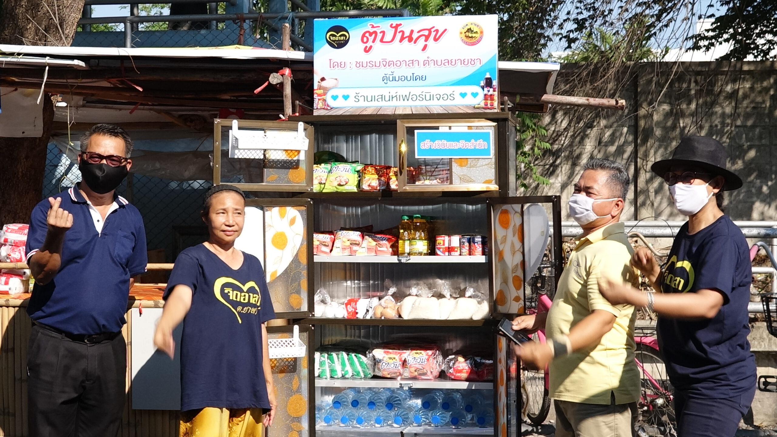 เพื่อให้ ประชาชนที่เดือดร้อนจากสถานการณ์ไวรัสโควิด-19 มาหยิบไปรับประทานเพื่อลดรายจ่าย. ซึ่งเป็นน้ำใจที่คนไทยมอบให้กันในสถานการณ์ภาวะโรคระบาด ด้วยการตั้งตู้ปันสุข ไว้เกือบทั่วทุกตำบล ทุกอำเภอและทุกจังหวัดของประเทศไทย แล้วในขณะนี้ และการตั้งตู้ปันสุขนี้ไม่มีแบบอย่างในโลก มีเพียงคนไทยเท่านั้นที่มีใจช่วยเหลือแบ่งปันจนชาวต่างชาติชื่นชมอีกด้วย