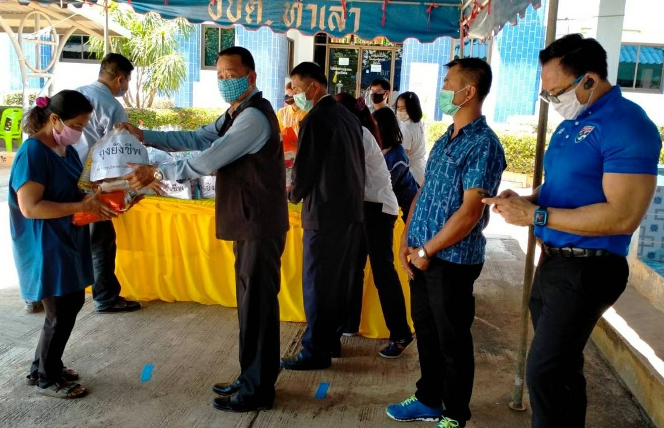 ที่บริเวณหน้าสำนักงานองค์การบริหาะรส่วนตำบลท่าเสา อ.ไทรโยค จ.กาญจนบุรี นายวิกิจ แก้วจิตคงทอง นายกองค์การบริหารส่วนตำบลท่าเสา อ.ไทรโยค จ.กาญจนบุรี จัดพิธีมอบถุงยังชีพให้กับชาวบ้านในเขตตำบลท่าเสาที่อยู่ในพื้นที่ขององค์การบริหารส่วนตำบลท่าเสา อ.ไทรโยค จ.กาญจนบุรี ที่ได้รับผลกระทบการแพร่ระบาดของเชื้อไวรัสโคโรนา2019 จนได้รับความเดือดร้อนในการดำรงชีวิตประจำวัน