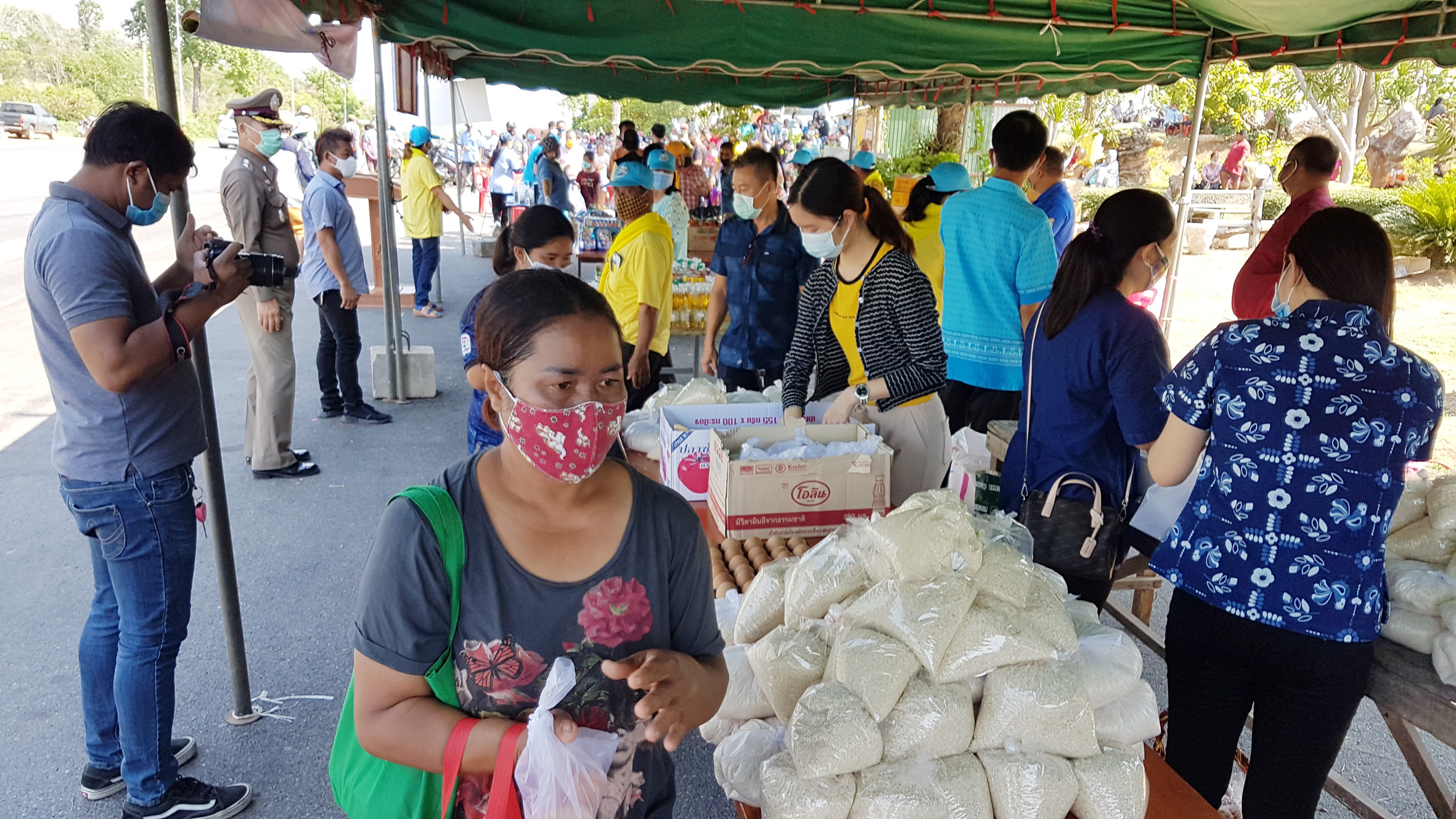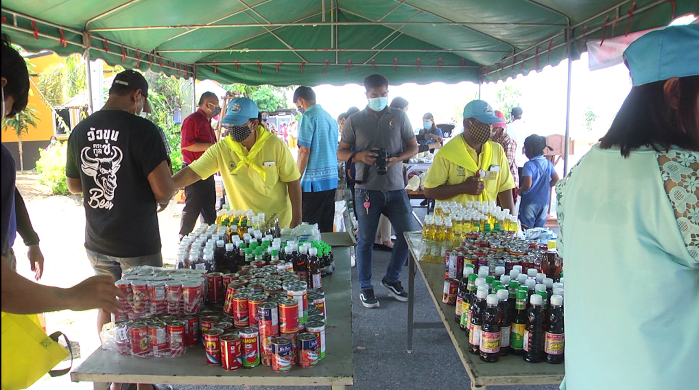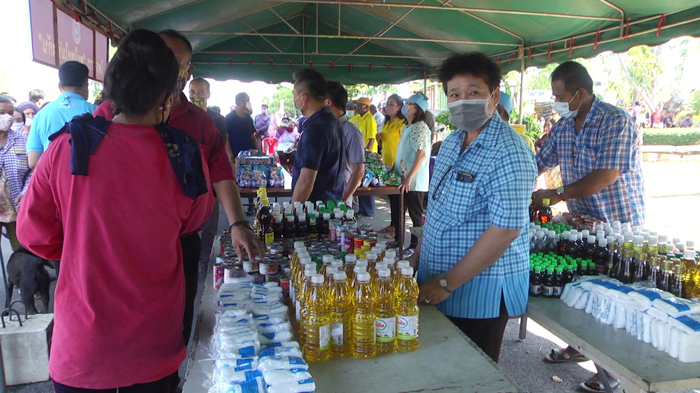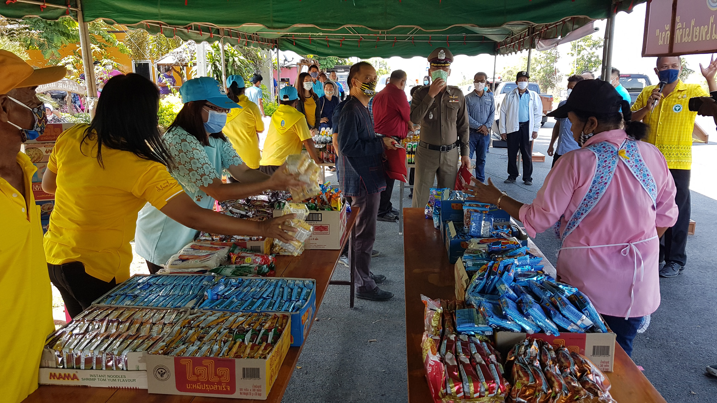 ส่วนการที่ใช้โต๊ะตั้งไว้ในเต๊นท์ไม่เหมือนที่อื่นๆนั้นก็เพราะว่าในพื้นที่มีคนจำนวนมากจึงไม่อยากให้มาอยู่ใกล้กันต้องการให้เว้นระยะห่างของคนเพื่อป้องกันการแพร่กระจายของเชื้อโควิด19 ส่วนสิ่งของที่นำมาไว้สำหรับให้ประชาชนนำกลับไปทานก็จะวางไว้บนโต๊ะให้เลือกแล้วแต่ว่าใครจะเลือกเอาอะไรเราไม่ได้จำกัดแต่ก็อยากให้แต่ละท่านได้รับความสุขเท่าๆกันบางท่านมีพืชผลทางการเกษตรเช่นผักผลไม้ต่างๆก็นำมาเติมได้