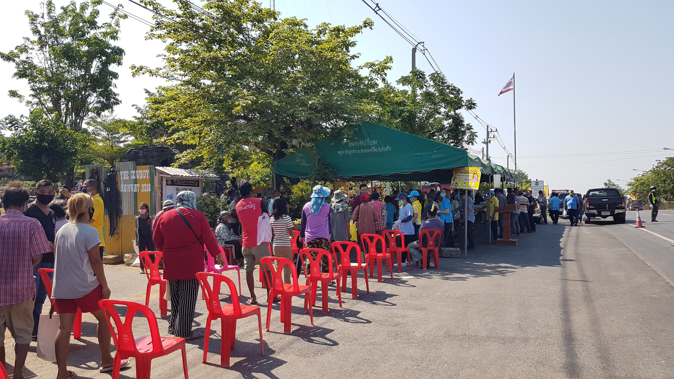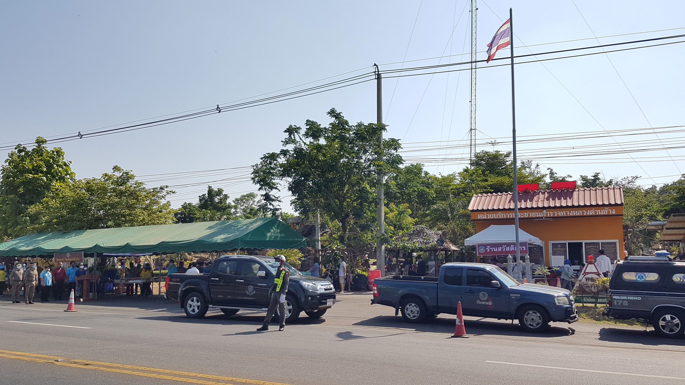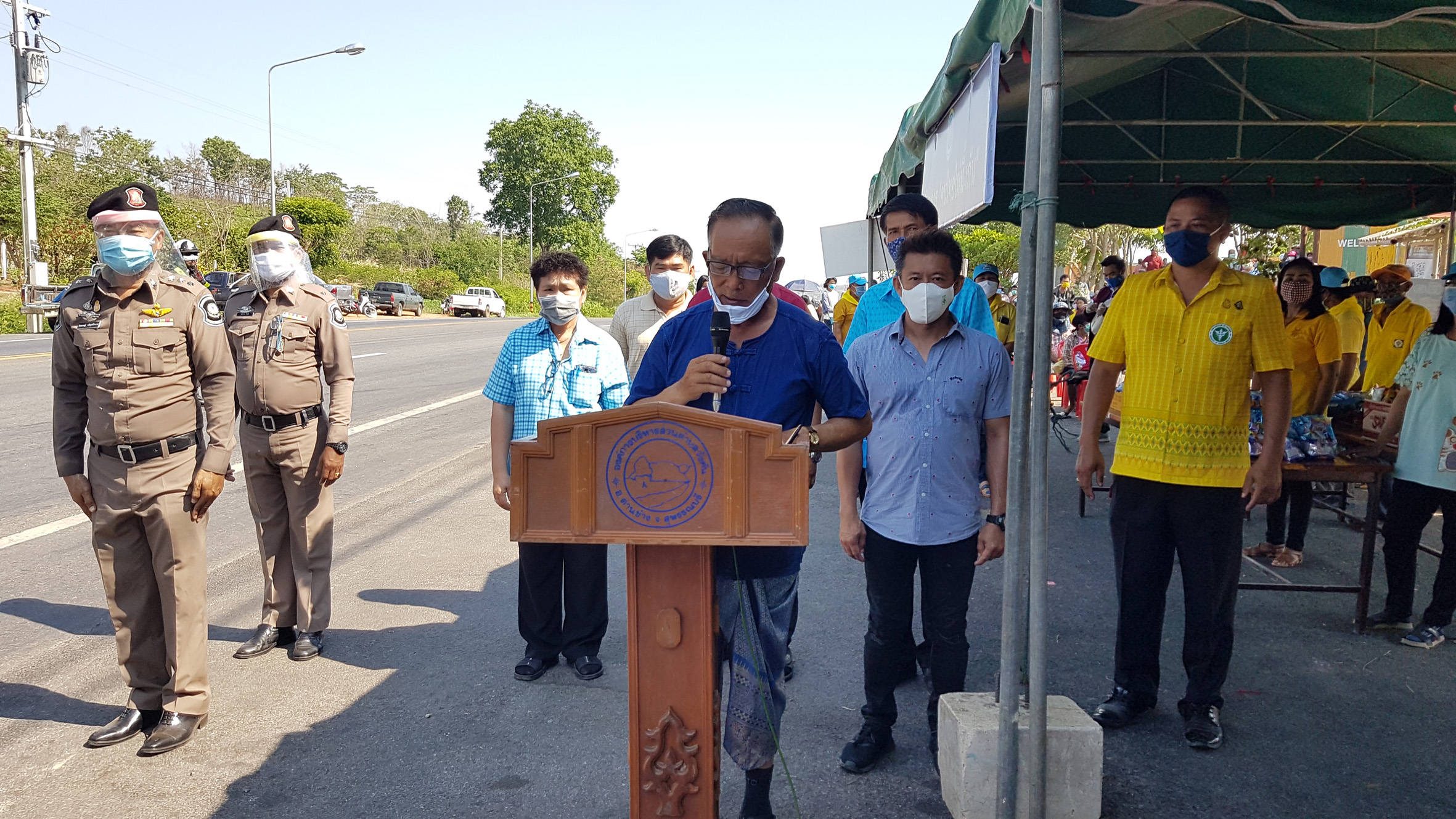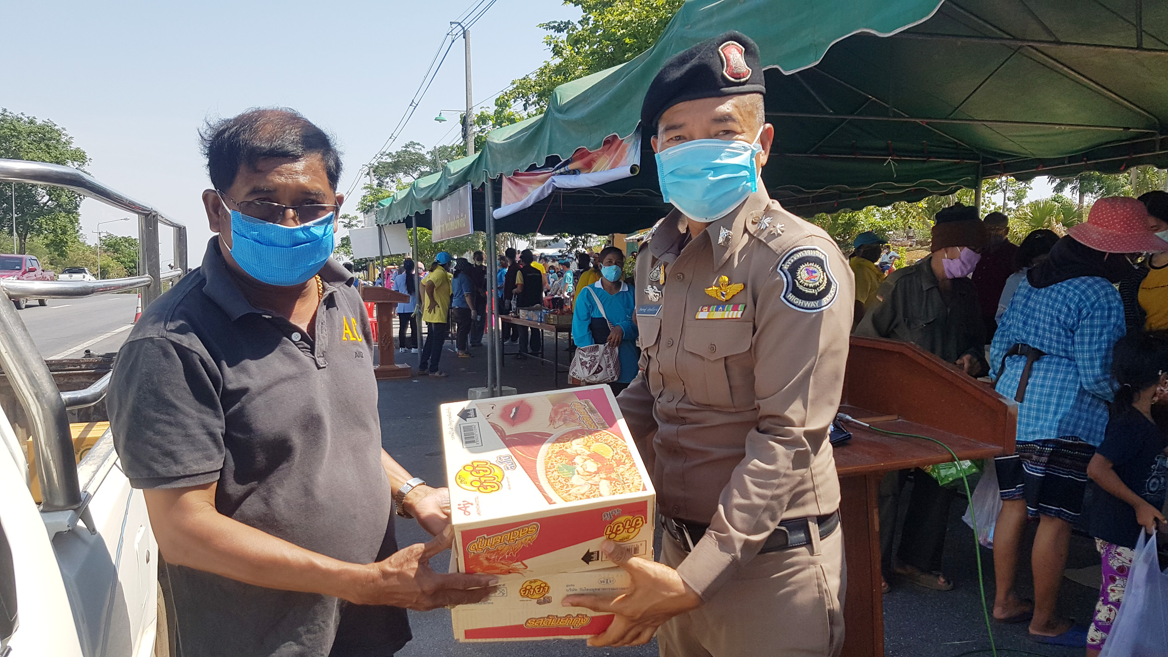 ดังนั้นตำรวจทางหลวงด่านช้างโดย พ.ต.ท.พิชยะพัศ อยู่เย็นศิริ สารวัตรสถานีตำรวจทางหลวง 6 กองกำกับการ2กองบังคับการตำรวจทางหลวง ตนร่วมกับนายอำนวย ลิ้มประเดิมธรรม นายก อบต.วังคัน นางกิมหลั่น อ่ำทอง นายก อบต.หนองมะค่าโมง และคณะกรรมการตำรวจทางหลวง คิดว่าประชาชนที่ได้รับผลกระทบจำนวนมากเราจะหาทางบรรเทาอย่างไรก็เลยจัดตั้งเป็นเต๊นท์อำนวยความสะดวกโดยร่วมกับพ่อค้าประชาชนจัดของมาร่วมบริจาคโดยเริ่มตั้งแต่วันนี้ไปจนกว่าพิษของไวรัสโควิด 19 จะลดลงเพื่อเป็นการช่วยบรรเทาเบาบางลง และเส้นทางสาย 333 นี้เป็นเส้นทางหลักมีประชาชนแวะมาใช้บริการกันจำนวนมากซึ่งที่นี่เรามีที่พักประชาชนที่ขับรถแล้วง่วงนอน ห้องน้ำ ส่วนหย่อมไว้สำหรับพักผ่อนอิริยาบถไว้คอยบริการประกอบกับมีรถบรรทุกมาจอดนอนยามค่ำคืนโดยเฉพาะรถบรรทุกที่ได้รับผลกระทบเนื่องจากนายจ้างมีรายได้ลดลงทำให้ผู้ประการงดจ้างแต่รายจ่ายของคนขับรถบรรทุกก็ยังเยอะอยู่ ดังนั้นเราคิดว่าเส้นทางนี้น่าจะพอช่วยเขาได้จึงนำสิ่งของมาวางไว้ให้โยเริ่มตั้งแต่ 08.00-18.00 น.ของทุกวันไม่ต้องกลัวของหมดเนื่องจากมีผู้มีน้ำใจ จะนำสิ่งของมาเติมให้ตลอด