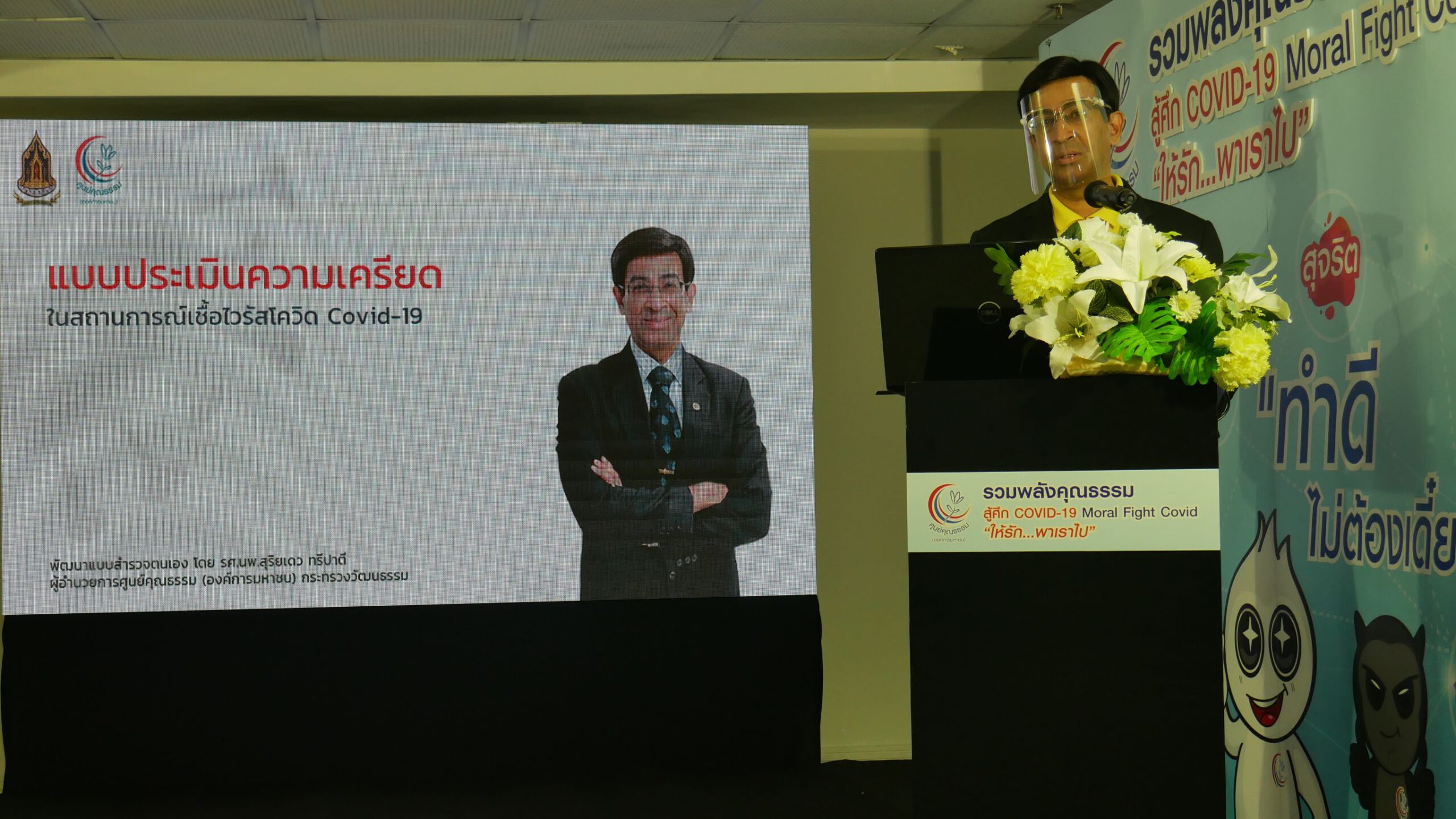 จัดแถลงข่าวโครงการ รวมพลังคุณธรรม สู้ศึก Covid – 19 Moral Fight Covid “ ให้รัก…พาเราไป” โดย รองศาสตราจารย์ นายแพทย์สุริยเดว ทรีปาตี ผู้อำนวยการศูนย์คุณธรรม(องค์การมหาชน)กระทรวงวัฒนธรรม