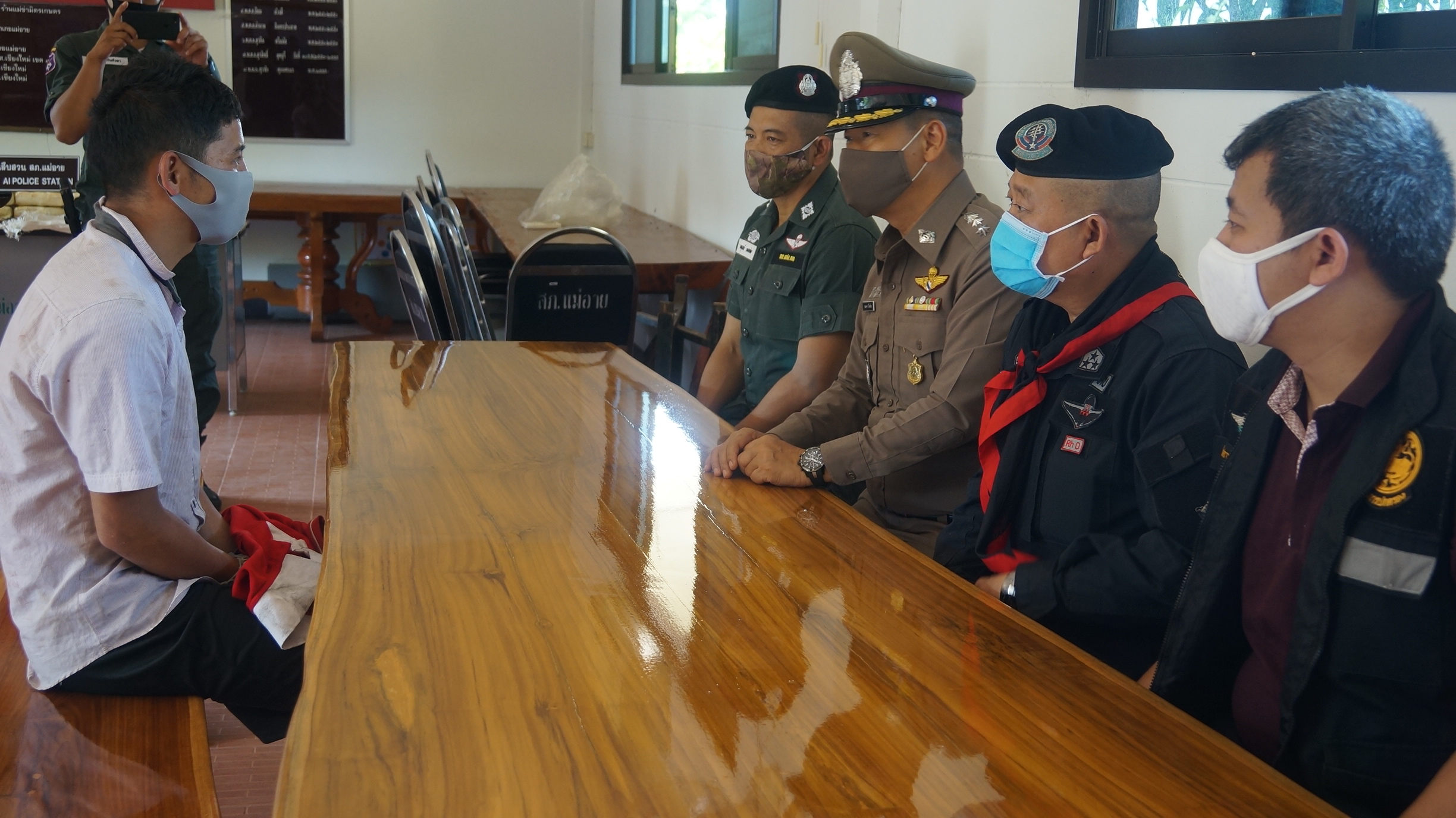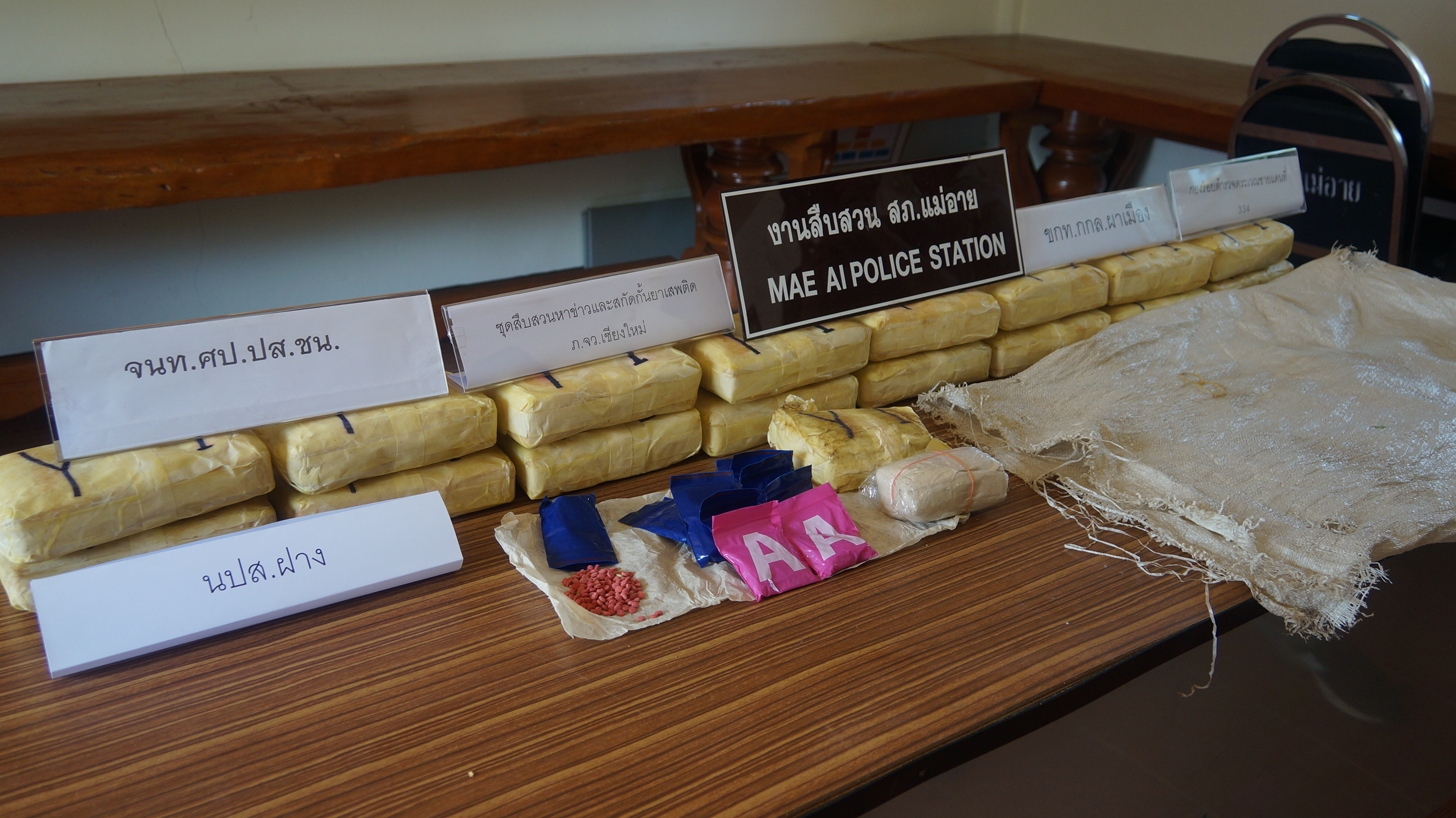 ร่วมแถลงข่าว ที่สถานีตำรวจภูธรแม่อาย จังหวัดเชียงใหม่ ในการร่วมกันจับกุมผู้กระทำผิด ขนย้ายยาบ้าเพื่อจะนำมาแลกรถยนต์ จำนวน 1,000,000 เม็ด ภายใต้การอำนวยการของ พล.ต.ท.ประจวบ วงศ์สุข ผบช.ภ.5, พล.ต.ต.พิเชษฐ์ จีระนันตสิน ผบก.ภ.จว.เชียงใหม่ และ พ.ต.อ.ทรงกริช ออนตะไคร้ รอง ผบก.ภ.จว.เชียงใหม่,พ.ต.อ.ชลเทพ ใหม่ไชย ผกก.สภ.แม่อายฯ, นายสิทธิศักดิ์ อภิกุลชัยสุทธิ์ นายอำเภอแม่อาย , พ.อ.เอกวุฒิ สุขรส ผบ.บก.ควบคุม ทพ.ศปก.ทภ.3 , พ.ท.ศักรินทร์ ตาแก้ว ผบ.ขกท.กกล.ผาเมือง พ.ต.อ.วชิรศักดิ์ ศรีประสม ผกก.สส.3 บก.สส.ภ.5, พ.ต.ท.เกียรติศักดิ์ จิตรประสาร,รอง ผกก.สส.3ฯ พ.ต.ท.ธวัชวงศ์ ชูกิจคุณ รอง ผกก.สส.3ฯ โดยเจ้าพนักงานตำรวจชุดสืบสวนหาข่าวและสกัดกั้นยาเสพติดตำรวจภูธรจังหวัดเชียงใหม่ เจ้าพนักงานตำรวจ ตชด.334 ประกอบด้วย ร.ต.อ.วิวัฒน์ชัย จันทบูรณ์ รอง ผบ.ร้อย พร้อมชุดเจ้าพนักงานตำรวจ สภ.แม่อาย ฯ ประกอบด้วย พ.ต.ท.นันทศักดิ์ กาศเกษม รอง ผกก.สส สภ.แม่อายฯ , พ.ต.ท.กฤตนัน เวียงคำ สว.สสฯ , ร.ต.อ.ประพันธ์ โถงาม,พร้อมชุดขกท.กกล.ผาเมือง ประกอบด้วย ร.อ.อนุพงษ์ เกศราแก้ว, ร.อ.ทองอินทร์ จันครา รอ.เจริญศักดิ์ บุตรวงศ์ หัวหน้าฝ่ายยุทธการบก.ควบคุม ทพ.ศปก.ทภ.3 , ร.ต.สุวิทย์ นุชพงษ์, พร้อมชุด ร่วมกันจับกุมตัวผู้ต้องหา