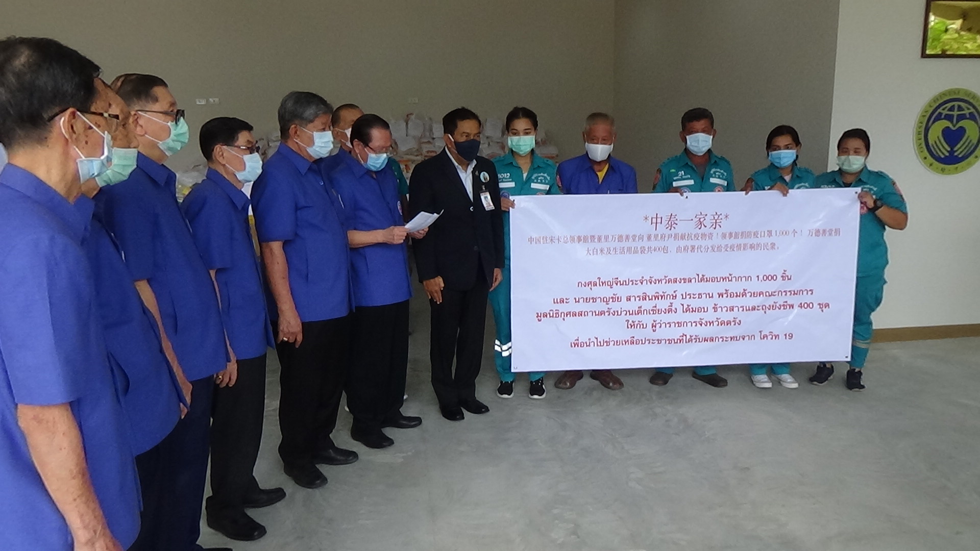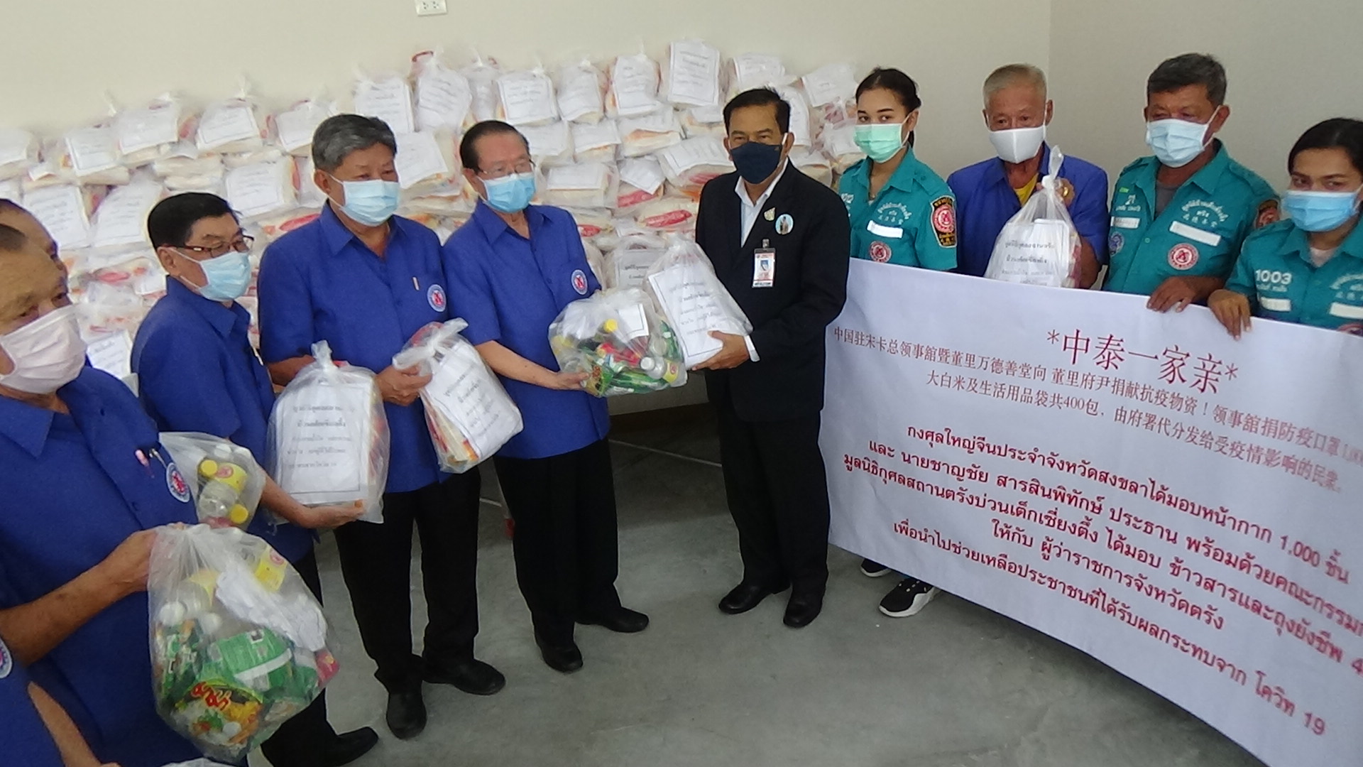 กงสุลใหญ่แห่งสาธารณรัฐประชาชนจีนประจำจังหวัดสงขลา ส่งหน้ากากอนามัย ข้าวสารและถุงยังชีพ เพื่อนำไปช่วยเหลือผู้ประสบความเดือดร้อนจากสถานการณ์โควิด 19 จังหวัดตรังไม่มีโควิด มา 39 วันแล้ว