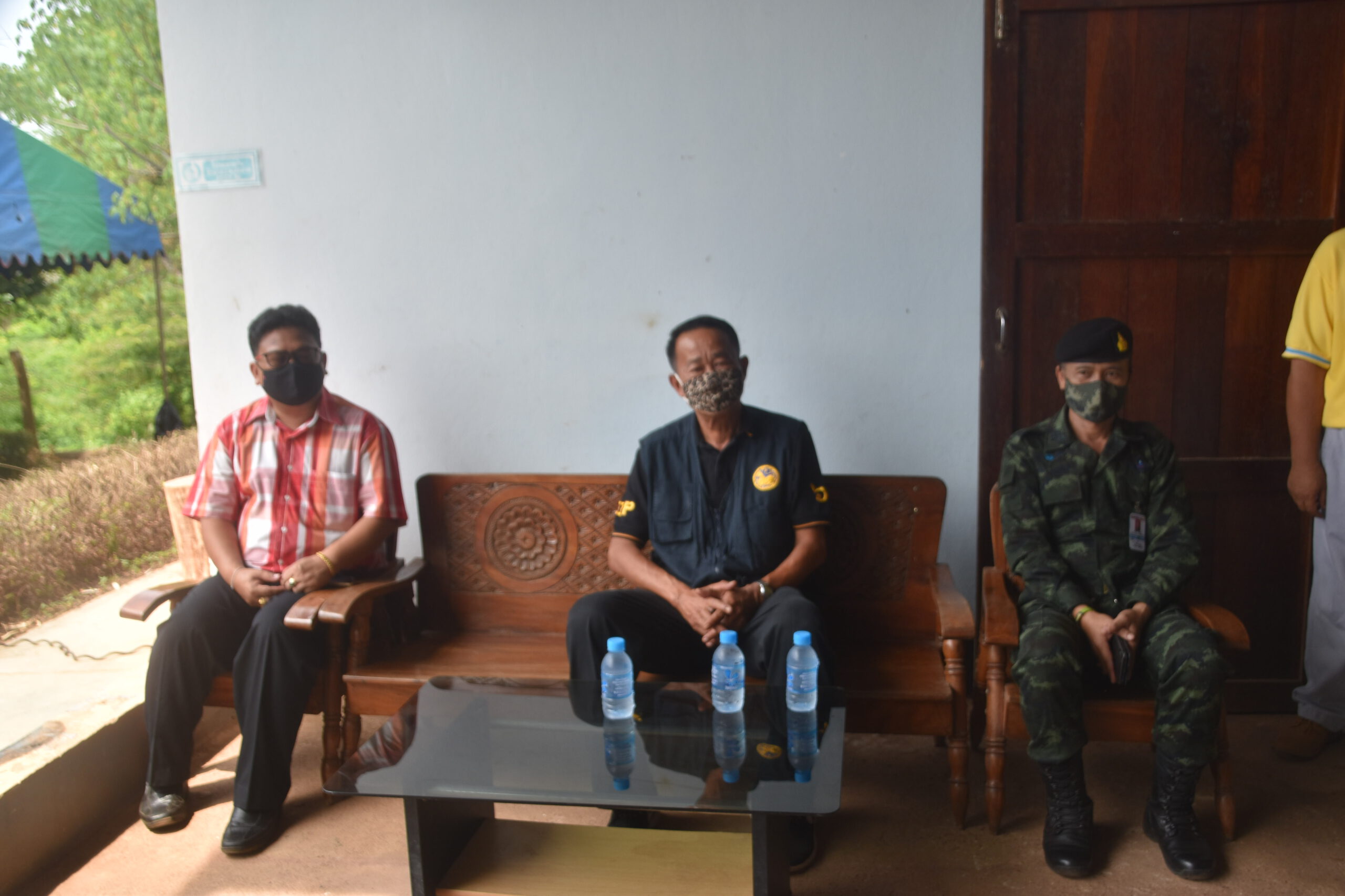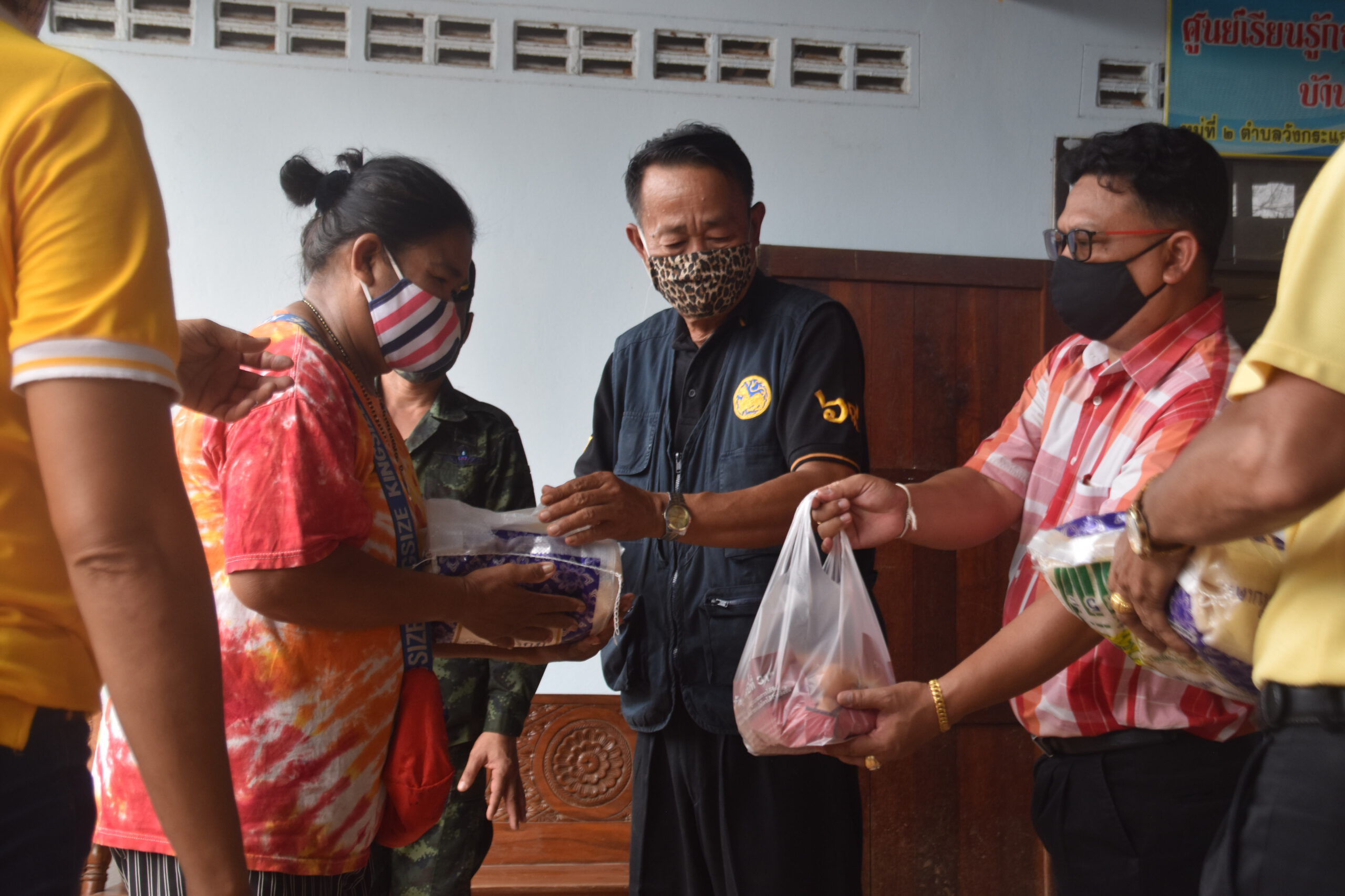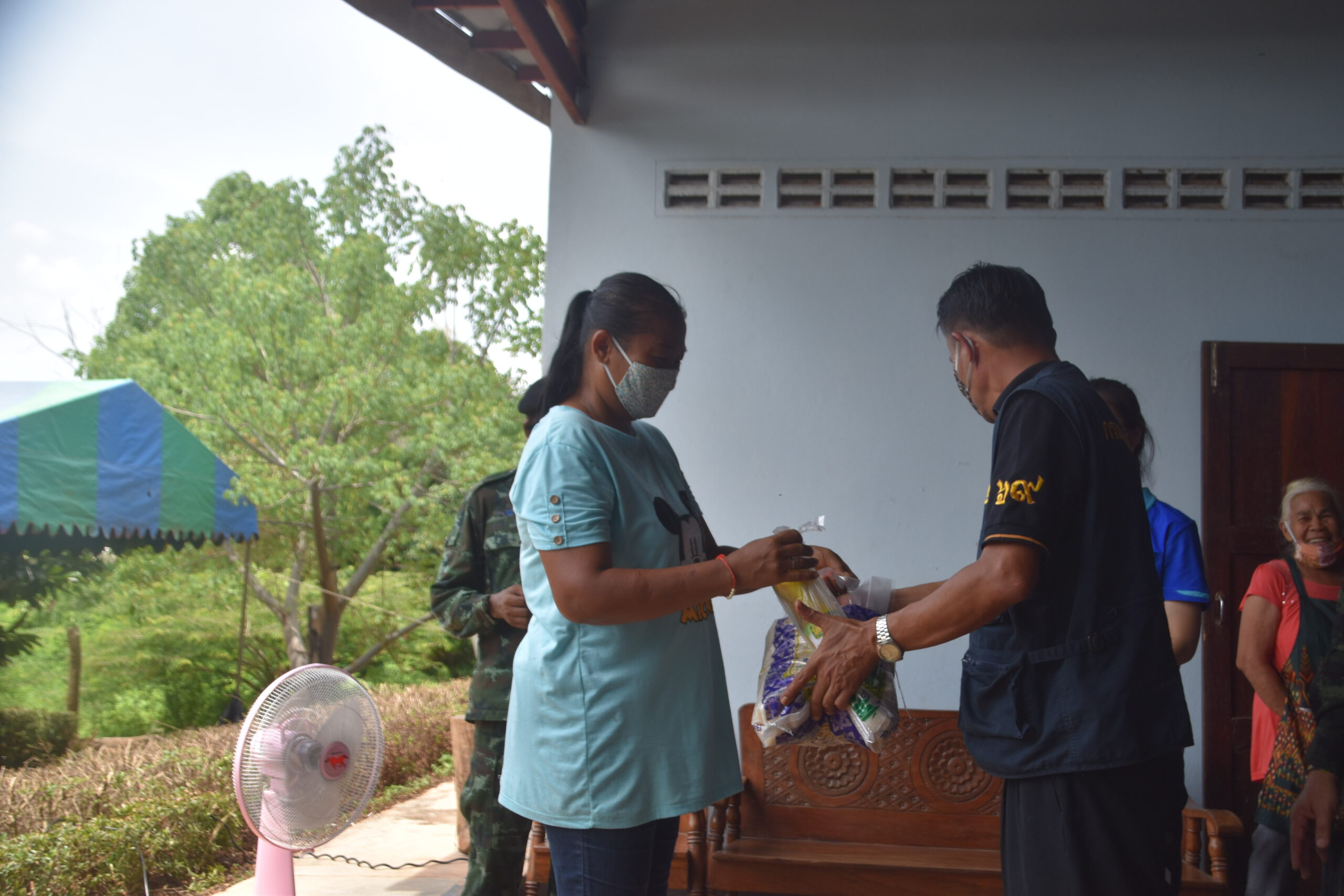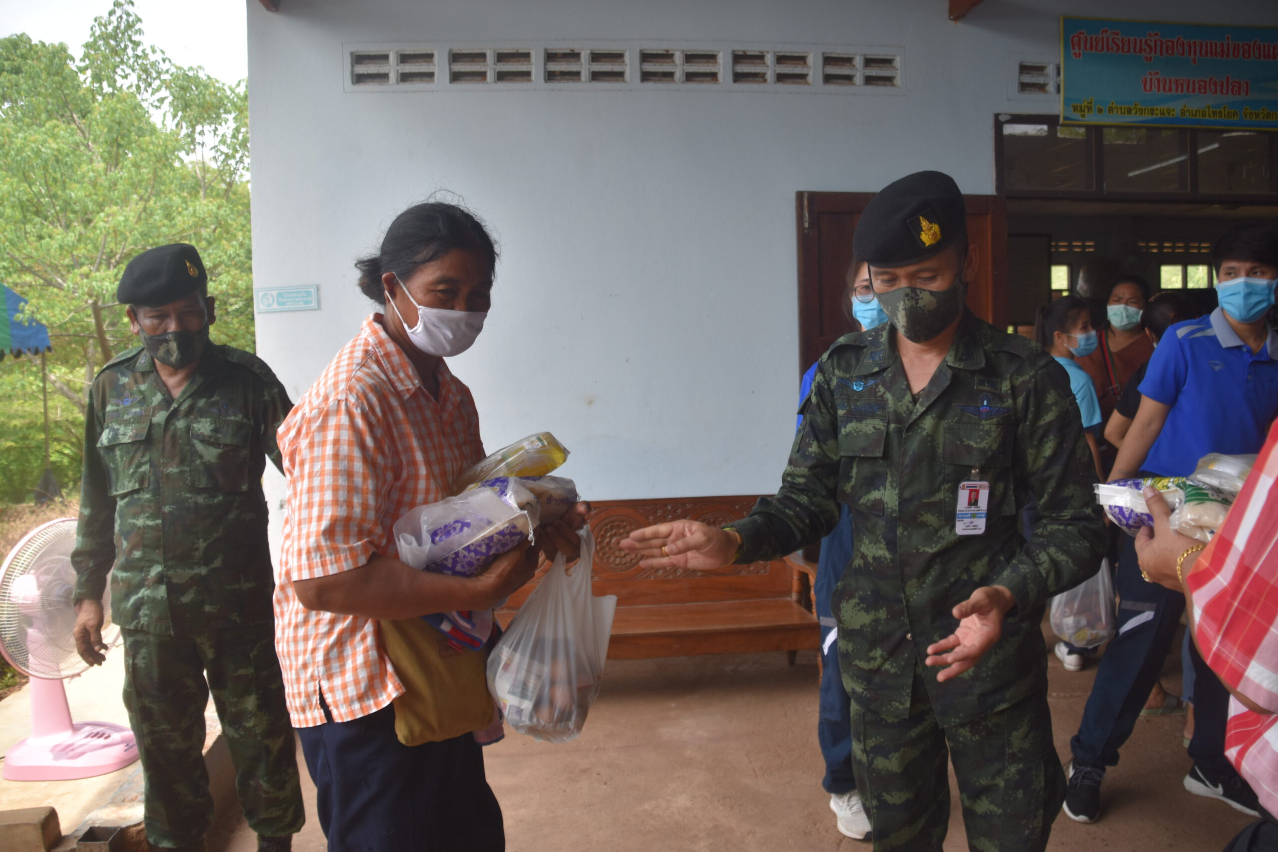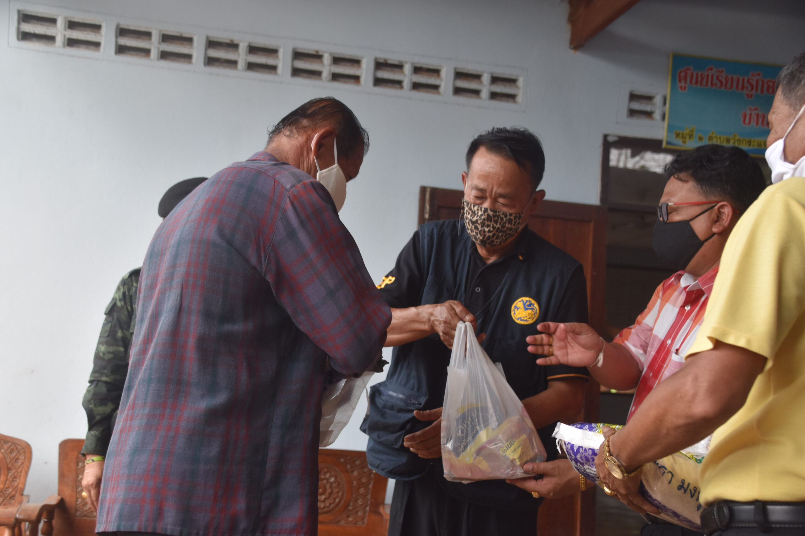 กาญจนบุรี นายอำเภอไทรโยค ร่วมกับคณะกรรมการน้ำปะปาหมู่บ้าน ร่วมแจกถุงยังชีพ ผู้ประสบภัยโควิด 19