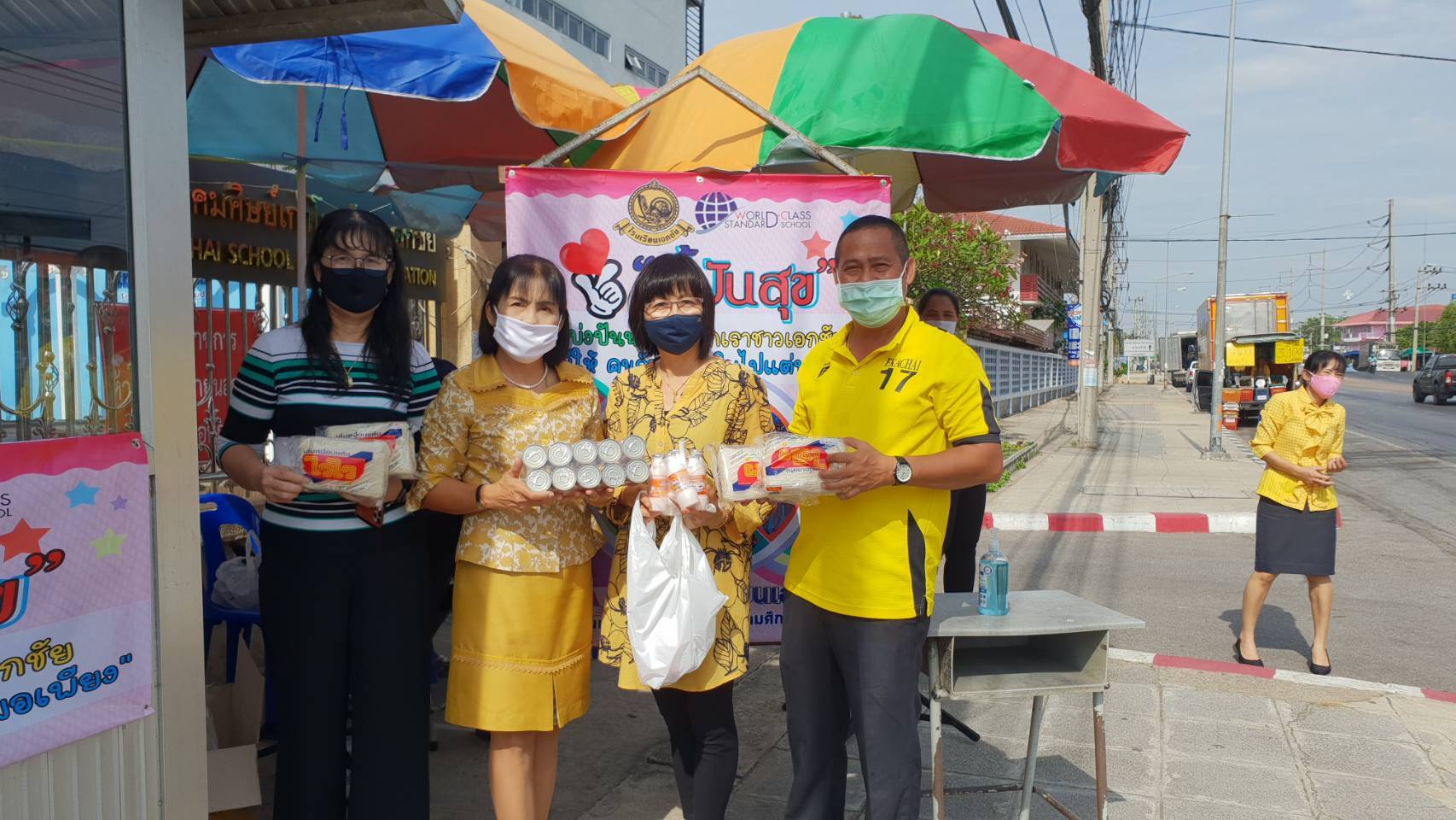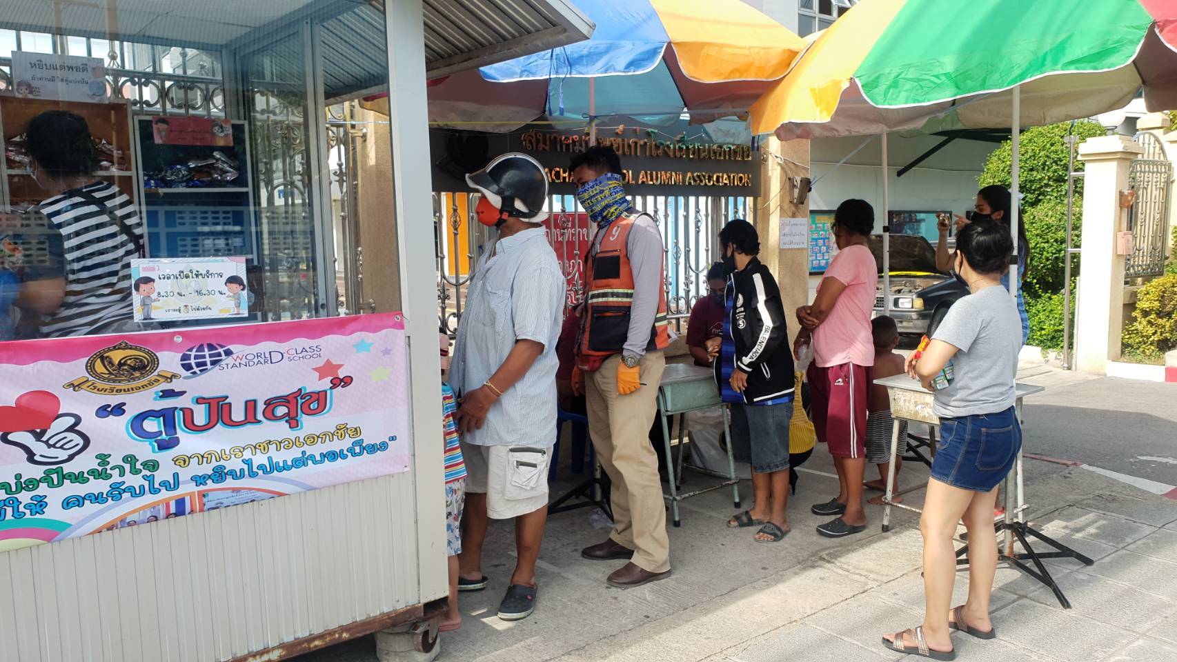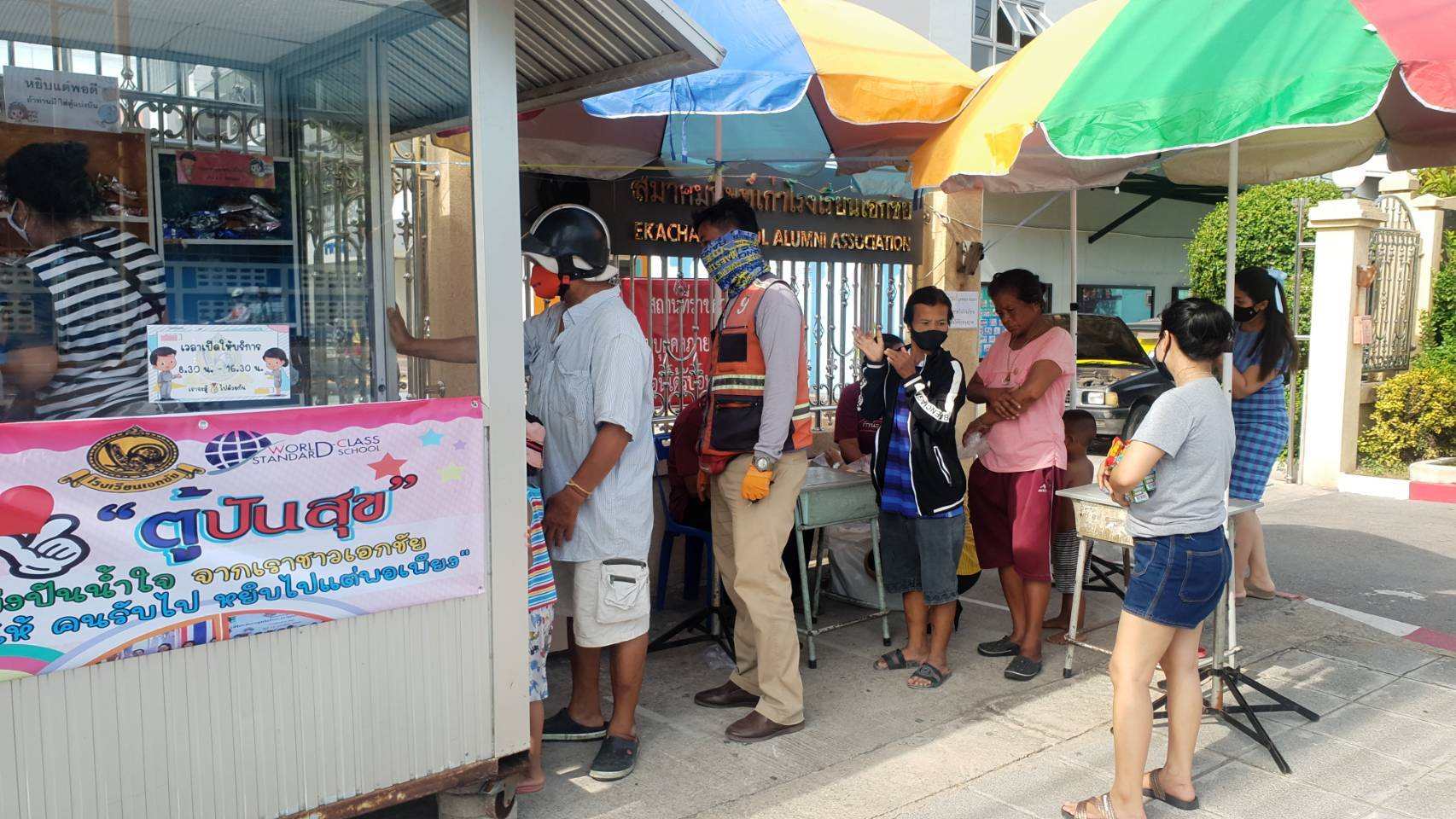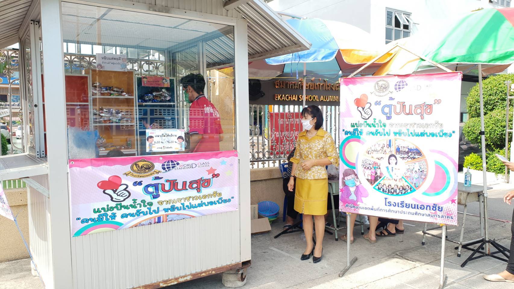 คณะครูนักเรียนโรงเรียนเอกชัยตั้งตู้ปันสุขเพื่อแบ่งปันน้ำใจให้ประชาชนที่ได้รับผลกระทบจากการแพร่ระบาดของโรคติดเชื้อไวรัส โควิด-19