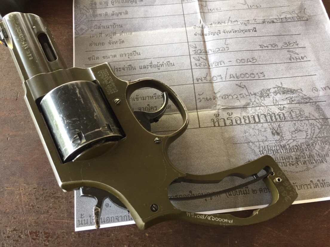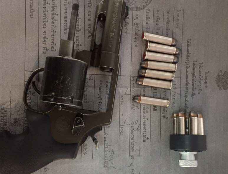 จับกุม บริเวณด่านตรวจบ้านแก่งปันเต๊า (ในเขตเทศบาล ต.แม่นะ)ม.10 ต.แม่นะ อ.เชียงดาว จ.เชียงใหม่ ต่อเนื่องโรงพยาบาลเชียงดาว อ.เชียงดาว จ.เชียงใหม่ ได้เรียกตรวจรถจักรยานยนต์ ขับขี่ผ่ามาจากอำเภอเชียงดาวมุ่งหน้าไปทางอำเภอแม่แตง พบผู้ต้องหาเป็นคนขับขี่รถจักรยานยนต์ถคันดังกล่าวมีอาการมีพิรุธ ผลตรวจค้นพบ อาวุธปืนพกสั้นแบบลูกโม่ ขนาด .357 นิ้ว ยี่ห้อ สมิทฯสีดำ โดยมีลูกกระสุนปืนบรรจุอยู่ในลูกโม่จำนวน 7 นัด และบรรจุอยู่ในอุปกรณ์ช่วยบรรจุกระสุน(สปีดโหลดเดอร์)อีกจำนวน 7 นัด ทั้งหมดอยู่ในกระเป๋าสีดำแดงที่ผู้ต้องหาเก็บไว้ในกล่องที่เก็บของท้ายรถจักรยานยนต์ที่ผู้ต้องหาขับขี่มาและรับว่าก่อนหน้านี้ตนได้เสพกัญชามาจำนวนหนึ่ง จึงนำตัวส่ง พงส.ฯ สภ.เชียงดาว เพื่อดำเนินการต่อไป