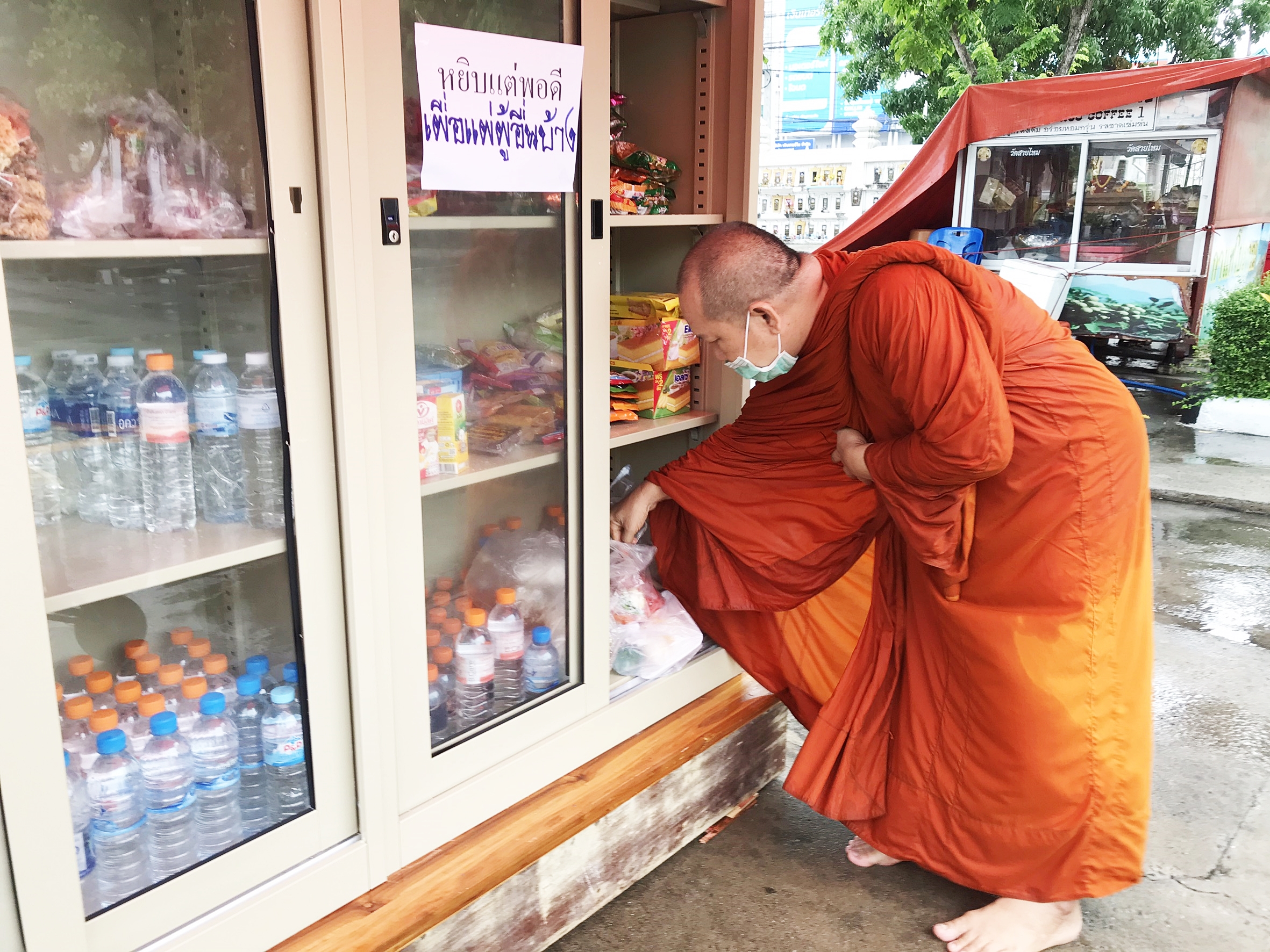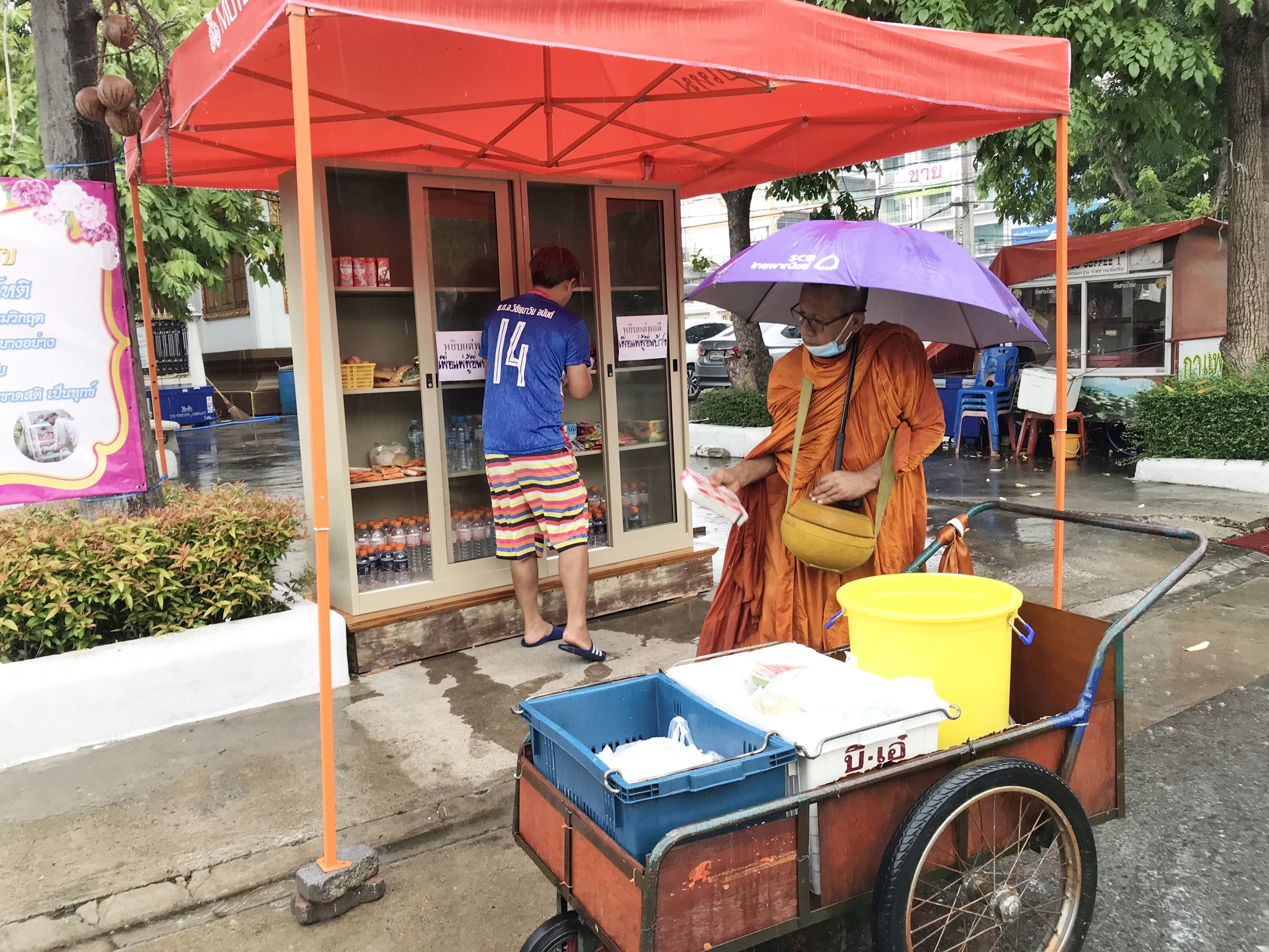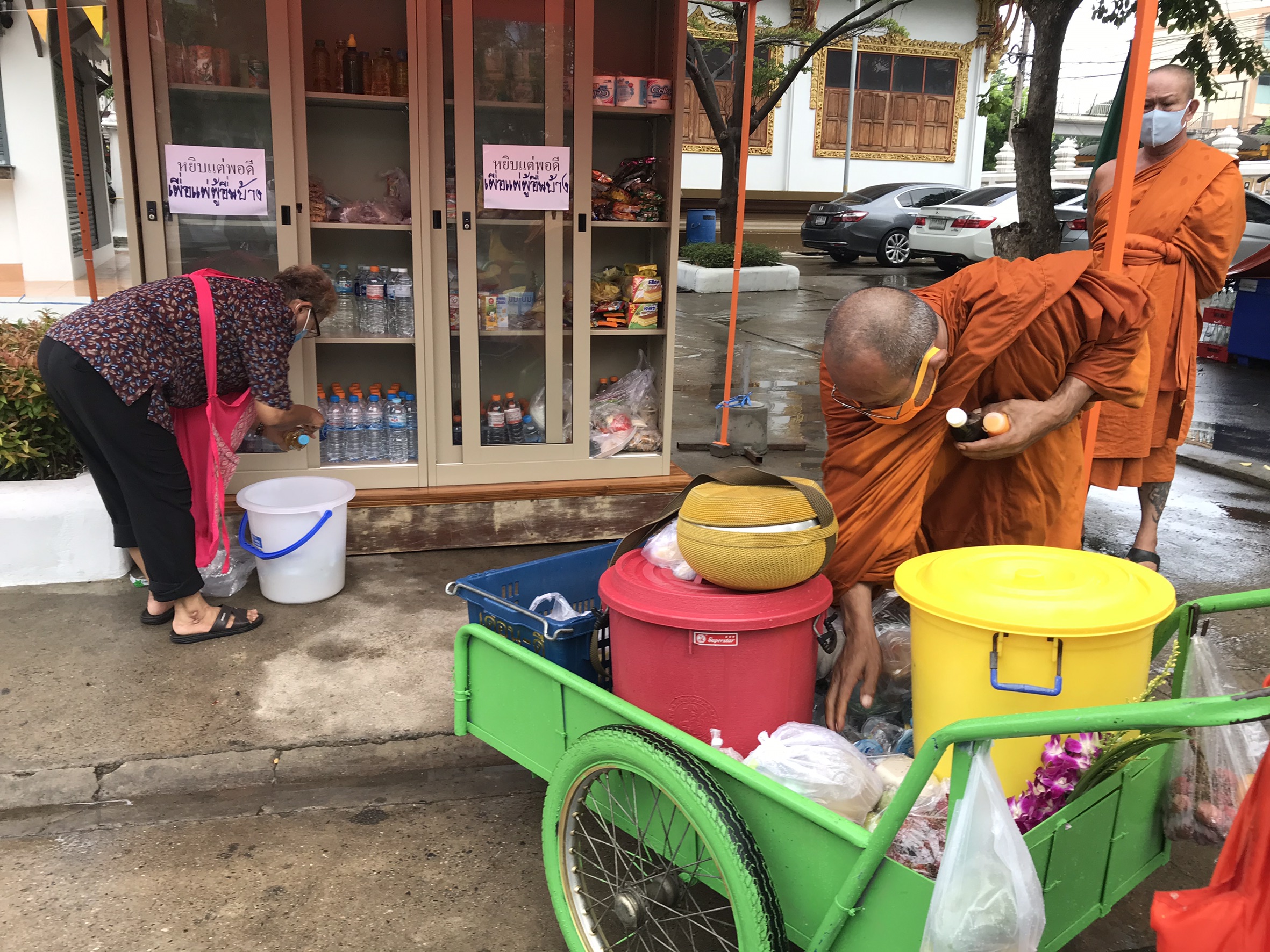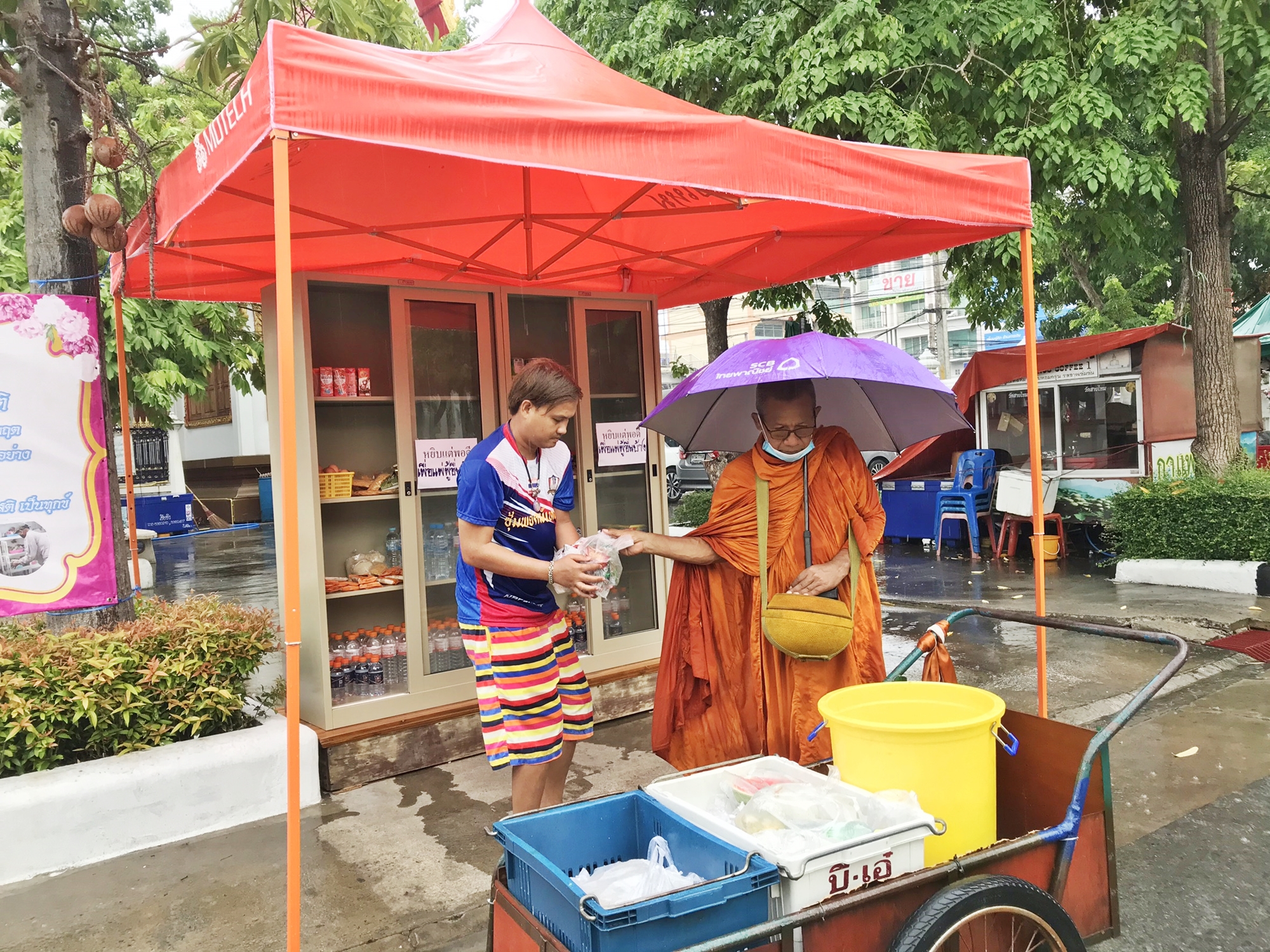 ปทุมธานี พระวัดสายไหม นำของจากบิณฑบาตร่วมใส่ตู้ปันสุขแบ่งบันให้ผู้เดือดร้อน