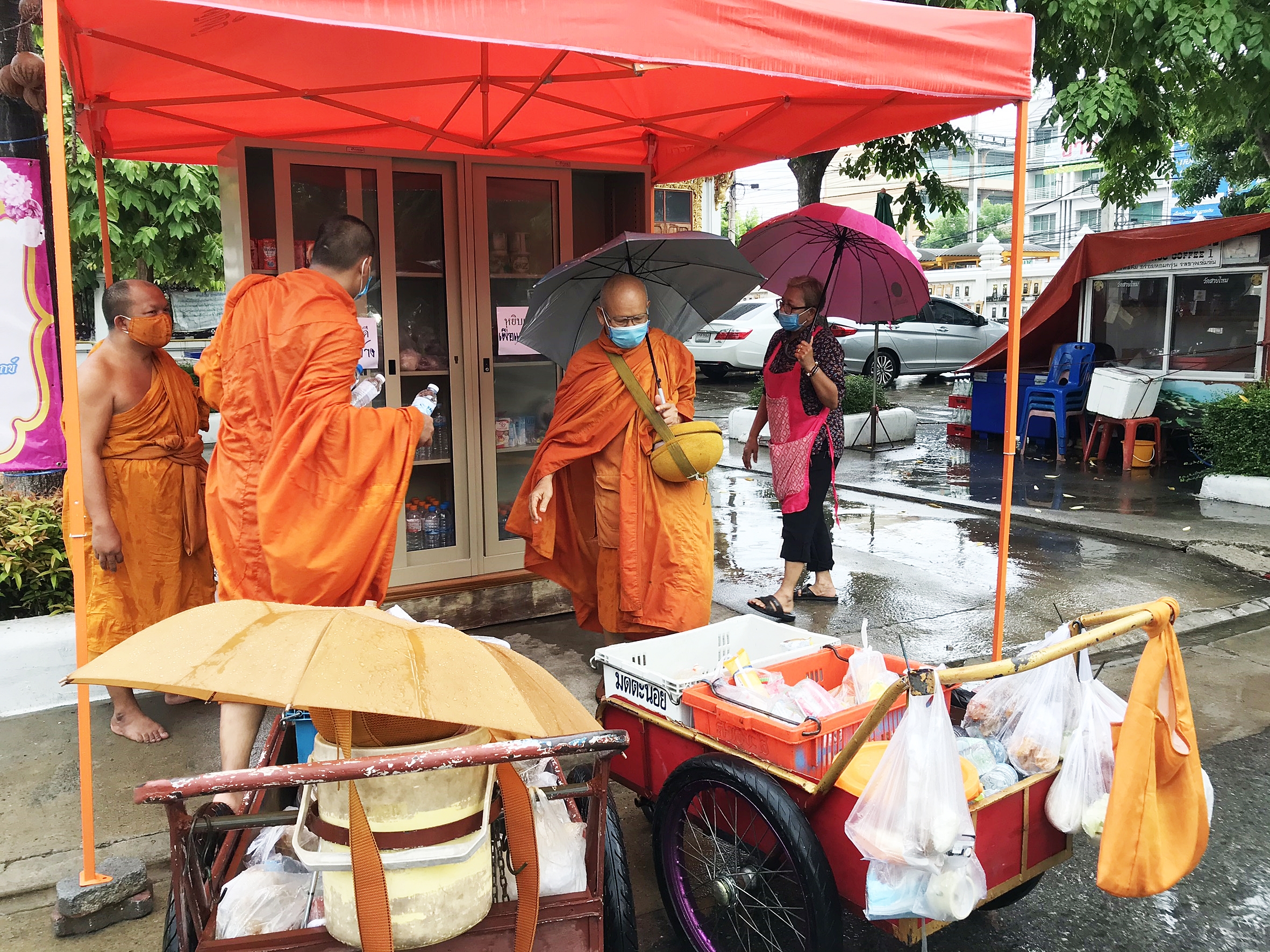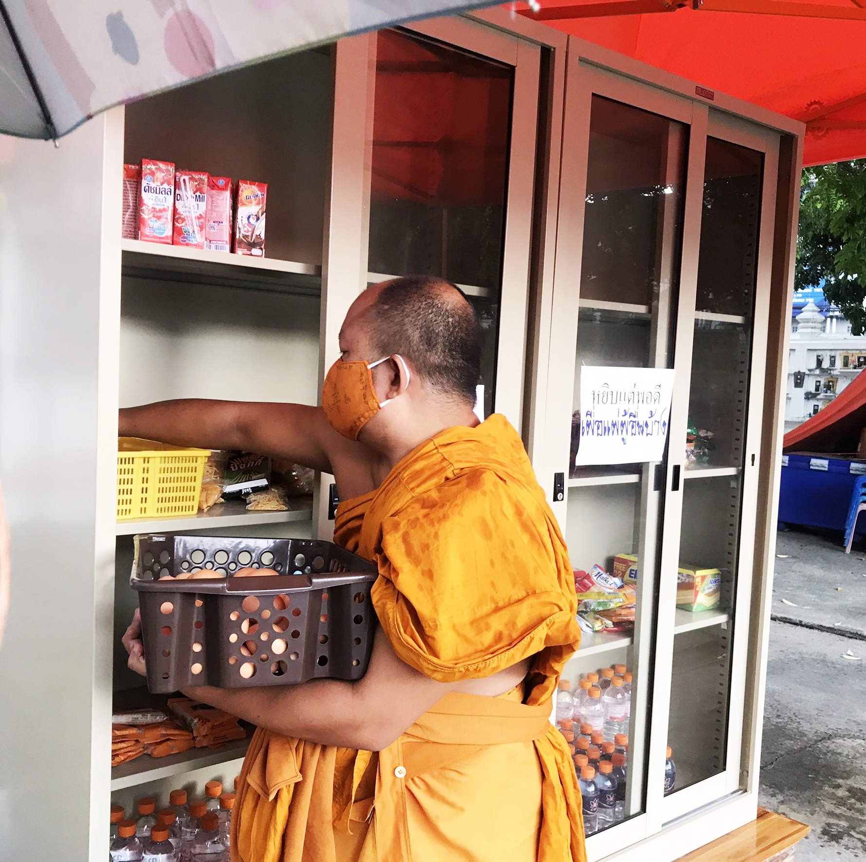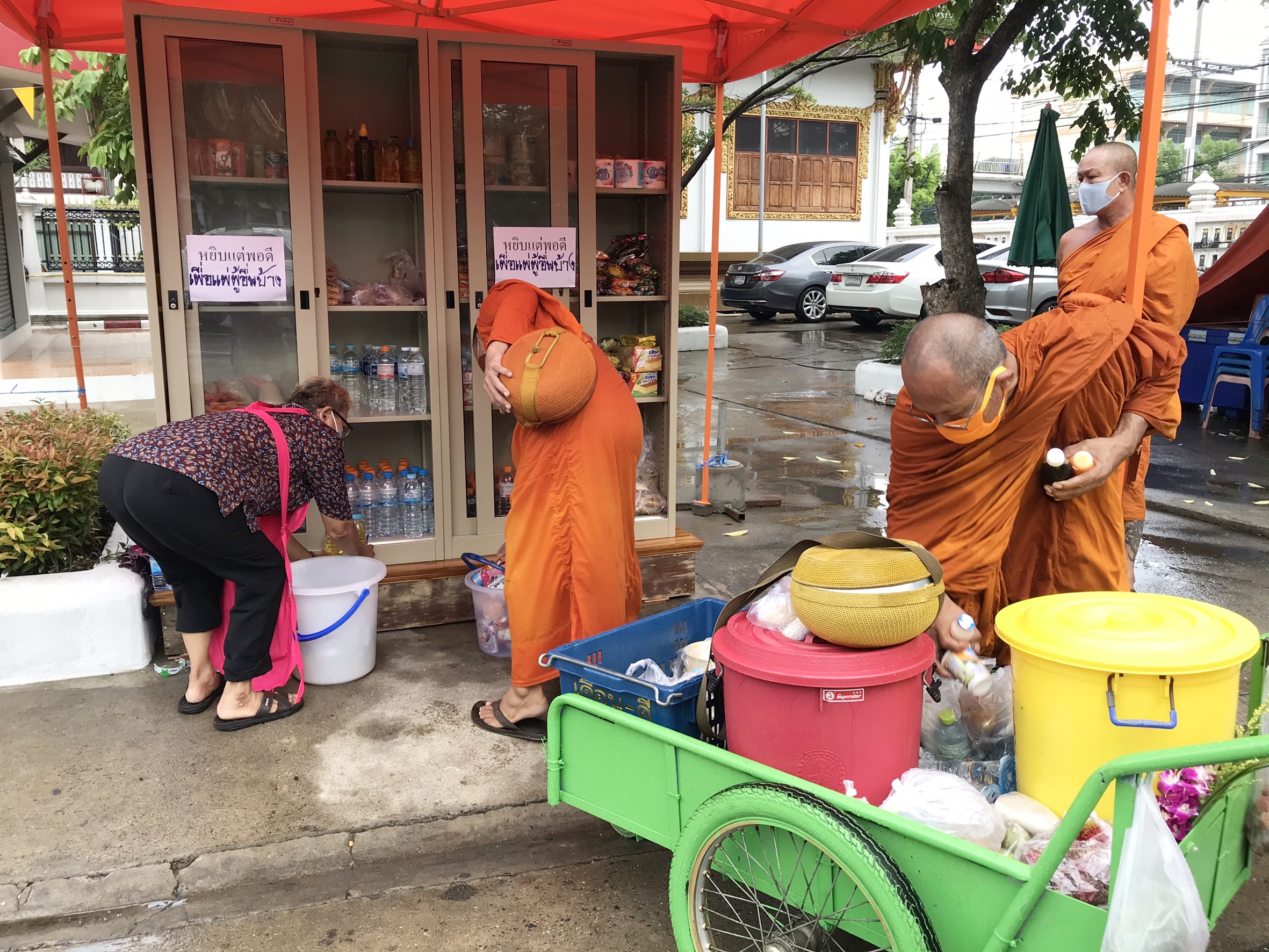 ปทุมธานี พระวัดสายไหม นำของจากบิณฑบาตร่วมใส่ตู้ปันสุขแบ่งบันให้ผู้เดือดร้อน