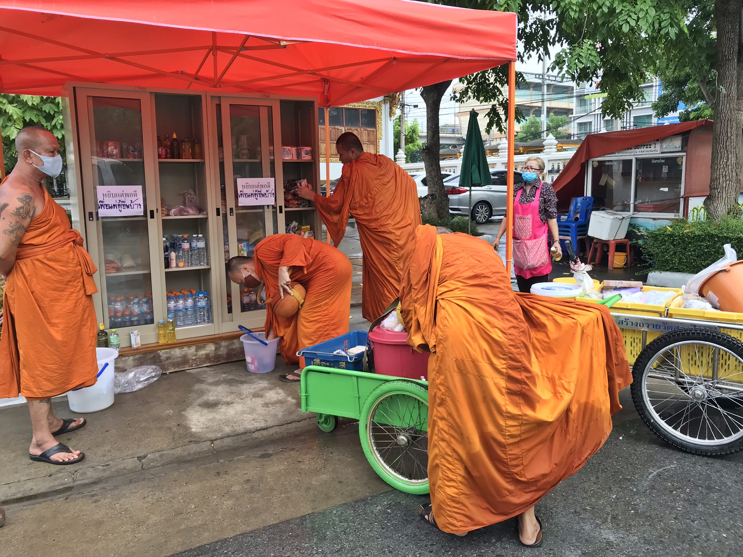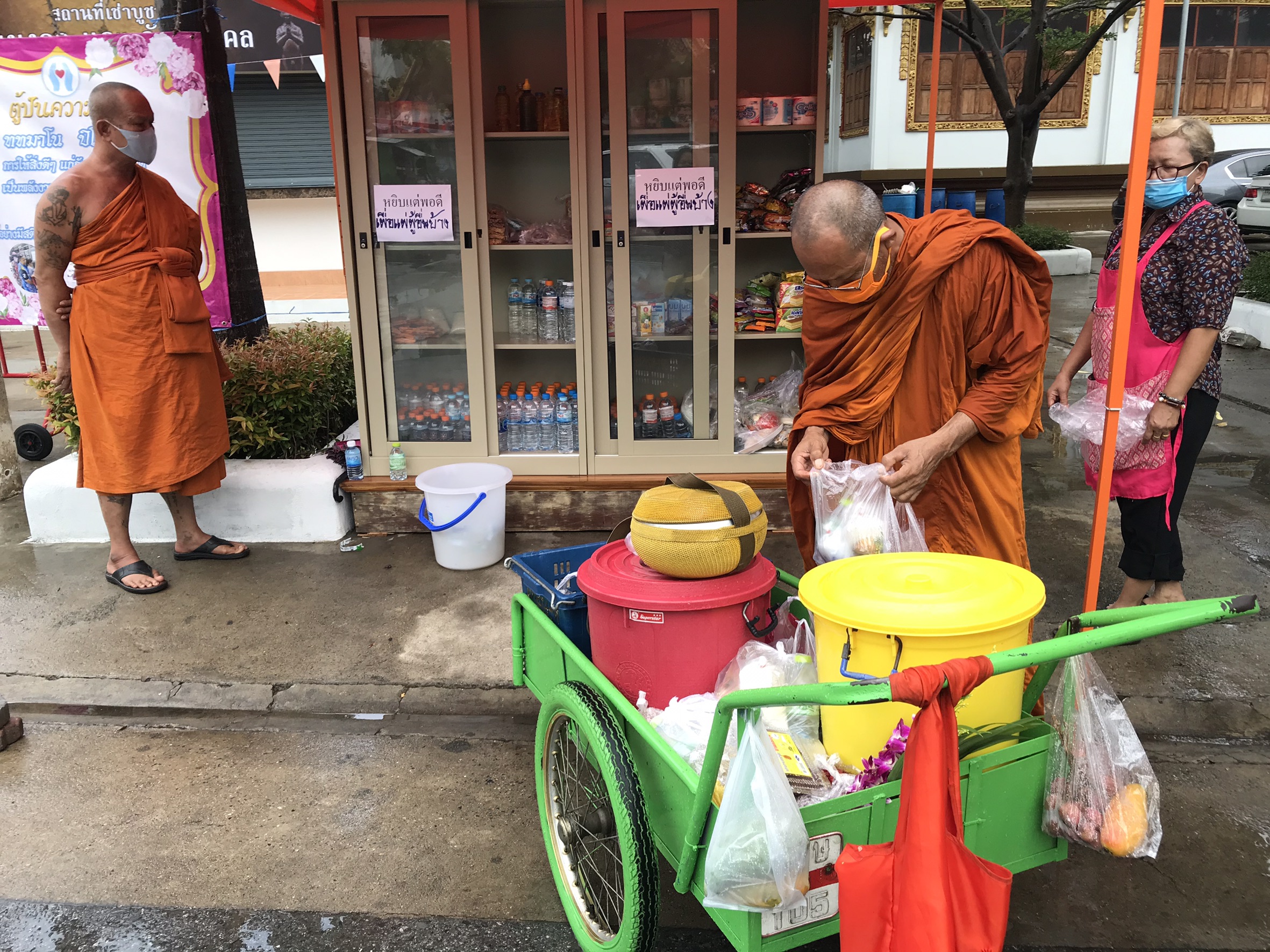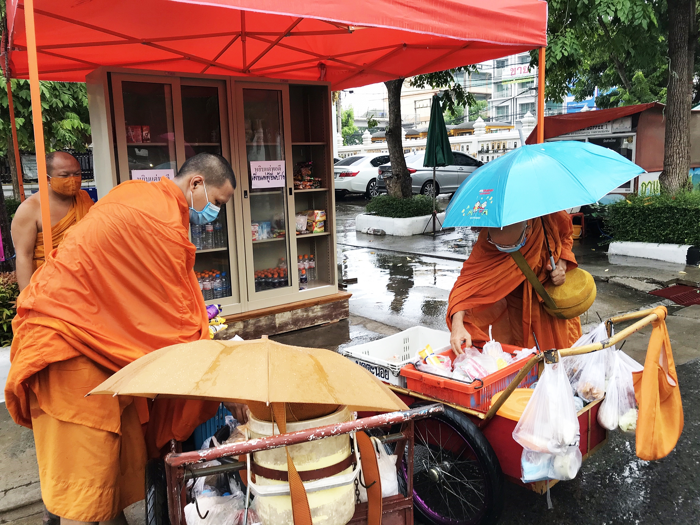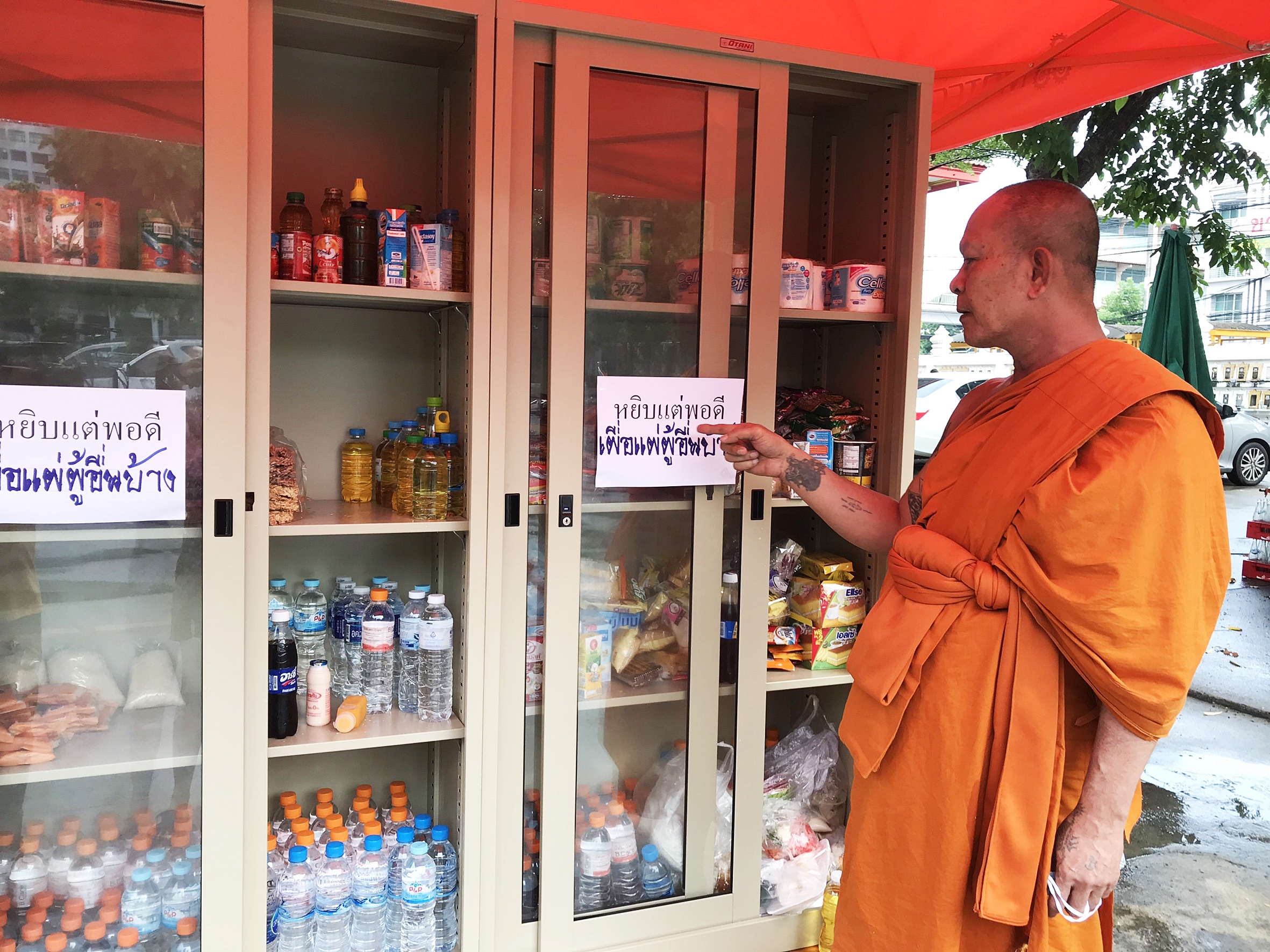 ปทุมธานี พระวัดสายไหม นำของจากบิณฑบาตร่วมใส่ตู้ปันสุขแบ่งบันให้ผู้เดือดร้อน