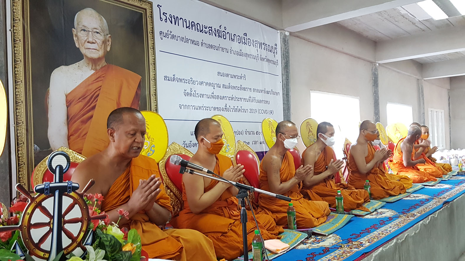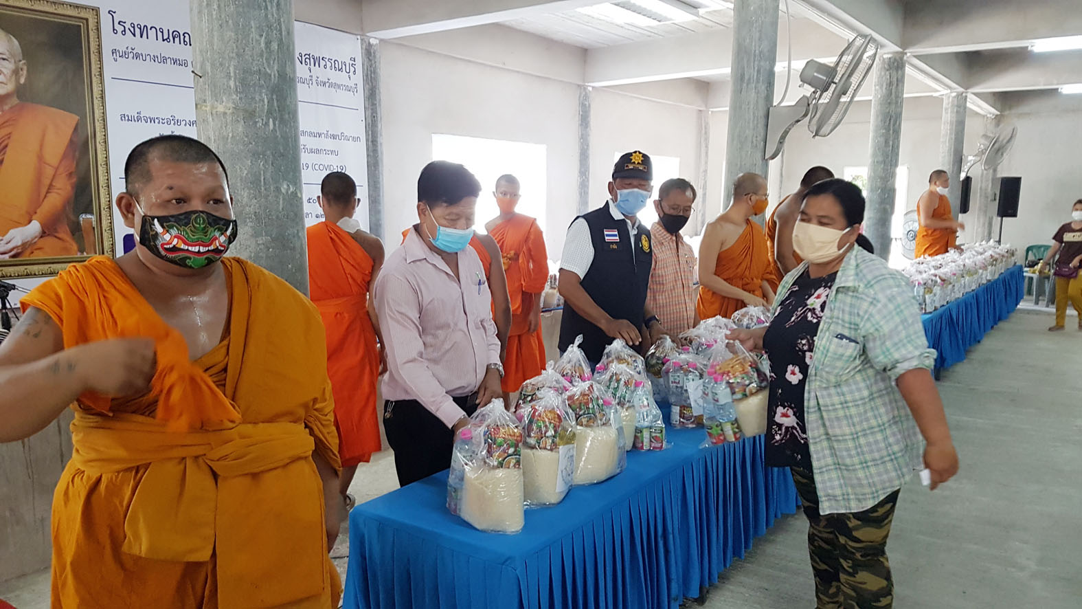 สุพรรณบุรี วัดบางปลาหมอสนองพระดำริสมเด็จพระสังฆราชมอบถุงยังชีพให้ชาวบ้านสู้ภัยไวรัสโควิด19