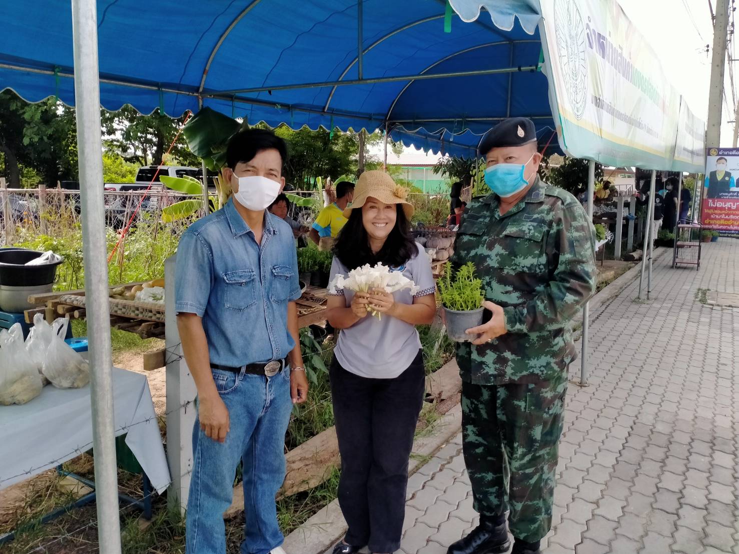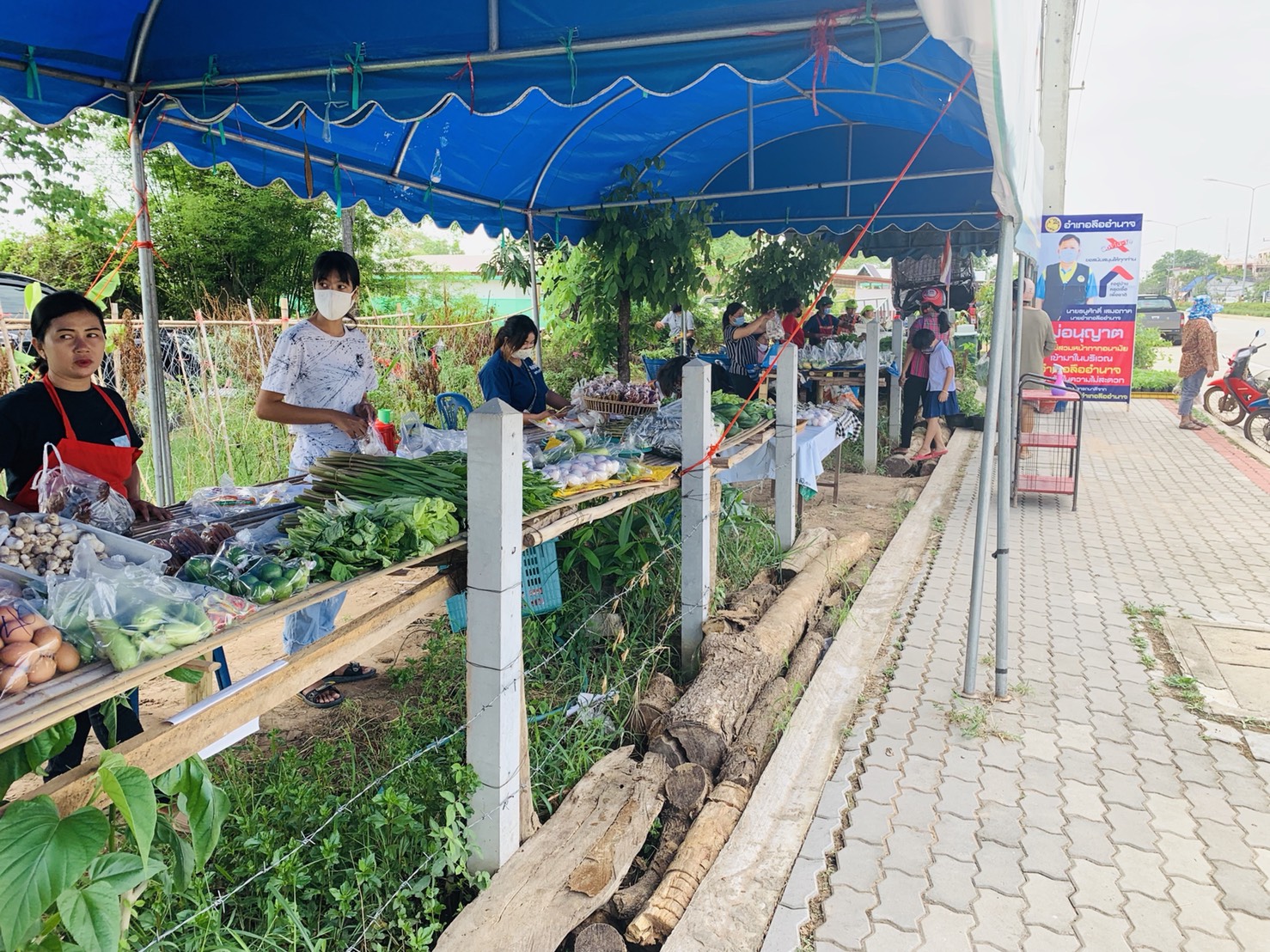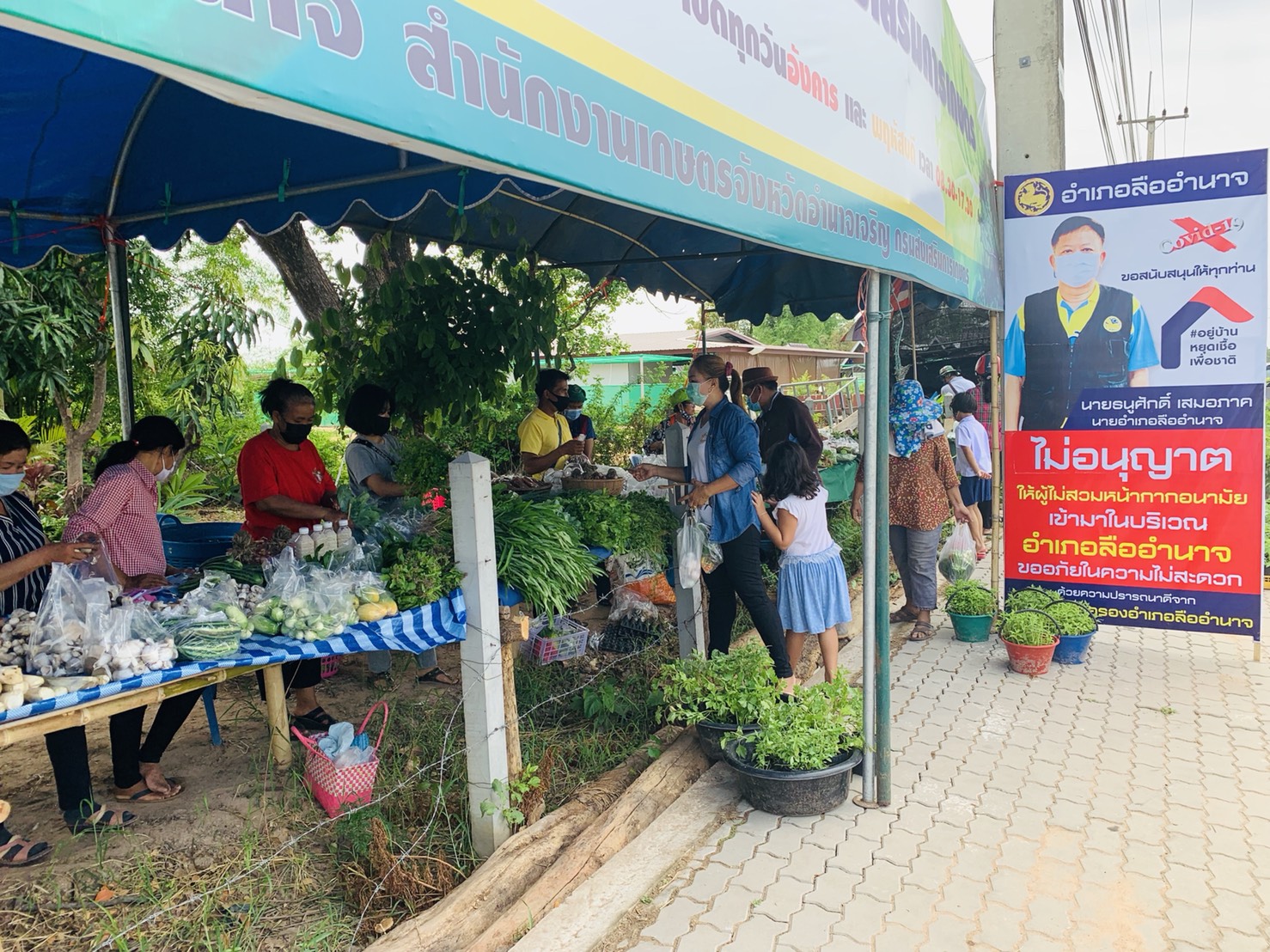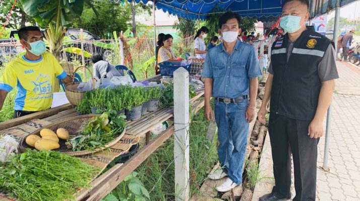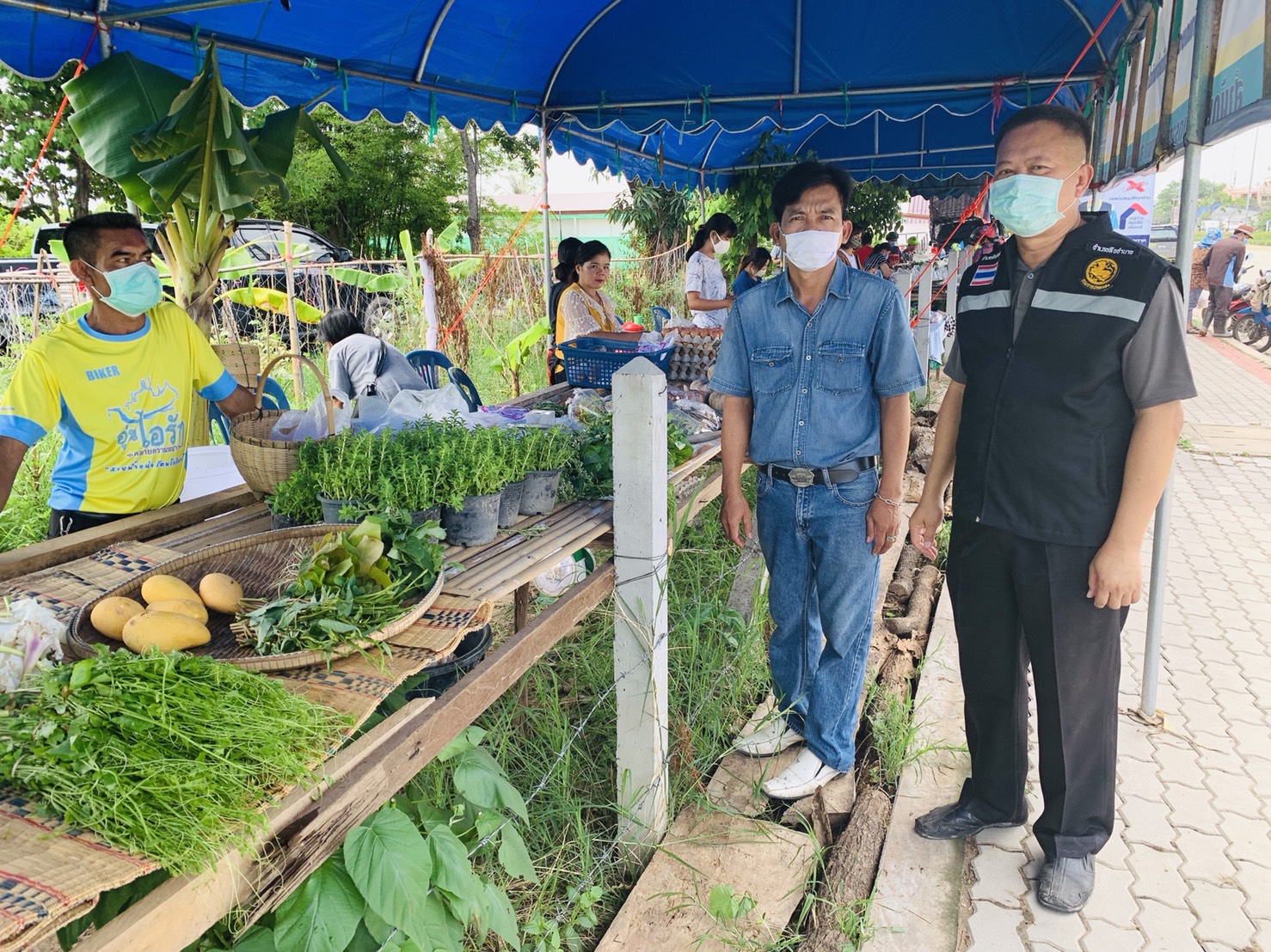 นายอำเภอลืออำนาจ ตรวจเยี่ยมม การจำหน่ายสินค้าเกษตรปลอดภัย ด้านหน้าสำนักงานเกษตรอำเภอลืออำนาจ ต้านภัย COVID-19
