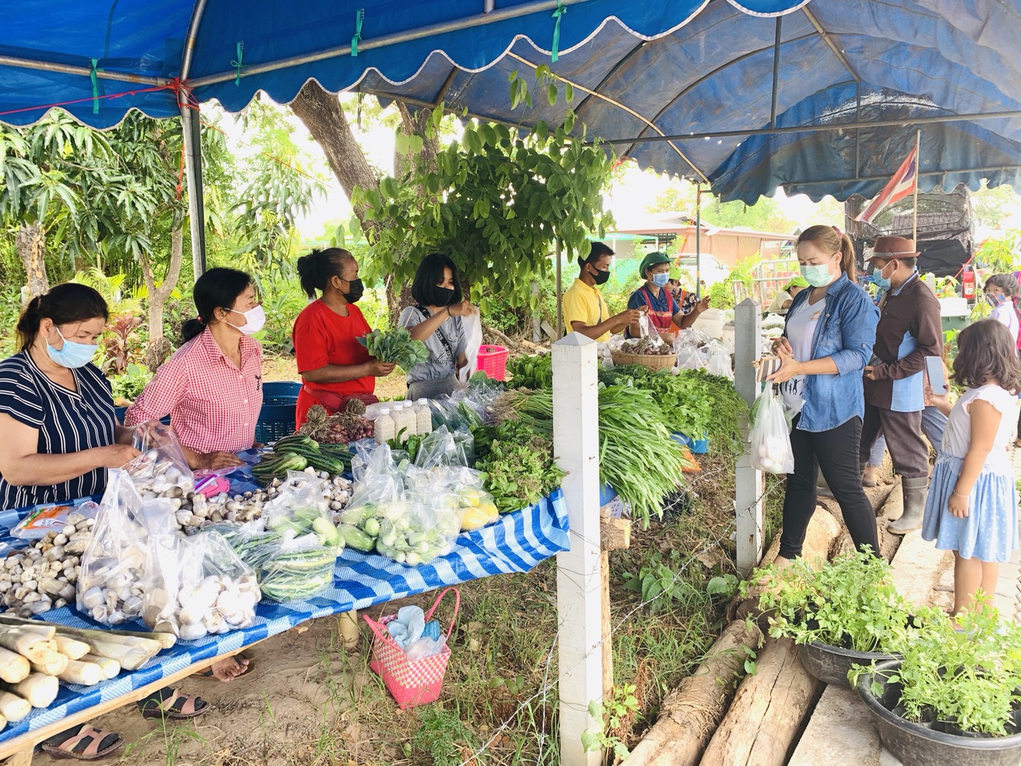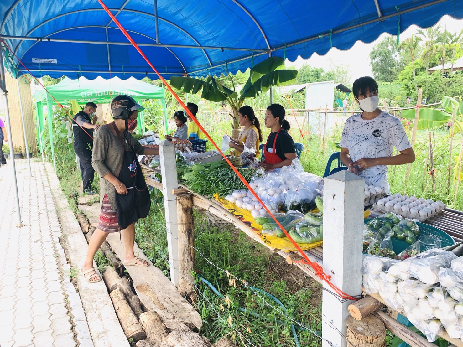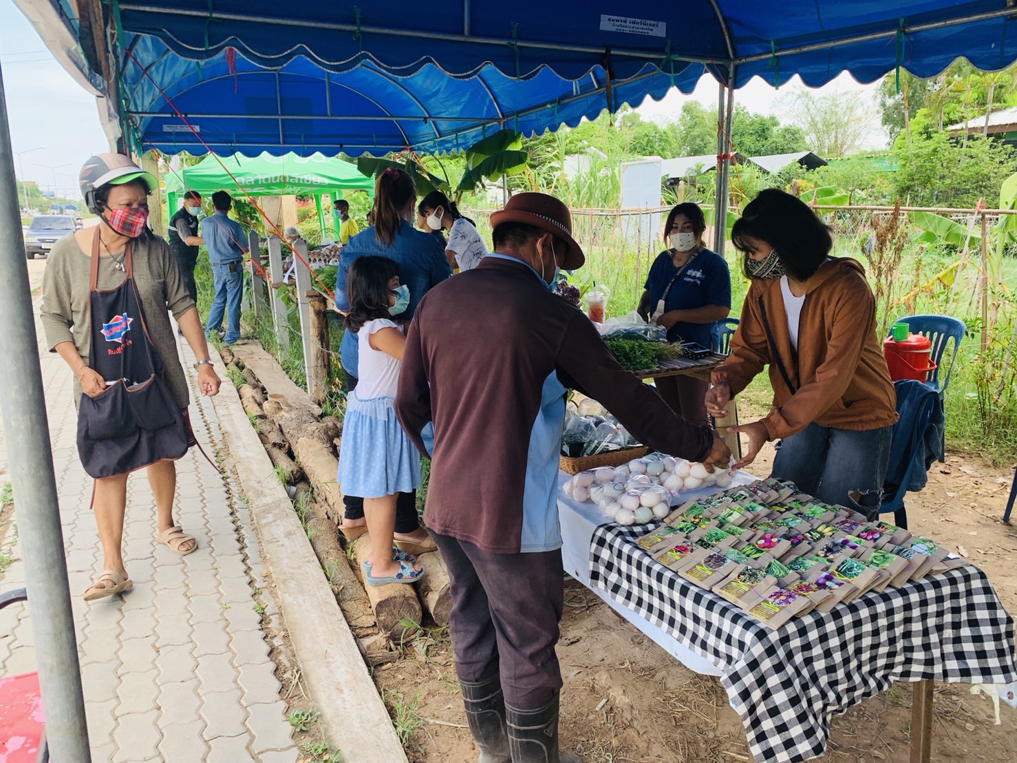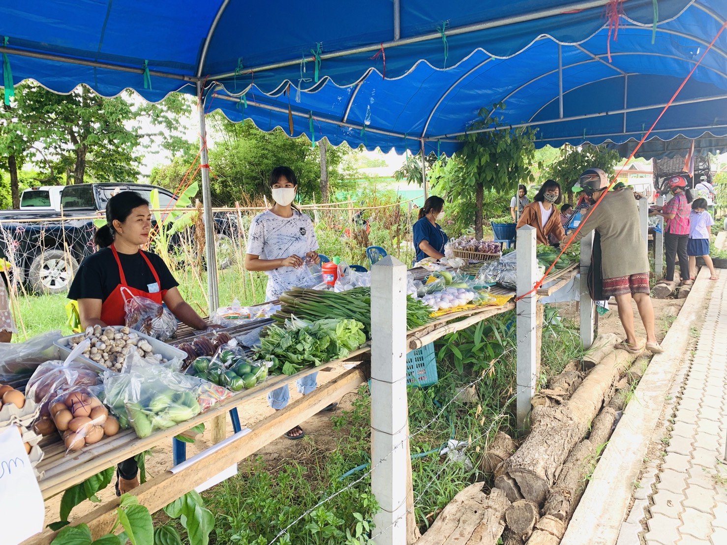 นายอำเภอลืออำนาจ ตรวจเยี่ยมม การจำหน่ายสินค้าเกษตรปลอดภัย ด้านหน้าสำนักงานเกษตรอำเภอลืออำนาจ ต้านภัย COVID-19