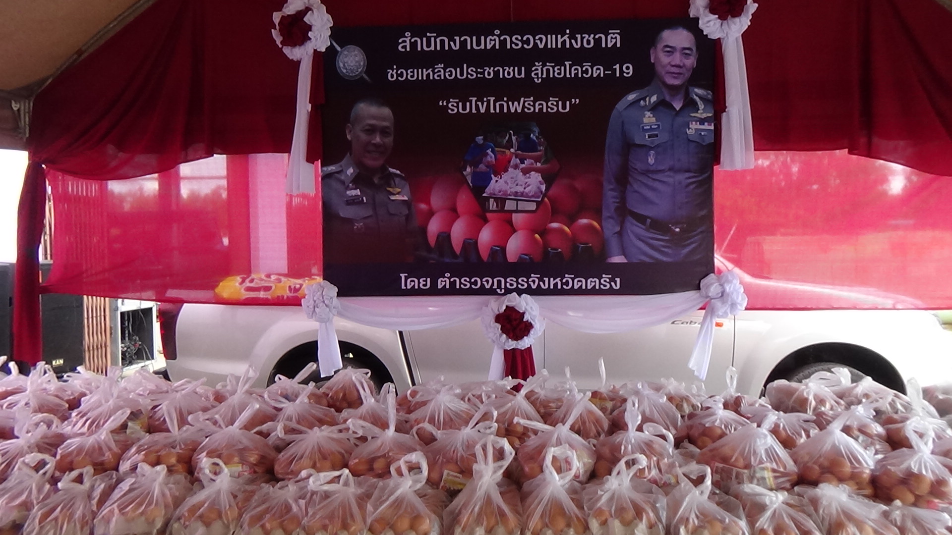 ตำรวจภูธรจังหวัดตรัง ร่วมกับองค์การบริการส่วนตำบลควนปริง มอบไข่ไก่และถุงยังชีพช่วยเหลือประชาชนที่ได้รับผลกระทบจากโควิด -19