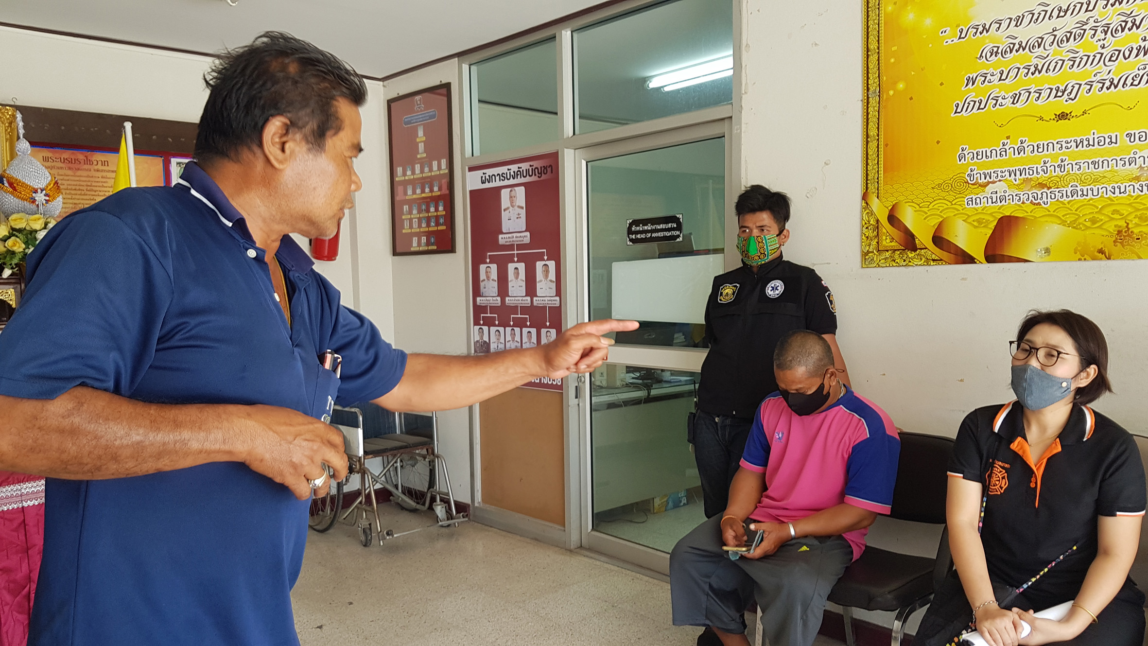สอบสวนนายเฉลย คู่กรณี ที่เข้าปากคำกับพนักงานสอบสวนโดยไม่ได้สวมใส่หน้ากากอนามัยให้การว่าอ้างว่าตนโมโหที่ถูกนายสาโรช เข้ามาต่อว่าเรื่องตนไม่ใส่หน้ากากและพูดจาข่มขู่ว่าจะแจ้งตำรวจจับติดคุกตนขอถามว่าแค่ตนไม่ใส่หน้ากากอนามัย แค่นี้ตนผิดร้ายแรงถึงขั้นติดคุกเลยหรือ คนเรามันลืมกันได้บอกกันดีๆก็ได้ทำไมต้องขู่กันด้วยส่วนที่ตนใช้แก้วกาแฟตบนั้นตนยอมรับเมื่อถามว่าทำไมไม่ใส่หน้ากากอนามัย นายเฉลย ตอบว่าลืม